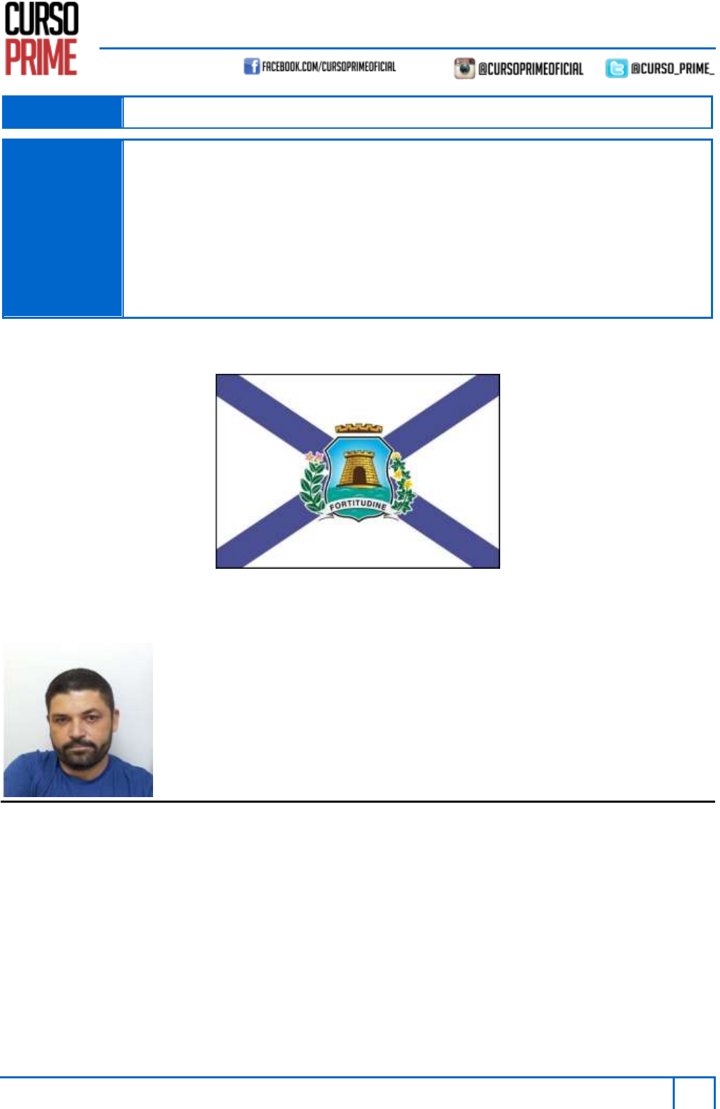 <p>GEOGRAFIA DE FORTALEZA PARA CONCURSOS</p><p>Módulo Completo | Prof. Ticyano Lavor</p><p>CURSO PRIME ALDEOTA – Rua Maria Tomásia, 22 – Aldeota – Fortaleza/CE – Fone: (85) 3208. 2222</p><p>CURSO PRIME CENTRO – Av. do Imperador, 1068 – Centro – Fortaleza/CE – Fone: (85) 3208.2220</p><p>1</p><p>OS: 0029/2/22-Gil</p><p>CONCURSO: GMF – Guarda Municipal de Fortaleza</p><p>ASSUNTO:</p><p>1. Localização e limites.</p><p>2. Hidrografia.</p><p>3. População.</p><p>4. Aspectos políticos, administrativos, econômicos e culturais.</p><p>5. Pontos turísticos.</p><p>6. Patrimônio cultural.</p><p>7. Clima e vegetação.</p><p>8. Ocupação geográfica.</p><p>9. História da cidade.</p><p>CONHECIMENTOS SOBRE FORTALEZA – DE ACORDO COM O EDITAL – 2013</p><p>Professor Ticyano Lavor</p><p>*Instagram: @prof_ticyano_lavor</p><p>GEOGRAFIA DE FORTALEZA PARA CONCURSOS</p><p>Módulo Completo | Prof. Ticyano Lavor</p><p>CURSO PRIME ALDEOTA – Rua Maria Tomásia, 22 – Aldeota – Fortaleza/CE – Fone: (85) 3208. 2222</p><p>CURSO PRIME CENTRO – Av. do Imperador, 1068 – Centro – Fortaleza/CE – Fone: (85) 3208.2220</p><p>2</p><p>OS: 0029/2/22-Gil</p><p>1. LOCALIZAÇÃO E LIMITES:</p><p> De acordo com a divisão geográfica regional, estabelecida pelo IBGE, a partir de 2017, em REGIÕES GEOGRÁFICAS</p><p>IMEDIATAS e REGIÕES INTERMEDIÁRIAS, temos:</p><p>GEOGRAFIA DE FORTALEZA PARA CONCURSOS</p><p>Módulo Completo | Prof. Ticyano Lavor</p><p>CURSO PRIME ALDEOTA – Rua Maria Tomásia, 22 – Aldeota – Fortaleza/CE – Fone: (85) 3208. 2222</p><p>CURSO PRIME CENTRO – Av. do Imperador, 1068 – Centro – Fortaleza/CE – Fone: (85) 3208.2220</p><p>3</p><p>OS: 0029/2/22-Gil</p><p>* CUIDADO: NÃO confundir com RMF (Beberibe e Palmácia NÃO fazem parte da RMF. Além do mais, estaria faltando aí Trairí).</p><p>GEOGRAFIA DE FORTALEZA PARA CONCURSOS</p><p>Módulo Completo | Prof. Ticyano Lavor</p><p>CURSO PRIME ALDEOTA – Rua Maria Tomásia, 22 – Aldeota – Fortaleza/CE – Fone: (85) 3208. 2222</p><p>CURSO PRIME CENTRO – Av. do Imperador, 1068 – Centro – Fortaleza/CE – Fone: (85) 3208.2220</p><p>4</p><p>OS: 0029/2/22-Gil</p><p> Podemos ainda localizar Fortaleza na Região Metropolitana de Fortaleza:</p><p>REGIÃO METROPOLITANA DE FORTALEZA</p><p>GEOGRAFIA DE FORTALEZA PARA CONCURSOS</p><p>Módulo Completo | Prof. Ticyano Lavor</p><p>CURSO PRIME ALDEOTA – Rua Maria Tomásia, 22 – Aldeota – Fortaleza/CE – Fone: (85) 3208. 2222</p><p>CURSO PRIME CENTRO – Av. do Imperador, 1068 – Centro – Fortaleza/CE – Fone: (85) 3208.2220</p><p>5</p><p>OS: 0029/2/22-Gil</p><p>* Algumas informações importantes acerca da RMF:</p><p>• Criada por Lei Complementar Federal em 8 de junho de 1973</p><p>• Composta por 19 municípios</p><p>• O município de Caucaia é o maior em área, com 1.227,895 km²</p><p>• Pindoretama, desmembrado de Cascavel, em 1987, o menor, com apenas 72,85 km²</p><p>• São Luís do Curu é o menos populoso</p><p>• Inicialmente, 1973, eram: Aquiraz, Caucaia, Fortaleza, Maranguape e Pacatuba.</p><p>• As mais recentes (2014): Paraipaba, Paracuru, Trairi e São Luís do Curu.</p><p> MEDIDAS TERRITORIAIS DE FORTALEZA:</p><p>* CUIDADO: Ao clicar na aba “A Cidade”, que você encontra no site oficial da Prefeitura de Fortaleza</p><p>(https://www.fortaleza.ce.gov.br/), você se depara com a seguinte informação (pelo menos até a data de encerramento da</p><p>edição desse material): “...Fortaleza possui 312.441 km2 de área total”. No entanto, após essa informação há um link: “Veja a</p><p>apresentação da Cidade”, ao clicar, nos deparamos com a seguinte informação (veja abaixo):</p><p>2. HIDROGRAFIA:</p><p> Bacia Hidrográfica é uma área onde toda chuva que cai drena, por riachos e rios secundários, para um mesmo rio</p><p>principal, localizada num ponto mais baixo de paisagem sendo separada das outras Bacias por uma linha divisória</p><p>denominada “divisor de água”. O Estado do Ceará, segundo o Plano Estadual dos Recursos Hídricos, está dividido em 12</p><p>Bacias Hidrográficas. (https://portal.cogerh.com.br/comites-de-bacias-hidrograficas/).</p><p> Fortaleza está inserida na região da (s) Bacia (s) Hidrográfica Metropolitana.</p><p> PRINCIPAIS RIOS DE FORTALEZA</p><p> Rio Ceará</p><p>Nasce na serra de Maranguape e desemboca na praia da Barra do Ceará. O rio marca a divisa com o município de Caucaia.</p><p>Ainda na divisa com Caucaia existe uma APA - Área de Proteção Ambiental do Estuário do Rio Ceará. Percorre cerca de</p><p>60km.</p><p>GEOGRAFIA DE FORTALEZA PARA CONCURSOS</p><p>Módulo Completo | Prof. Ticyano Lavor</p><p>CURSO PRIME ALDEOTA – Rua Maria Tomásia, 22 – Aldeota – Fortaleza/CE – Fone: (85) 3208. 2222</p><p>CURSO PRIME CENTRO – Av. do Imperador, 1068 – Centro – Fortaleza/CE – Fone: (85) 3208.2220</p><p>6</p><p>OS: 0029/2/22-Gil</p><p> Rio Pacoti</p><p>Fazendo o limite de Fortaleza com Aquiraz, as margens com seus manguezais formam hoje a APA do rio Pacoti. Nasce na</p><p>serra de Baturité e percorre 150 km.</p><p> Rio Pajeú</p><p>É historicamente o rio em que se assentou a cidade. O Pajeú nasce próximo às ruas Silva Paulet, José Vilar, Bárbara de</p><p>Alencar e Dona Alexandrina e percorre quase 5 km até chegar ao mar, na Praia Formosa. Sua foz fica no "Poço da Draga",</p><p>onde atualmente existe o estaleiro da Indústria Naval do Ceará.</p><p> Rio Cocó</p><p>É o mais importante rio de Fortaleza e nasce na serra da Aratanha e percorre 50 km (Maracanaú, Itaitinga e Fortaleza.</p><p>Perto de sua foz (nos limites das praias do Caça e Pesca e de Sabiaguaba) foi criada o Parque Ecológico do Cocó. O</p><p>topônimo Cocó é o plural de có que significa roça, fazendo uma alusão as roças dos povos indígenas que plantavam nas</p><p>vazantes do rio.</p><p>* É BOM TOMAR CUIDADO:</p><p> Gavião: é um açude localizado nos municípios cearenses de P