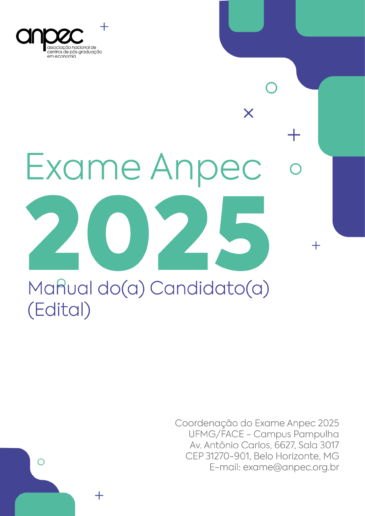 2 EXAME DE SELEÇÃO ANPEC/2025 Manual do Candidato (Edital) Sumário I - Objetivos ................................................................................................................................................................................... 3 II - Normas Gerais do Exame ......................................................................................................................................................... 3 1. CANDIDATOS ........................................................................................................................................................................ 3 2. ESCOLHA DOS CENTOS ......................................................................................................................................................... 3 3. INSCRIÇÃO ............................................................................................................................................................................ 3 4. COMPROVANTE DE INSCRIÇÃO E DOCUMENTO DE IDENTIFICAÇÃO PARA OS DIAS DE PROVA .......................................... 4 III – DATAS, DURAÇÃO E CIDADES DAS PROVAS ........................................................................................................................... 4 1. DATAS E HORÁRIOS DE REALIZAÇÃO DAS PROVAS .............................................................................................................. 5 2. CIDADES DAS PROVAS .......................................................................................................................................................... 5 3. PONDERAÇÃO DAS NOTAS ................................................................................................................................................... 6 IV - DIVULGAÇÃO DOS RESULTADOS .......................................................................................................................................... 10 1. PUBLICAÇÃO DO GABARITO ............................................................................................................................................... 10 2. PRAZO PARA RECURSOS ..................................................................................................................................................... 10 3. DIVULGAÇÃO DOS RESULTADOS DAS PROVAS OBJETIVAS ................................................................................................. 10 4. CONFIRMAÇÃO DE ACEITE PELO CANDIDATO .................................................................................................................... 10 V - PROGRAMA DAS PROVAS E BIBLIOGRAFIA ............................................................................................................................ 13 MICROECONOMIA .................................................................................................................................................................. 13 MACROECONOMIA ................................................................................................................................................................. 15 MATEMÁTICA ......................................................................................................................................................................... 16 ESTATÍSTICA ............................................................................................................................................................................ 17 ECONOMIA BRASILEIRA .......................................................................................................................................................... 18 VI – INFORMAÇÕES SOBRE AS PROVAS ...................................................................................................................................... 19 1. MARCAÇÃO DAS RESPOSTAS .............................................................................................................................................. 19 2. PUNIÇÃO À ADIVINHAÇÃO ................................................................................................................................................. 19 3. ELIMINAÇÃO DO CANDIDATO................................................................................................. Erro! Indicador não definido. 4. SOBRE A CORREÇÃO DAS PROVAS ...................................................................................................................................... 19 VII - INFORMAÇÕES ADICIONAIS ................................................................................................................................................. 22 VIII – Centros Participantes e Endereços .................................................................................................................................... 23 IX - CONSELHO DELIBERATIVO .................................................................................................................................................... 25 X - CENTROS E COORDENADORES QUE PERTENCEM AO CONSELHO DELIBERATIVO DA ANPEC ................................................ 25 XI – CENTROS E COORDENADORES QUE TAMBÉM UTILIZAM O EXAME ANPEC ......................................................................... 26 XII - DO PEDIDO DE ISENÇÃO DE TAXA DE INSCRIÇÃO NO EXAME ANPEC 2025 ......................................................................... 27 XIII – ANEXOS .............................................................................................................................................................................. 28 3 I - Objetivos A Anpec realiza anualmente o Exame de Seleção Nacional de candidatos aos programas de mestrado em Economia oferecidos por seus Centros membros ou associados. Alguns desses Centros também usam a classificação dos candidatos do Exame 