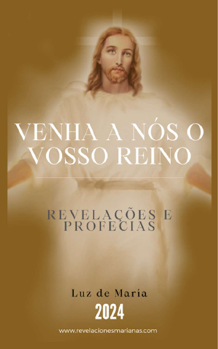 <p>2</p><p>3</p><p>IMPRIMATUR</p><p>Ano do Senhor, 16 de julho de 2024.</p><p>As mensagens que contêm a "REVELAÇÃO PRIVADA" do Céu dada a Luz</p><p>de Maria Janeiro de 2024 até Junho inclusive, foram-me entregues.</p><p>Revisei com fé e interesse estas Mensagens que fazem parte do Volume</p><p>"VENHA A NÓS O VOSSO REINO", concluindo que são uma exortação à</p><p>humanidade para que regresse ao Caminho que leva à Vida Eterna, sendo</p><p>estas Mensagens uma explicitação do Céu neste momento em que o homem</p><p>deve manter-se atento para não se desviar da Palavra Divina.</p><p>Em cada revelação dada a Luz de Maria, Nosso Senhor Jesus Cristo, a</p><p>Santíssima Virgem Maria e São Miguel, orientam o caminhar, o obrar e o</p><p>atuar do Povo de Deus nestes tempos em que a humanidade precisa da</p><p>explicitação e do ensinamento contido nas Sagradas Escrituras.</p><p>O conteúdo destas Mensagens é um tratado de Espiritualidade, de Sabedoria</p><p>Divina e de moral para aqueles que as acolhem com fé e humildade, e por</p><p>isso recomendamos a sua leitura, meditação e práxis.</p><p>DECLARO que não encontrei nenhum erro doutrinário que atente contra a</p><p>fé, a moral e os bons costumes, e por isso concedo o IMPRIMATUR a estas</p><p>publicações.</p><p>Juntamente com a minha bênção, expresso meus melhores votos para que a</p><p>"Palavra do Céu" aqui contida ressoe em toda criatura de boa vontade.</p><p>Peço à Virgem Maria, Rainha e Senhora dos últimos tempos, que interceda</p><p>para que a Vontade de Deus seja cumprida, "... assim na Terra como no Céu".</p><p>(Mt.6, 10)</p><p>Juan Abelardo Mata Guevara, SDB</p><p>Bispo Titular da Diocese de Estelí, Nicarágua</p><p>4</p><p>5</p><p>2 de novembro de 2016</p><p>Deus sempre acudiu em ajuda de Seu Povo, sempre. Deus nunca nos</p><p>deixou sós, somos nós que deixamos só ao nosso Senhor, nosso Deus.</p><p>Como em tempos antigos, somos um povo de cabeça dura. Ontem e hoje,</p><p>seguimos ignorando-o e deixando-o só, porém, ainda assim, Deus segue</p><p>falando conosco... nos guiando... segue nos alertando. Mas nós, Seu Povo,</p><p>seguimos surdos, não escutamos Sua voz. Mas cristo não se cansa e,</p><p>através de instrumentos fiéis que levam Sua voz, Seus ensinamentos e</p><p>Suas Exortações, segue falando ao Seu Povo, tudo por amor.</p><p>Esta coleção de Livros intitulada “VENHA A NÓS O VOSSO REINO” é uma</p><p>recopilação de Mensagens dadas por Nosso Senhor Jesus Cristo e pela</p><p>Santíssima Virgem Maria por meio de Seu instrumento: Luz de Maria – a</p><p>quem o próprio Cristo chama de Seu profeta dos últimos tempos. Ela foi</p><p>eleita por Deus para transmitir a Palavra Divina e é urgente escutá-la. Estas</p><p>Mensagens são dirigidas à Humanidade inteira, não tenhamos medo.</p><p>É necessário, neste tempo em que vivemos, meditar interiormente estas</p><p>Palavras e acolhe-las, fazê-las vida para nos mantermos firmes e fiéis à</p><p>Verdade revelada e plasmada nas Sagradas Escrituras, que em nenhum</p><p>momento contradizem essas Mensagens, pelo contrário, estas explicitam o</p><p>que está revelado nas Sagradas Escrituras para que não sejamos</p><p>confundidos pelo mal.</p><p>Nosso Senhor deseja que abramos nossos corações e despertemos nossa</p><p>consciência para que possamos compreendê-Lo como Ele merece.</p><p>Acolhamos esta Palavra Divina que o próprio Deus põe ao nosso alcance,</p><p>e não sejamos fariseus e sumo sacerdotes daquele tempo, que tendo Jesus</p><p>diante deles, não O reconheceram. Sejamos aqueles pelos quais Nosso</p><p>Senhor orou ao Pai:</p><p>“Graças te dou, ó Pai, Senhor do céu e da terra, que ocultaste estas</p><p>coisas aos sábios e entendidos, e as revelaste aos simples. Sim, Pai,</p><p>assim te pareceu bem.” (Mt 11,25)</p><p>Abençoo em nome do Pai, do Filho e do Espírito Santo a todos os que sejam</p><p>receptivos a esta Palavra e a compartilhem com seus irmãos.</p><p>Amém.</p><p>Frei Rodrigo Gonzáles Jiménez</p><p>6</p><p>APRESENTAÇÃO</p><p>Para todos os filhos de Deus:</p><p>Com paciência e em obediência à Vontade Divina, continuo compartilhando</p><p>com todos os filhos de Deus o que é de Propriedade Divina. Estes Chamados</p><p>do Céu, que não me pertencem, são propriedades de cada um de vocês, que</p><p>são o motivo para que esta Palavra se revele à Humanidade com a finalidade</p><p>de que seja levada à prática.</p><p>Cada filho de Deus é o Amor Divino transformado em criatura humana,</p><p>anunciando, chamando e manifestando-se para que nenhum se perca e todos</p><p>cheguemos ao conhecimento da Verdade. A Fé é a força que deve mover o</p><p>motor que cada um possui em seu interior, o motor que impulsiona à busca</p><p>do encontro com Deus.</p><p>Atônitos, vemos como esta geração ruma equivocadamente em direção ao</p><p>reino das trevas. O mal ganha terreno e, como filhos de Deus, temos que</p><p>levar a sério o Sacramento do Batismo: SOMOS SACERDOTES,</p><p>PROFETAS E REIS. Neste instante, cada um tem o dever de ser um</p><p>evangelizador a mais, e para isso se deve possuir o conhecimento cabal da</p><p>Palavra Divina que temos nas Sagradas Escrituras.</p><p>A perda da Fé não se dá num instante, mas com a progressão de obras e atos</p><p>que deterioram pouco a pouco o amor ao nosso Deus. A Fé tem que ser</p><p>alimentada e esse alimento chega ao homem pelo conhecimento e pela</p><p>consciência. Se adquire conhecimento para expandir a consciência e</p><p>fortalecer a Fé.</p><p>A Humanidade tem que ver o corpo humano mais além de uma carne que</p><p>encapsula órgãos, o corpo humano é TEMPLO DO ESPÍRITO SANTO;</p><p>portanto, Cristo nos reitera que possuímos mais que sentidos físicos,</p><p>possuímos sentidos espirituais, e o homem está dotado de todo o necessário</p><p>para manter uma relação mais próxima com Deus.</p><p>O homem, filho de Deus, em sua maioria desconhe