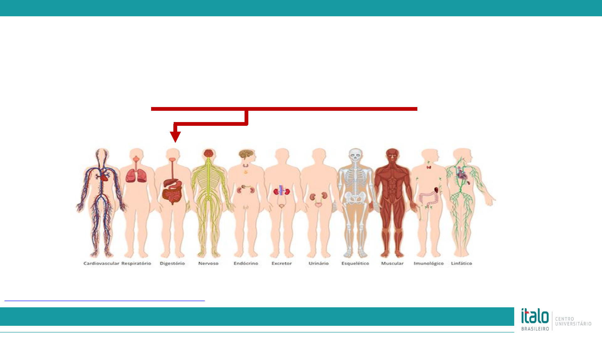 <p>Profa. Dra. Laura Cuvello</p><p>Sistema digestório</p><p>https://escolaeducacao.com.br/mapa-mental-sistemas-do-corpo-humano/</p><p>https://escolaeducacao.com.br/mapa-mental-sistemas-do-corpo-humano/</p><p>Profa. Dra. Laura Cuvello</p><p>O que é digestão?</p><p>Digestão é a transformação dos</p><p>alimentos em substâncias menores</p><p>e mais simples para que possam</p><p>ser absorvidas pelo nosso corpo.</p><p>Profa. Dra. Laura Cuvello</p><p>Nosso corpo funciona como um carro; para que ele se mova, é preciso ter um combustível</p><p>e um comburente.</p><p>Por que temos que comer?</p><p>Ou seja, sem o nosso combustível (alimento) e o comburente (oxigênio), nosso</p><p>corpo não tem ENERGIA para funcionar.</p><p>Profa. Dra. Laura Cuvello</p><p>Profa. Dra. Laura Cuvello</p><p>Profa. Dra. Laura Cuvello</p><p>Profa. Dra. Laura Cuvello</p><p>Enzimas: São substâncias orgânicas proteicas que catalisam reações químicas -</p><p>Proteínas</p><p>▪ Mecanismo de ação enzimática</p><p>o As enzimas são altamente específicas e, geralmente, possuem um único</p><p>tipo de substrato.</p><p>o A grande especificidade é explicada pelo fato das enzimas se</p><p>encaixarem perfeitamente aos substratos, como uma chave em sua</p><p>fechadura.</p><p>Profa. Dra. Laura Cuvello</p><p>Enzimas</p><p>▪ Fatores que interferem nas reações enzimáticas</p><p>1) Temperatura</p><p>o A velocidade das reações químicas tende a aumentar com o aumento</p><p>da temperatura até atingir uma velocidade máxima (X) em uma</p><p>temperatura ótima (Y).</p><p>x</p><p>y</p><p>Velocidade da</p><p>reação</p><p>Temperatura em (oC)</p><p>Acima da temperatura (Y) ocorre a</p><p>desnaturação da enzima e a diminuição</p><p>da velocidade da reação química.</p><p>Profa. Dra. Laura Cuvello</p><p>Enzimas</p><p>▪ Fatores que interferem nas reações enzimáticas</p><p>2) pH (Potencial Hidrogeniônico)</p><p>o As enzimas exigem um pH ótimo (Y) no qual a velocidade da reação seja</p><p>máxima (X). Acima ou abaixo deste ponto elas diminuem sua atividade até</p><p>que a reação química não mais ocorra.</p><p>x</p><p>y</p><p>Velocidade da</p><p>reação</p><p>pH</p><p>Acima ou abaixo do pH (Y) ocorre a as</p><p>enzimas não se mantém ativas e por isso</p><p>ocorre diminuição da velocidade da reação</p><p>química.</p><p>Exemplos</p><p>Pepsina: pH ideal 2</p><p>Ptialina: pH ideal 7</p><p>Tripsina: pH ideal 8</p><p>Profa. Dra. Laura Cuvello</p><p>Sistema digestório humano</p><p>• Boca (pH 6,7 até 7,0): onde os alimentos sofrem ação dos</p><p>dentes (mastigação), da língua (auxilia na deglutição e na</p><p>mastigação) e da saliva (contém amilase salivar ou ptialina –</p><p>acelera a digestão do amido). Ocorre a digestão parcial e a</p><p>lubrificação do alimento, formando o bolo alimentar.</p><p>Amido – amilase salivar Maltose</p><p>(dissacarídeo)</p><p>Profa. Dra. Laura Cuvello</p><p>Profa. Dra. Laura Cuvello</p><p>• Faringe: pertence tanto ao sistema digestório quanto ao</p><p>respiratório. Ao passar a comida a epiglote fecha o orifício de</p><p>comunicação com a laringe. Da faringe o alimento atinge o</p><p>esôfago.</p><p>• Esôfago: Canal musculoso (atravessa o diafragma) que liga a</p><p>faringe ao estômago. É nele que se iniciam os movimentos</p><p>peristálticos.</p><p>Profa. Dra. Laura Cuvello</p><p>Profa. Dra. Laura Cuvello</p><p>• Estômago (pH 0,9 a 2,0): No estômago é liberado o suco</p><p>gástrico (muco-proteção), que além de HCl e H2O apresenta</p><p>pepsina. Quando moléculas de proteína entram em contato</p><p>com as paredes do estômago um hormônio, denominado</p><p>gastrina, entra em contato com a corrente sangüínea e</p><p>estimula a produção de suco gástrico.</p><p>• Pepsinogênio Pepsina.</p><p>• Proteínas Polipeptídeos menores</p><p>• Renina: metabolização das proteínas do leite.</p><p>• Alimento transformado em quimo.</p><p>HCl</p><p>Pepsina</p><p>Profa. Dra. Laura Cuvello</p><p>• Gastrite: A causa mais provável da gastrite é a fraqueza da barreira</p><p>mucosa que protege a parede estomacal, permitindo que os sucos</p><p>digestivos produzidos pelo estômago causem danos ao tecido que</p><p>reveste o órgão.</p><p>• Essa fraqueza pode ser causada pela bactéria Helicobacter pylori,</p><p>que vive justamente no revestimento do estômago e que, se não for</p><p>tratada, pode levar ao surgimento de úlceras e até mesmo ao câncer</p><p>de estômago.</p><p>Profa. Dra. Laura Cuvello</p><p>• Intestino delgado: continua o processo de digestão e absorve o</p><p>alimento digerido. Produz alguns hormônios importantes:</p><p>• Secretina: liberação de suco pancreático em pH abaixo de 4,5;</p><p>• Colecistoquinina: estimula a contração da vesícula biliar, na</p><p>presença de gordura;</p><p>• Peptídeo inibidor da gastrina: inibe a secreção gástrica;</p><p>• Motilina: estimula a motilidade gastrointestinal.</p><p>Profa. Dra. Laura Cuvello</p><p>• Duodeno: principal local da digestão onde atuam os sucos</p><p>provenientes do fígado (bile), pâncreas (suco pancreático) e do</p><p>próprio intestino (suco entérico).</p><p>• Fígado: produz a bile (não possui enzimas), que tem por função</p><p>emulsificar os lipídeos para facilitar a ação da lipase e</p><p>neutralizar a acidez do quimo. Além disso, o fígado armazena</p><p>vitaminas e ferro,retira a glicose do sangue armazenando-a</p><p>como glicogênio, degrada o álcool e destrói hemácias velhas ou</p><p>anormais.</p><p>Profa. Dra. Laura Cuvello</p><p>Profa. Dra. Laura Cuvello</p><p>• Pâncreas: libera suco pancreático para o duodeno.</p><p>Neutraliza a acidez do quimo, produz por volta de 20</p><p>enzimas (pH 8,8 a 9,3), as principais são:</p><p>• Tripsina: transforma proteínas em polipeptídios</p><p>menores;</p><p>• Amilase pancreática: transforma o amido em maltose</p><p>(dissacarídeo);</p><p>• Lipase pancreátic