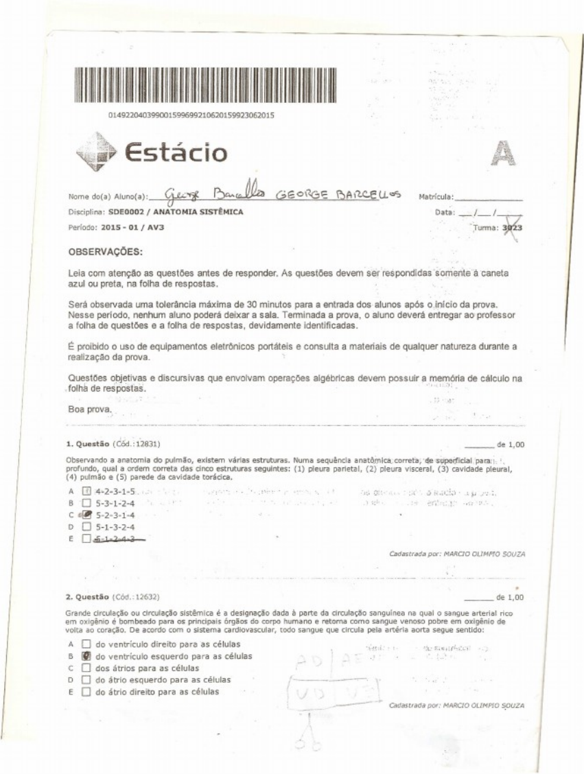 <p>1a Questão (Ref.: 201503291355) Pontos: 0,0 / 0,1</p><p>Um paciente, vítima de acidente automobilístico chega a uma clínica de traumatologia para uma avaliação. Exames de imagens foram realizados e evidenciaram algumas lesões:</p><p>1) Fratura em um osso sesamóide.</p><p>2) Perda de substância óssea compacta.</p><p>3) Fratura no osso lateral do antebraço. Um profissional de saúde foi solicitado para acompanhar os exames de imagem.</p><p>Os seguintes achados foram encontrados:</p><p>I. Conhecendo as classificações morfológicas, esta fratura pode ter ocorrido no osso frontal.</p><p>II. A substância óssea compacta localiza-se nas regiões externas dos ossos longos, sendo menos resistente</p><p>III. O osso fraturado foi o rádio.</p><p>Está correto o que se afirma somente em:</p><p>( )II e III estão corretas.</p><p>( )I está correta.</p><p>( )II está correta.</p><p>(x)III está correta.</p><p>( )I e III estão corretas.</p><p>image5.png</p><p>image1.png</p><p>image2.png</p><p>image3.png</p><p>image4.png</p>