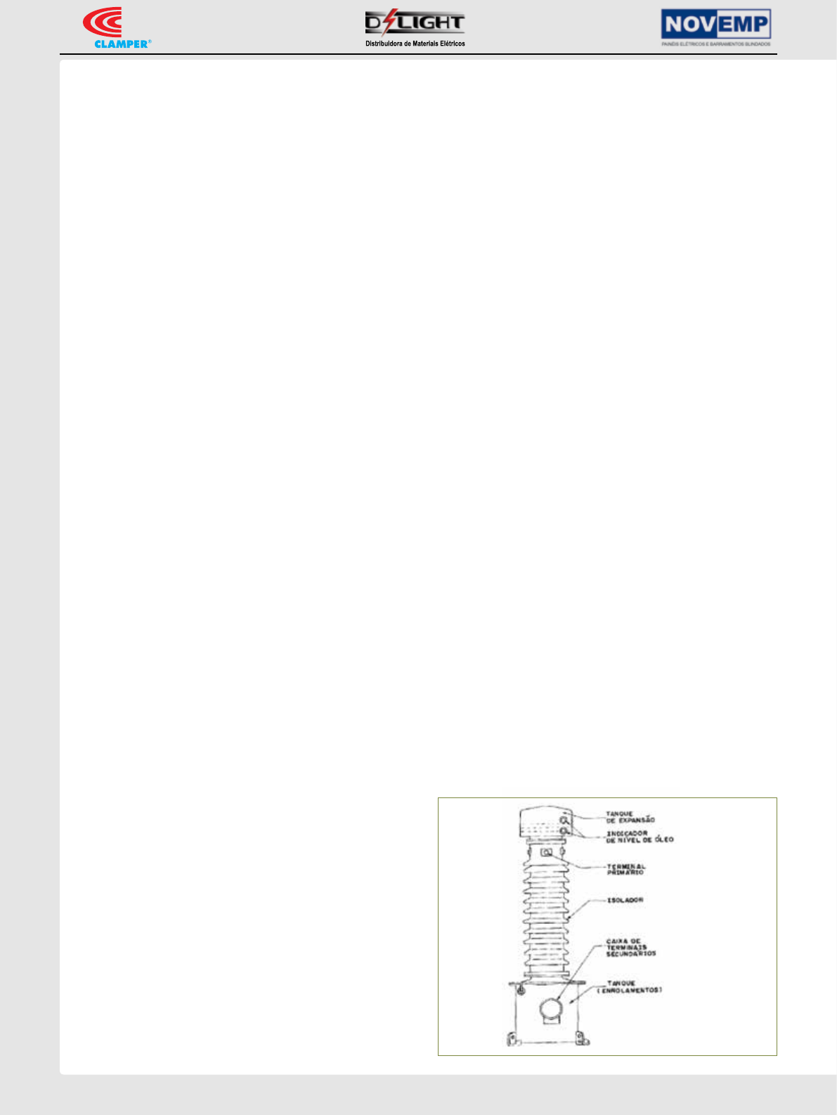 <p>26</p><p>Apoio</p><p>Fa</p><p>s</p><p>c</p><p>íc</p><p>u</p><p>lo</p><p>E</p><p>qu</p><p>ip</p><p>am</p><p>en</p><p>to</p><p>s</p><p>pa</p><p>ra</p><p>e</p><p>ns</p><p>ai</p><p>os</p><p>e</p><p>m</p><p>c</p><p>am</p><p>po</p><p>Capítulo IV</p><p>Testes em campo de transformadores de</p><p>corrente e de potencial de alta tensão</p><p>Por Fabio Henrique Dér Carrião, Claudio Mardegan e Claudio Rancoleta*</p><p>1- Introdução</p><p>Os transformadores de potencial de alta tensão, basicamente,</p><p>podem ser dos tipos: convencional ou indutivo e a divisor capacitivo,</p><p>que podem ser aplicados de acordo com aspectos econômicos e nível</p><p>de tensão do sistema a serem instalados. Ambos operam em paralelo</p><p>com a linha com o objetivo de fornecer medição da tensão do circuito</p><p>com valores reduzidos para serem enviados para relés de proteção</p><p>e medidores. Em termos de ensaios e serviços de campo poucas</p><p>diferenças se fazem necessárias nos procedimentos em cada tipo.</p><p>Os transformadores de corrente de alta tensão de forma geral</p><p>são hermeticamente fechados, a pequeno volume de óleo, estes são</p><p>projetados para operarem em série com a linha a fim de obter uma</p><p>imagem de corrente a um nível de tensão muito menor do que a real</p><p>do circuito.</p><p>2 - Manutenção preventiva: inspeções e ensaios</p><p>As inspeções indicadas a seguir podem ser aplicadas tanto a</p><p>transformadores de potencial como de corrente.</p><p>2.1 - Inspeções periódicas</p><p>Periodicamente, devem ser realizadas algumas inspeções nos</p><p>TPs/TCs:</p><p>• deve ser verificado periodicamente a existência de vazamento</p><p>de óleo. Esses equipamentos possuem normalmente indicadores</p><p>de nível de óleo instalados no tanque de expansão (esquema ao</p><p>lado). Se o nível de óleo ficar abaixo do normal, deve-se retirar</p><p>o equipamento de serviço e se realizar investigação das possíveis</p><p>causas. De forma geral, é possível completar o nível de óleo</p><p>abrindo-se a tampa localizada no tanque com óleo de boa qualidade</p><p>até o nível ideal, sempre tomando-se cuidado em vedar a tampa</p><p>para impedir a entrada de umidade;</p><p>• inspeção visual do estado das porcelanas e de possíveis pontos de</p><p>corrosão no tanque;</p><p>• inspeção visual das conexões nos enrolamentos secundários dos</p><p>equipamentos e verificação das caixas de terminais;</p><p>• inspeção termográfica das conexões.</p><p>A periodicidade dessas inspeções pode variar de acordo com</p><p>diversos fatores, tais como: criticidade do equipamento, custo do</p><p>equipamento, recomendações do fabricante etc. Deve sempre</p><p>se observar as recomendações dadas por cada fabricante dos</p><p>equipamentos quanto a diferentes procedimentos a serem aplicados</p><p>aos tipos de equipamentos disponíveis no mercado.</p><p>2.2- Ensaios</p><p>Além das inspeções, também devem entrar no programa de</p><p>manutenção dos TCs/TPs alguns ensaios, sendo que os seguintes</p><p>27</p><p>Apoio</p><p>testes são os mais recomendados:</p><p>• medição da relação de transformação;</p><p>• medição da resistência ôhmica dos enrolamentos secundários;</p><p>• medição da resistência ôhmica de isolamento dos enrolamentos;</p><p>• medição do fator de potência do isolamento.</p><p>A seguir são descritos os procedimentos adotados em cada</p><p>ensaio.</p><p>a) Medição da relação de transformação</p><p>A medição da relação de transformação pode ser realizada por</p><p>vários métodos. Nos Transformadores de Potencial, os mais usuais</p><p>são:</p><p>• método comparativo: trata-se de um método prático para se efetuar</p><p>a medição da relação em TPs, onde através da injeção de tensão em</p><p>seu primário, lê-se a tensão em seu enrolamento secundário com</p><p>um voltímetro de precisão;</p><p>• método do potenciômetro: nesse método, como nos ensaios</p><p>aplicados aos transformadores de potência, utiliza-se o TTR para</p><p>realizar a medição (Transformer Turn Ratio Test), equipamento</p><p>específico e fornecido por diversos fabricantes para execução desse</p><p>tipo de medição.</p><p>Para os TPs, os métodos e conexões são bem parecidos com os</p><p>aplicados aos transformadores de potência de forma geral.</p><p>Nos transformadores de corrente podemos destacar como</p><p>método mais adequado para o teste completo da relação de</p><p>transformação o de injeção de corrente primária. O ensaio é</p><p>realizado utilizando-se uma fonte de corrente com faixa adequada</p><p>para se atingir a corrente nominal do TC sob teste. A mesma deve</p><p>ser conectada ao primário do TC e, após aplicada a corrente, deve-se</p><p>proceder com a medição das correntes circulantes nos enrolamentos</p><p>primário e secundário com amperímetros com precisão adequada</p><p>aos níveis de corrente envolvidos. Deve-se proceder com medições</p><p>com níveis de 20%, 40%, 60%, 80% e 100% da corrente nominal</p><p>comparando-se os valores medidos com os esperados de acordo</p><p>com os dados de placa. O esquema básico de conexão desse teste</p><p>esta mostrado na figura a seguir.</p><p>28</p><p>Apoio</p><p>Fa</p><p>s</p><p>c</p><p>íc</p><p>u</p><p>lo</p><p>E</p><p>qu</p><p>ip</p><p>am</p><p>en</p><p>to</p><p>s</p><p>pa</p><p>ra</p><p>e</p><p>ns</p><p>ai</p><p>os</p><p>e</p><p>m</p><p>c</p><p>am</p><p>po</p><p>Em alguns casos, tais como em transformadores de corrente</p><p>instalados em buchas de transformadores de potência, não é</p><p>possível realizar o ensaio com injeção de corrente primária e,</p><p>nesse caso, uma alternativa é realizar o teste injetando-se tensão</p><p>nos enrolamentos secundários e efetuando-se a medição da tensão</p><p>resultante nos enrolamentos primários com o uso de um voltímetro</p><p>de precisão adequada.</p><p>b) Medição da resistê