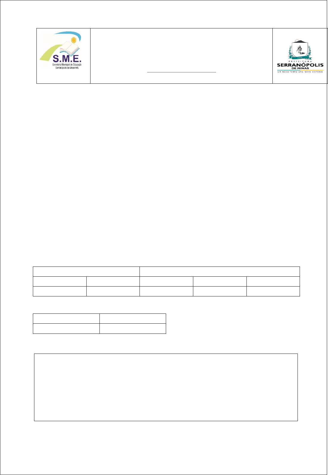 <p>SECRETARIA MUNICIPAL DE EDUCAÇÃO DE SERRANÓPOLIS DE MINAS</p><p>Rua Francisco Rodrigues da Silva nº 159 Centro / CEP: 39518-000</p><p>Tel: (38) 3831-7113</p><p>smeserranopolis@yahoo.com.br</p><p>Serranópolis de Minas- MG</p><p>DIÁRIO DE CLASSE</p><p>E. M. ALVIMAR ALVES CARDOSO</p><p>ANO LETIVO: 2023</p><p>ANOS INICIAIS – ENSINO FUNDAMENTAL</p><p>CICLO DA ALFABETIZAÇÃO</p><p>CICLO COMPLEMENTAR</p><p>1º ANO</p><p>2º ANO</p><p>3º ANO</p><p>4º ANO</p><p>5º ANO</p><p>X</p><p>TURMA</p><p>4º ANO</p><p>TURNO</p><p>MATUTINO</p><p>COMPONENTES CURRICULARES: LÍNGUA PORTUGUESA, ARTE, MATEMÁTICA, CIÊNCIAS, GEOGRAFIA, HISTÓRIA, ENSINO RELIGIOSO.</p><p>PROFESSOR (A): ILMA DOS REIS</p><p>CALENDÁRIO ESCOLAR – ANO: 2023</p><p>OBJETIVOS</p><p>LÍNGUA PORTUGUESA</p><p>-Ler e compreender, com autonomia e fluência, textos de diversos gêneros com nível de textualidade adequado.</p><p>- Identificar a finalidade de textos de diferentes gêneros.</p><p>-Identificar a ideia central do texto, demonstrando compreensão global.</p><p>-Localizar informações implícitas e explícitas em um texto.</p><p>-Interpretar texto com auxílio de material gráfico diverso propagandas, quadrinhos, foto etc.</p><p>-Inferir o sentido de palavras ou expressões desconhecidas em textos, com base no contexto da frase ou do texto.</p><p>-Identificar as marcas linguísticas que evidenciam o locutor e o interlocutor de um texto.</p><p>-Distinguir um fato da opinião relativa a esse fato.</p><p>-Estabelecer relações entre partes de um texto, identificando repetições ou substituições que contribuem para a continuidade de um texto.</p><p>-Identificar, em narrativas, cenário, personagem central, conflito gerador, resolução e o ponto de vista com base em qual histórias são narradas, diferenciando narrativas em primeira e terceira pessoas.</p><p>-Planejar o texto que será produzido, considerando a situação comunicativa, os interlocutores; a finalidade; a circulação; o suporte; a linguagem, organização e forma do texto e seu tema.</p><p>-Organizar o texto em unidades de sentido, dividindo-o em parágrafos segundo as normas gráficas e de acordo com as características do gênero textual.</p><p>-Utilizar, ao produzir um texto, conhecimentos linguísticos e gramaticais, tais como ortografia, regras básicas de concordância nominal e verbal, pontuação (ponto final, ponto de exclamação, ponto de interrogação, vírgulas em enumerações) e pontuação do discurso direto, quando for o caso.</p><p>- Usar corretamente dicionário.</p><p>-Produzir texto utilizando tecnologia digital.</p><p>-Identificar e reproduzir, em textos injuntivos instrucionais, a formatação própria desses textos (verbos imperativos, indicação de passos a ser seguidos) e formato específico dos textos orais ou escritos desses gêneros (lista/ apresentação de materiais e instruções/passos de jogo).</p><p>-Identificar e reproduzir, em seu formato, tabelas, diagramas e gráficos em relatórios de observação e pesquisa, como forma de apresentação de dados e informações.</p><p>- Opinar e defender ponto de vista sobre tema polêmico relacionado a situações vivenciadas na escola e/ou na comunidade, utilizando registro formal e estrutura adequada à argumentação, considerando a situação comunicativa e o tema/assunto do texto.</p><p>-Expressar-se em situações de intercâmbio oral com clareza.</p><p>-Escutar, com atenção, apresentações de trabalhos realizadas por colegas, formulando perguntas pertinentes ao tema e solicitando esclarecimentos sempre que necessário.</p><p>-Expor trabalhos ou pesquisas escolares, em sala de aula, com apoio de recursos multissemióticos (imagens, diagrama, tabelas etc.), orientando-se por roteiro escrito, planejando o tempo de fala e adequando a linguagem à situação comunicativa.</p><p>ARTE</p><p>-Conhecer a história da Arte e os diversos artistas locais, através de pesquisas e apreciação das linguagens artísticas, resgatando a tradições culturais de cada município.</p><p>-Identificar formas distintas das artes visuais tradicionais, contemporâneas e regionais, cultivando a percepção, o imaginário, a capacidade de simbolizar e o repertório imagético.</p><p>-Explorar e reconhecer elementos constitutivos das artes visuais (ponto, linha, forma, cor, espaço, movimento etc.).</p><p>-Experimentar diferentes formas de expressão artística (desenho, pintura, colagem, quadrinhos, dobradura, escultura, modelagem, instalação, vídeo, fotografia etc.), fazendo uso sustentável de materiais, instrumentos, recursos e técnicas convencionais e não convencionais.</p><p>-Apreciar e experimentar formas distintas de manifestações da dança presentes em diferentes contextos, cultivando a percepção, o imaginário, a capacidade de simbolizar e o repertório corporal.</p><p>-Criar movimentos dançados de modo individual, coletivo e colaborativo, considerando os aspectos estruturais, dinâmicos e expressivos dos elementos constitutivos do movimento, com base nos códigos de dança e nas características de cada região do país.</p><p>-Apreciar e reconhecer formas distintas de manifestações teatrais presentes em diferentes contextos, através de pesquisas, mostras audiovisuais e apreciação de espetáculos das Artes Cênicas.</p><p>-Identificar elementos básicos da encenação teatral, (Personagem, voz, corporeidade, espaço e narrativa) através da observação dos mesmos elementos na vida cotidiana.</p><p>- Experimentar o trabalho colaborativo, coletivo e autoral em improvisações teatrais e processos narrativos criativos em teatro.</p><p>-Reconhecer os elementos constitutivos da música e as características de instrumentos musicais variados através de vivências e recursos audiovisuais.</p><p>-Explorar fontes sonoras diversas, como as existentes no próprio corpo (palmas, voz, percussão corporal), na natureza e em objetos cotidianos através de Jogos Musicais e Cantig