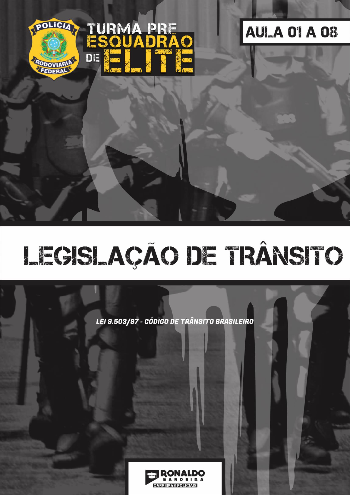 <p>WWW.RONALDOBANDEIRA.COM.BR</p><p>SUMÁRIO – LEGISLAÇÃO DE TRÂNSITO</p><p>AULA 01 ............................................................................................................................................... 6</p><p>CAPÍTULO I DISPOSIÇÕES PRELIMINARES ........................................................................................... 6</p><p>Anotações ............................................................................................................................................ 12</p><p>2.1. Organograma: ...................................................................................................................... 17</p><p>OBSERVAÇÕES: ................................................................................................................................. 17</p><p>1. COMPETÊNCIAS .................................................................................................................... 18</p><p>3.1.1. Composição – art. 10, CTB: ............................................................................................... 18</p><p>Exercícios - Aula 1 ........................................................................................................................ 19</p><p>Do Sistema Nacional de Trânsito .......................................................................................................... 19</p><p>AULA 02 ............................................................................................................................................. 20</p><p>1.1.1. Competências art. 20, CTB c/c Dec. 1.655/65: ....................................................................... 23</p><p>ERRADO. ............................................................................................................................................... 25</p><p>3. Executivos Rodoviários ................................................................................................................. 26</p><p>4. Executivos de Trânsito do Estado e DF ......................................................................................... 27</p><p>5. Polícias Militares dos Estados e DF ............................................................................................... 28</p><p>6. Executivos de Trânsito Municipal ................................................................................................. 28</p><p>ESTADO x MUNICÍPIO ........................................................................................................................... 30</p><p>Exercícios.............................................................................................................................................. 32</p><p>Legislação da PRF ................................................................................................................................. 36</p><p>AULA 03 e 04 .................................................................................................................................... 39</p><p>Art. 230. Conduzir o veículo: ................................................................................................................ 66</p><p>… .......................................................................................................................................................... 66</p><p>Normas de circulação e conduta, dos pedestres e infrações relacionadas ........................................... 74</p><p>Aula III. Do motorista profissional, educação para o trânsito, sinalização e dos veículos: ................... 81</p><p>AULA 05 ............................................................................................................................................. 89</p><p>Dos Veículos em circulação internacional, Do registro, Licenciamento e da Habilitação ............ 103</p><p>Questões Comentadas ....................................................................................................................... 109</p><p>AULA 06 ........................................................................................................................................... 116</p><p>Das Penalidades e Medidas Administrativas ............................................................................ 125</p><p>WWW.RONALDOBANDEIRA.COM.BR</p><p>AULA 07 ....................................................................................................................................... 131</p><p>Do Processo administrativo, infrações de trânsito e pontos esparsos ............................................. 135</p><p>Exercícios Anexo I e Disposições Finais .......................................................................................... 144</p><p>AULA 08 ........................................................................................................................................... 150</p><p>Dos Crimes de Trânsito ...................................................................................................................... 150</p><p>Exercícios de Crimes de Trânsito ....................................................................................................... 156</p><p>Motorista com CNH cassada provoca acidente grave no Litoral Norte ....................................... 158</p><p>Acidente ocorreu na praia de Capão Novo; jovem de 17 anos sofreu traumatismo craniano 158</p><p>MATERIAL COMPLEMENTAR – AULA 01 ............................................................................... 163</p><p>COMPETÊNCIAS .................................................................................................................................. 163</p><p>1. CONTRAN: .............................................................................................................................. 166</p><p>1.2. Competências – art. 12, CTB + art. 75 + art. 100: .....