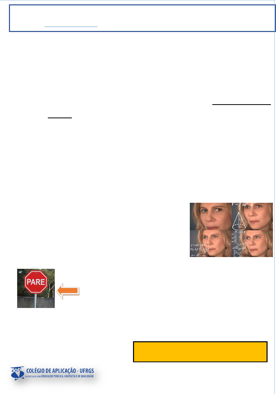 Tarefa de estudos dirigidos a distância 1. PRONOMES A classe gramatical dos pronomes tem duas funções básicas: ou eles ocupam o lugar de um substantivo (de acordo com a sua pessoa gramatical) ou eles dizem a que pessoa gramatical o substantivo está relacionado. Você deve estar perguntando: Mas quem são essas pessoas gramaticais? Elas têm endereço? Passam pela gente na rua? A sora Vivian responde: Chamamos de pessoa gramatical as únicas 3 posições possíveis e, qualquer situação de comunicação. Também podemos chama-las de pessoas do discurso, porque a Linguística e os Estudos de Gramática chamam qualquer comunicação com sentido de discurso. Funciona assim: imagine uma conversa ou um texto. A 1ª pessoa é aquela que está falando ou escrevendo. A 2ª pessoa é aquela com quem a 1ª está se comunicando. A 3ª pessoa é o assunto. Os nomes das pessoas gramaticais são os pronomes pessoais retos – aqueles que conjugam verbos: 1ª pessoa: eu (uma pessoa) e nós (eu e mais alguém) 2ª pessoa: tu (uma pessoa) e vós (quando a primeira pessoa se dirige a mais de uma pessoa ao mesmo tempo – mais de um tu) 3ª pessoa – ele, ela (uma pessoa) e eles, elas. Importante: os pronomes pessoais são palavras vazias, ou seja, eles são ocupadas de acordo com a situação. Isso quer dizer que, em uma conversa, eu será quem está falando naquele momento, e tu será a pessoa com quem aquele eu fala; quando a outra pessoa, que era tu, passa a responder, ela se torna eu, e automaticamente a outra se torna tu. Mas e o VOCÊ? Ele não conjuga verbo também? Não é a mesma coisa que TU? Usamos a palavra você ao invés de tu em várias situações de comunicação, sim. Por exemplo, nas placas de trânsito e sinalizações. A placa é PARE porque se dirige a você. Se fosse tu, teria de ser PARA. Em geral, você é considerado mais formal no Português Brasileiro. Antigamente algumas pessoas ficavam ofendidas quando alguém mais jovem lhes tratava como tu. Hoje em dia já não é assim. No entanto, há duas diferenças básicas entre tu e você: Diferença 1-Você não conjuga verbos no lugar de tu. A conjugação de você é a da 3ª pessoa. Assim: Tu percebeste o que está acontecendo? Você percebeu o que está acontecendo? Ele percebeu o que está acontecendo? Aluno(a): Turmas: 81 e 82 Data de entrega: 20/11/2020 (semanal) Professoras: Vivian Albertoni Componente curricular: Literatura e Língua Portuguesa Enviar para: soravivian@gmail.com Isso significa que o sentido de você é o mesmo de tu, mas a conjugação de você é a mesma de ele/ela. Tarefa de estudos dirigidos a distância A razão disso (você ser conjugado como 3ª pessoa) está ligada à segunda diferença. Diferença 2-Você não é um pronome pessoal reto, e sim um pronome de tratamento. Os pronomes de tratamento são uma lista de formas de se dirigir a pessoas com algum cargo e/ou autoridade. São expressões como Vossa Majestade e Vossa Alteza (para reis e rainhas), Vossa Senhoria (para qualquer pessoa que ocupa posição superior) e Vossa Santidade (o Papa). A palavra Vossa Mercê com o tempo virou vosmecê e vossuncê e, depois, você. Em algumas regiões do Brasil, inclusive, temos ocê ou cê. Note que os pronomes de tratamento são uma forma de reforçar o poder de uma pessoa sobre a outra. Quando alguém diz Vossa Alteza (ou Sua Alteza), ela está dizendo que a outra pessoa está ‘nas alturas’, ou seja, é superior, em relação a ela – tanto que a 1ª pessoa nem está se dirigindo diretamente a ela, e sim falando da sua (dela) alteza, por exemplo. A expressão Vossa Mercê tem a ver com isso: estar à mercê é estar à disposição, estar submetido às vontades de alguém. É a mesma lógica do agradecimento, em Língua Portuguesa: dizer Obrigado e Obrigada é dizer que se deve um favor, originalmente – que se está ‘na obrigação’ com a outra pessoa. Pronomes Pessoais Oblíquos: Uhm? Os pronomes pessoais têm dois tipos - os retos e os oblíquos. Os retos são esses de que tratamos acima, que dão nome às pessoas e conjugam os verbos. Os oblíquos também dão nome às pessoas, só que eles são usados quando a pessoa não está conjugando o verbo, e sim sofrendo a ação/influência dele. Portanto, para conjugar verbo a 1ª pessoa usa eu, mas se a 1ª pessoa sofreu influência do verbo, ela precisa usar me, mim ou comigo. Exemplo errado: O gato encarou eu por um tempão. Exemplo certo: O gato encarou-me por um tempão ou O gato me encarou por um tempão. Da mesma forma, para conjugar verbo indicando 2ª pessoa usa-se tu, mas se a 2ª pessoa sofreu influência do verbo, precisa ser te, ti ou contigo. Exemplo errado: O gato encarou tu por um tempão. Exemplo certo: O gato encarou-te por um tempão ou O gato te encarou por um tempão. Agora, preste atenção no seguinte: Para conjugar verbo indicando 3ª pessoa, usa-se ele e ela, mas se foi a 3ª pessoa que sofreu influência do verbo, precisa ser o, a ou lhe. Exemplo errado: O gato encarou ele por um tempão. Exemplo certo: O gato encarou-o por um tempão ou O gato o encarou por um tempão. ALERTA: Estamos falando aqui de formas consideradas corretas na escrita formal. Na fala do dia a dia, usamos os pronomes retos de 3ª pessoa em qualquer lugar da frase, e não tem problema algum. O importante é que nos entendemos. PRONOMES: UM SACO DE GATOS? Existem vários tipos de pronomes (pessoal reto, pessoal oblíquo, de tratamento, possessivo, demonstrativo, relativo, interrogativo e indefinido), e por isso pode parecer que é uma classe de Portanto, como você vem de Vossa Mercê, que era uma forma respeitosa de não se dirigir diretamente à 2ª pessoa, ele é um pronome de 3ª pessoa, e por isso conjugado como 3ª pessoa. Tarefa de estudos dirigidos a distância palavras meio sem critério. No entanto, para todos eles serve a regra que falamos lá no começo: eles estão sempre relacionados às 3 pessoas gramaticais. Vamos falar de apenas mai