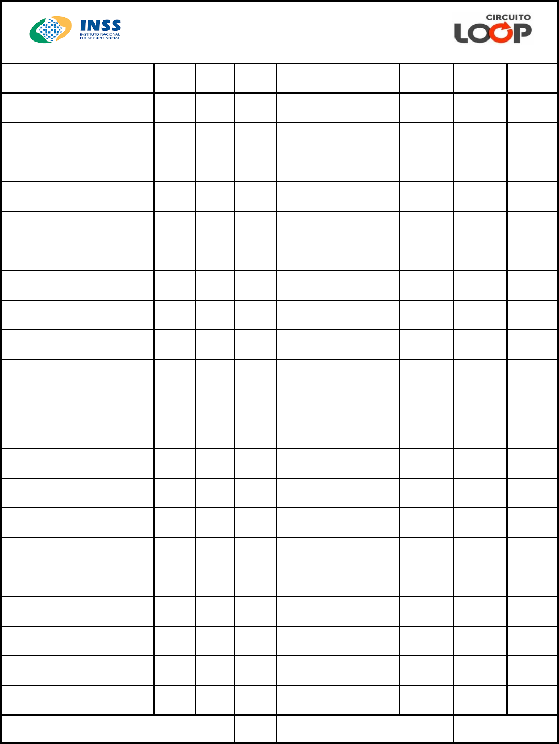 <p>Matéria Começo Final Data obs Revisão 1 Revisão 2 Questões</p><p>Português e Redação Oficial</p><p>Administrativo</p><p>Seguridade Social</p><p>Informática</p><p>Português e Redação Oficial</p><p>Constitucional</p><p>Raciocínio Lógico Matemático</p><p>Seguridade Social</p><p>Português e Redação Oficial</p><p>Administrativo</p><p>Informática</p><p>Seguridade Social</p><p>Português e Redação Oficial</p><p>Constitucional</p><p>Raciocínio Lógico Matemático</p><p>Administrativo</p><p>Seguridade Social</p><p>Português e Redação Oficial</p><p>Informática</p><p>Seguridade Social</p><p>Administrativo</p><p>CIRCUITO LOOP INSS</p><p>Revisão do Ciclo Questões Resolvidas</p>