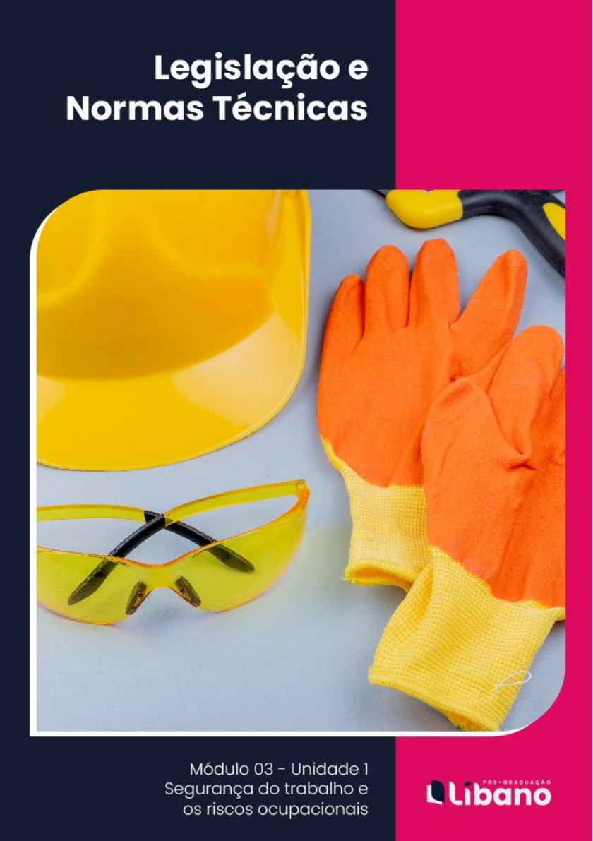 Diretor Executivo DAVID LIRA STEPHEN BARROS Gerente Editorial CRISTIANE SILVEIRA CESAR DE OLIVEIRA Projeto Gráfico TIAGO DA ROCHA Autoria ANDRÉA CÉSAR PEDROSA AUTORIA Andréa César Pedrosa Sou graduada em Administração, especialista em Educação a Distância e mestranda em Pedagogia do e-Learning, mas minha história profissional começou bem antes da formação superior, a partir da graduação técnica em Segurança do Trabalho e Meio Ambiente, pela antiga Escola Técnica Federal do estado de Pernambuco (hoje IFPE). Durante 17 anos exerci com muita paixão a profissão, contribuindo da melhor forma para assegurar a integridade física, qualidade de vida e meio ambiente nos ambientes de trabalho por onde passei. É uma linda profissão, cuja missão transcende a função de Técnico em Segurança, pois todos precisam vestir a camisa da Segurança, da Saúde, do Meio Ambiente e da Responsabilidade Social. Sou apaixonada pelo que faço e adoro transmitir minha experiência de vida àqueles que estão iniciando em suas profissões. Por isso fui convidada pela Editora Telesapiens a integrar seu elenco de autores independentes. Estou muito feliz em poder ajudar você nesta fase de muito estudo e trabalho. Conte comigo! ICONOGRÁFICOS Olá. Esses ícones irão aparecer em sua trilha de aprendizagem toda vez que: OBJETIVO: para o início do desenvolvimento de uma nova compe- tência; NOTA: quando forem necessários obser- vações ou comple- mentações para o seu conhecimento; EXPLICANDO MELHOR: algo precisa ser melhor explicado ou detalhado; SAIBA MAIS: textos, referências bibliográficas e links para aprofundamen- to do seu conheci- mento; ACESSE: se for preciso aces- sar um ou mais sites para fazer download, assistir vídeos, ler textos, ouvir podcast; ATIVIDADES: quando alguma atividade de au- toaprendizagem for aplicada; DEFINIÇÃO: houver necessidade de se apresentar um novo conceito; IMPORTANTE: as observações escritas tiveram que ser priorizadas para você; VOCÊ SABIA? curiosidades e indagações lúdicas sobre o tema em estudo, se forem necessárias; REFLITA: se houver a neces- sidade de chamar a atenção sobre algo a ser refletido ou dis- cutido sobre; RESUMINDO: quando for preciso se fazer um resumo acumulativo das últi- mas abordagens; TESTANDO: quando o desen- volvimento de uma competência for concluído e questões forem explicadas; SUMÁRIO Segurança do trabalho e normas regulamentadoras ........... 12 A importância da legislação trabalhista ............................................................ 12 A segurança do trabalho no Brasil .................................................. 15 As Normas regulamentadoras | NRs ................................................................... 17 Riscos ocupacionais ................................................... 24 Risco versus perigo .......................................................................................... 24 Riscos ocupacionais ........................................................................................ 26 Medidas de proteção ...................................................................................... 27 Equipamentos de proteção individual .......................................................... 27 Equipamentos de proteção coletiva ............................................................. 29 Prevenção de acidentes no trabalho .............................. 30 Conceitos de acidente de trabalho .............................................................. 30 Conceito legal ........................................................................................................ 31 Conceito prevencionista ...................................................................................... 33 Causas dos acidentes ...................................................................................... 34 CAT – Comunicação de acidente de trabalho ............................................. 34 Prevenção de acidentes ................................................................................. 36 Aspecto legal .................................................................... 37 Aspecto institucional .............................................................. 37 Aspecto educativo ........................................................................................... 37 CIPA – Comissão interna de prevenção de acidentes ...........39 Histórico ...........................................................................................................39 NR - 05 ........................................................................................................ 41 Objetivo da CIPA .............................................................................................41 Formação da CIPA ...........................................................................................41 Responsabilidades ...........................................................................................43 Atribuições da CIPA .........................................................................................44 01 Segurança, Meio Ambiente, Saúde e Responsabilidade Social 9 UNIDADE 10 Segurança, Meio Ambiente, Saúde e Responsabilidade Social INTRODUÇÃO Diariamente nós nos expomos a vários riscos e no ambiente de trabalho não é diferente. Cada atividade produtiva apresenta riscos específicos que devemos conhecer e deles nos proteger, evitando acidentes de trabalho. Nesta unidade iremos conhecer a história da Segurança do Trabalho, identificar os riscos ocupacionais que podem estar presentes no ambiente de trabalho e nos tornar capazes, também, de atuar de forma preventiva em conformidade com as normas de segurança. Lembre-se sempre que o compromisso com a segurança não é exclusividade do Setor de Segurança. Todos devem vestir a camisa da prevenção, fazendo a sua parte para que o ambiente de trabalho seja saudável. Vamos 