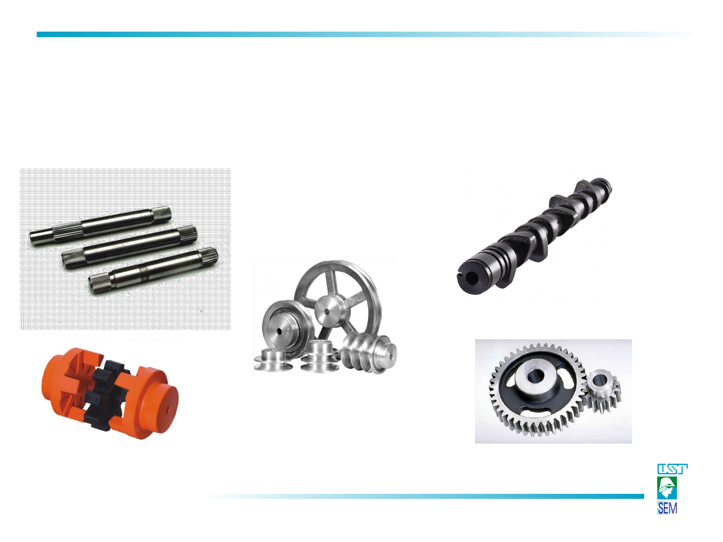 <p>Desenho Técnico Mecânico</p><p>AULA 9 - ELEMENTOS DE MÁQUINA</p><p>(TRANSMISSÃO)</p><p>DESENHO TÉCNICO MECÂNICO I (SEM0564)</p><p>Notas de Aulas v.2017</p><p>Desenho Técnico Mecânico</p><p>ELEMENTOS DE TRANSMISSÃO</p><p>EIXOS</p><p>Serilhados</p><p>Ranhurados</p><p>Maciços</p><p>Vazados</p><p>Cônicos</p><p>Roscados</p><p>Desenho Técnico Mecânico</p><p>ELEMENTOS DE TRANSMISSÃO</p><p>EIXOS</p><p>Desenho Técnico Mecânico</p><p>ELEMENTOS DE TRANSMISSÃO</p><p>EIXOS</p><p>Desenho Técnico Mecânico</p><p>Dimensões [mm]</p><p>Altura do símbolo, dos algarismos e</p><p>letras, h</p><p>3,5 5 7 10 14 20</p><p>Espessura da linha para símbolos e</p><p>letra, d</p><p>0,35 0,5 0,7 1 1,4 2</p><p>Desenho Técnico Mecânico</p><p>ELEMENTOS DE TRANSMISSÃO</p><p>POLIAS</p><p>Desenho Técnico Mecânico</p><p>ELEMENTOS DE TRANSMISSÃO</p><p>POLIAS</p><p>Desenho Técnico Mecânico</p><p>ELEMENTOS DE TRANSMISSÃO</p><p>POLIAS</p><p>Desenho Técnico Mecânico</p><p>ELEMENTOS DE TRANSMISSÃO</p><p>POLIAS</p><p>Desenho Técnico Mecânico</p><p>ELEMENTOS DE TRANSMISSÃO</p><p>POLIAS</p><p>Desenho Técnico Mecânico</p><p>ELEMENTOS DE TRANSMISSÃO</p><p>CORREIAS</p><p>Desenho Técnico Mecânico</p><p>ELEMENTOS DE TRANSMISSÃO</p><p>CORREIAS</p><p>Desenho Técnico Mecânico</p><p>Seção Largura</p><p>superior (ls)</p><p>(mm)</p><p>Altura (h)</p><p>(mm)</p><p>Ângulo (°)</p><p>Designação Largura</p><p>primitiva</p><p>(mm)</p><p>A 11 13 8 40 ± 1</p><p>B 14 17 11 40 ± 1</p><p>C 19 22 14 40 ± 1</p><p>D 27 32 19 40 ± 1</p><p>ELEMENTOS DE TRANSMISSÃO</p><p>CORREIAS</p><p>Desenho Técnico Mecânico</p><p>ELEMENTOS DE TRANSMISSÃO</p><p>ENGRENAGENS</p><p>Desenho Técnico Mecânico</p><p>ELEMENTOS DE TRANSMISSÃO</p><p>ENGRENAGENS</p><p>Engrenagens Cilíndricas</p><p>Dente Reto Dente Helicoidal</p><p>Engrenagens Cônicas</p><p>Dente Reto Dente Helicoidal</p><p>Coroa-Pinhão Cremalheira</p><p>Montagens</p><p>Eixos Paralelos Eixos Reversos</p><p>Desenho Técnico Mecânico</p><p>ELEMENTOS DE TRANSMISSÃO</p><p>ENGRENAGENS</p><p>Engrenagens Cilíndricas</p><p>Engrenagens Cônicas</p><p>Coroa-Pinhão Cremalheira</p><p>MontagensDente Reto</p><p>Dente Helicoidal</p><p>Dente Reto Dente Helicoidal</p><p>Desenho Técnico Mecânico</p><p>ELEMENTOS DE TRANSMISSÃO</p><p>ENGRENAGENS - Simbologia</p><p>Desenho Técnico Mecânico</p><p>Elementos de uma engrenagem</p><p>Perfil do dente</p><p>ELEMENTOS DE TRANSMISSÃO</p><p>ENGRENAGENS</p><p>Desenho Técnico Mecânico</p><p>ELEMENTOS DE TRANSMISSÃO</p><p>ENGRENAGENS</p><p>Formulações</p><p>Desenho Técnico Mecânico</p><p>ELEMENTOS DE TRANSMISSÃO</p><p>ENGRENAGENS Representação Gráfica</p><p>Desenho Técnico Mecânico</p><p>ELEMENTOS DE TRANSMISSÃO</p><p>ENGRENAGENS</p><p>Desenho Técnico Mecânico</p><p>ELEMENTOS DE TRANSMISSÃO</p><p>ENGRENAGENS</p><p>Desenho Técnico Mecânico</p><p>ELEMENTOS DE TRANSMISSÃO</p><p>ENGRENAGENS</p><p>Desenho Técnico Mecânico</p><p>ELEMENTOS DE TRANSMISSÃO</p><p>ENGRENAGENS</p><p>Desenho Técnico Mecânico</p><p>ELEMENTOS DE TRANSMISSÃO</p><p>CAMES</p><p>Came de Disco</p><p>Desenho Técnico Mecânico</p><p>ELEMENTOS DE TRANSMISSÃO</p><p>CAMES</p><p>Desenho Técnico Mecânico</p><p>ELEMENTOS DE TRANSMISSÃO</p><p>ACOPLAMENTOS Acoplamentos Fixos</p><p>Exemplo de Aplicação</p><p>Desenho Técnico Mecânico</p><p>ELEMENTOS DE TRANSMISSÃO</p><p>ACOPLAMENTOS</p><p>Acoplamentos Elásticos</p><p>De pinos</p><p>De garras</p><p>Desenho Técnico Mecânico</p><p>ELEMENTOS DE TRANSMISSÃO</p><p>EXEMPLOS</p><p>Desenho Técnico Mecânico</p><p>ELEMENTOS DE TRANSMISSÃO</p><p>EXEMPLOS</p><p>Desenho Técnico Mecânico</p><p>Exercício – Fazer o desenho</p><p>definitivo dos componentes e</p><p>do conjunto.</p><p>Fonte: Apostila Desenho Mecânico, v9. Projeção ortogonal. Convênio SENAI/São Paulo</p><p>Desenho Técnico Mecânico</p><p>Fonte: Apostila Desenho Mecânico, v9. Projeção ortogonal. Convênio SENAI/São Paulo</p><p>Desenho Técnico Mecânico</p><p>Fonte: Apostila Desenho Mecânico, v9. Projeção ortogonal. Convênio SENAI/São Paulo</p><p>Desenho Técnico Mecânico</p><p>REFERÊNCIAS</p><p>Gordo, N.; Ferreira, J. Elementos de Máquina, Escola SENAI-SP.</p><p>Pauli, E. A.; Uliana, F. S. Noções Básicas de Processos de</p><p>Soldagem e Corte, Escola SENAI-ES.</p>