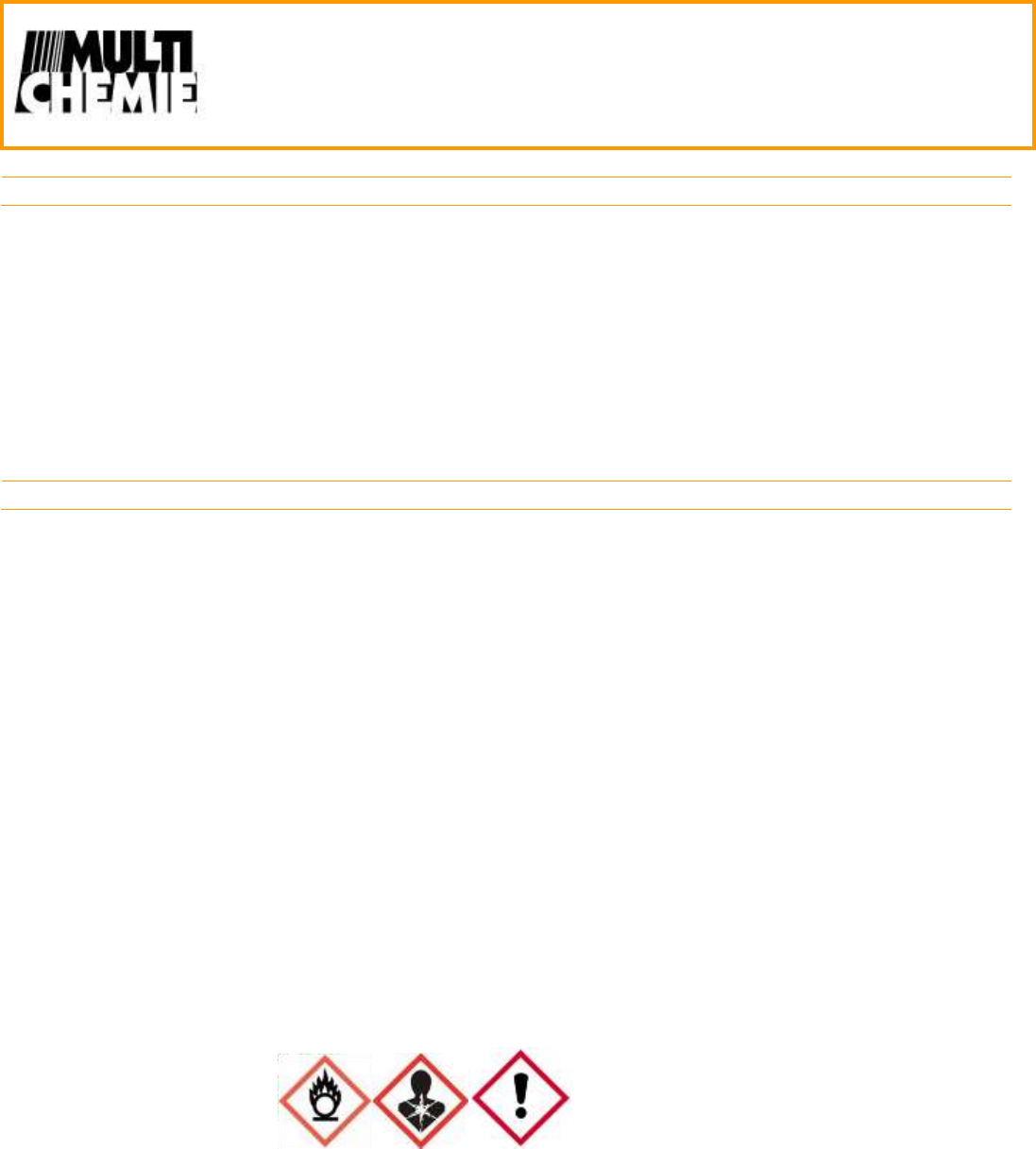 <p>PERSULFATO DE POTÁSSIO FISPQ 139</p><p>Ficha de Informação de Segurança de Produto</p><p>Químico</p><p>1 de 10</p><p>FISPQ139_REV00</p><p>1. IDENTIFICAÇÃO DO PRODUTO E DA EMPRESA</p><p>Nome do Produto: PERSULFATO DE POTÁSSIO</p><p>Fornecedor: Multichemie Indústria e Comércio de Produtos Químicos Ltda.</p><p>R. Howard Archibald Acheson Jr., 652</p><p>Jd. da Glória – Cotia (SP) – CEP: 06711-280</p><p>www.multichemie.com.br - multichemie@multichemie.com.br</p><p>Telefone de Emergência: 0800 7071 767</p><p>0800 0111 767</p><p>Abiquim / Proquímica: 0800 118270</p><p>2. IDENTIFICAÇÃO DE PERIGOS</p><p>Classificação da Substância ou mistura</p><p>Classificação</p><p>(REGULAMENTAÇÃO (EC)</p><p>No. 1272/2008)</p><p>Sólido Oxidante, Categoria 3, H272</p><p>Toxicidade aguda, Categoria 4, Oral, H302</p><p>Irritação nos olhos, Categoria 2, H319</p><p>Toxicidade sistêmica de órgão-alvo específico – exposição única, Categoria 3, Sistema</p><p>respiratório, H335</p><p>Irritação na pele, Categoria 2, H315</p><p>Sensibilização respiratória, Categoria 1, H334</p><p>Sensibilização da pele, Categoria 1, H317</p><p>Para obter o texto completo das declarações H mencionadas nesta seção, consulte a seção 16.</p><p>Classificação (67/548/CEE ou</p><p>1999/45/CE)</p><p>O Comburente R8</p><p>Xn Nocivo R22</p><p>Xi Irritante R36/37/38</p><p>R42/43</p><p>Para obter o texto completo das Frases R mencionadas nesta seção, consulte a seção 16.</p><p>Elementos do rótulo</p><p>Rotulagem</p><p>(REGULAMENTAÇÃO (EC)</p><p>Nº 1272/2008)</p><p>Pictogramas de risco</p><p>Palavra de advertência</p><p>Perigo</p><p>Frases de perigo</p><p>H272 Pode agravar um incêndio, comburente.</p><p>H302 Nocivo se ingerido.</p><p>H315 Causa irritação à pele.</p><p>H317 Pode provocar reações alérgicas na pele.</p><p>H319 Provoca irritação ocular grave.</p><p>H335 Pode causar irritação respiratória.</p><p>H334 Quando inalado pode causar sintomas alérgicos, asma ou dificuldades respiratórias.</p><p>H335 Pode provocar irritação das vias respiratórias.</p><p>PERSULFATO DE POTÁSSIO FISPQ 139</p><p>Ficha de Informação de Segurança de Produto</p><p>Químico</p><p>2 de 10</p><p>FISPQ139_REV00</p><p>Frases de precaução</p><p>Prevenção</p><p>P280 Usar luvas de proteção.</p><p>Resposta</p><p>P302+P352 SE NA PELE: Lavar com bastante água e sabão.</p><p>P304+P341 SE INALADO: Se a respiração é difícil, remover a vítima para um ambiente de ar</p><p>puro e permanecer em repouso em uma posição confortável para respirar.</p><p>P305+P351+P338 SE NOS OLHOS: Lavar cuidadosamente com água durante vários minutos.</p><p>Remover as lentes de contato, se presentes e de fácil remoção. Continue enxaguando.</p><p>Rotulagem reduzida (< 125 ml)</p><p>Pictogramas de risco</p><p>Palavra de advertência</p><p>Perigo</p><p>Frases de perigo</p><p>H317 Pode provocar reações alérgicas na pele.</p><p>H334 Quando inalado pode causar sintomas alérgicos, asma ou dificuldades respiratórias.</p><p>Frases de precaução</p><p>P280 Usar luvas de proteção.</p><p>P302+P352 SE NA PELE: Lavar com bastante água e sabão.</p><p>P304+P341 SE INALADO: Se a respiração é difícil, remover a vítima para um ambiente de ar puro e permanecer em</p><p>repouso em uma posição confortável para respirar.</p><p>P305+P351+P338 SE NOS OLHOS: Lavar cuidadosamente com água durante vários minutos. Remover as lentes de</p><p>contato, se presentes e de fácil remoção. Continue enxaguando.</p><p>N° CAS: 7727-21-1</p><p>Outros perigos</p><p>Não conhecidos.</p><p>3. COMPOSIÇÃO E INFORMAÇÕES SOBRE OS INGREDIENTES</p><p>Fórmula K2S2O8</p><p>Nº CAS 7727-21-1</p><p>NºCE 231-781-8</p><p>Massa Molar 270,32 g/mol</p><p>Componentes perigosos (REGULAMENTAÇÃO (EC) Nº 1272/2008)</p><p>Nome químico (concentração) Nº CAS Número de registro Classificação</p><p>Persulfato de potássio (<= 100%) 7727-21-1 *) Sólido Oxidante, Categoria 3, H272</p><p>Toxicidade aguda, Categoria 4, H302</p><p>Irritação na pele, Categoria 2, H315</p><p>Irritação nos olhos, Categoria 2, H319</p><p>Sensibilização respiratória, Categoria 1, H334</p><p>Sensibilização da pele, Categoria 1, H317</p><p>Toxicidade sistêmica de órgão-alvo específico –</p><p>exposição única, Categoria 3, H335</p><p>PERSULFATO DE POTÁSSIO FISPQ 139</p><p>Ficha de Informação de Segurança de Produto</p><p>Químico</p><p>3 de 10</p><p>FISPQ139_REV00</p><p>*) Não há número de registro disponível para essa substância, uma vez que a substância ou a utilização da mesma são isentas de</p><p>registro de acordo com o artigo 2 da norma REACH (CE) No. 1907/2006, a tonelagem anual não exige registro ou o registro está</p><p>previsto para um prazo posterior.</p><p>Para obter o texto completo das declarações H mencionadas nesta seção, consulte a seção 16.</p><p>Componentes perigosos (1999/45/CE)</p><p>Nome químico (concentração) Nº CAS Número de registro Classificação</p><p>Persulfato de potássio (<= 100%) 7727-21-1 *) O, Comburente; R8</p><p>Xn, Nocivo; R22</p><p>Xi, Irritante; R36/37/38</p><p>R42/43</p><p>Para obter o texto completo das Frases R mencionadas nesta seção, consulte a seção 16.</p><p>Mistura Não aplicável</p><p>4. MEDIDAS DE PRIMEIROS SOCORROS</p><p>Descrição das medidas de primeiros socorros</p><p>Recomendação geral O prestador de primeiros socorros deve se proteger</p><p>Após inalação Exposição ao ar fresco. Chamar um médico.</p><p>Após contato com a pele Lavar abundantemente com água. Tirar a roupa contaminada. Consultar um médico.</p><p>Após contato com os olhos Enxaguar abundantemente com água. Consultar um oftalmologista.</p><p>Após ingestão Fazer a vítima beber água imediatamente (dois copos no máximo). Consultar um médico.</p><p>Sintomas e efeitos mais</p><p>importantes, agudos e</p><p>retardados</p><p>Efeitos irritantes, reações alérgicas, tosse, respiraç