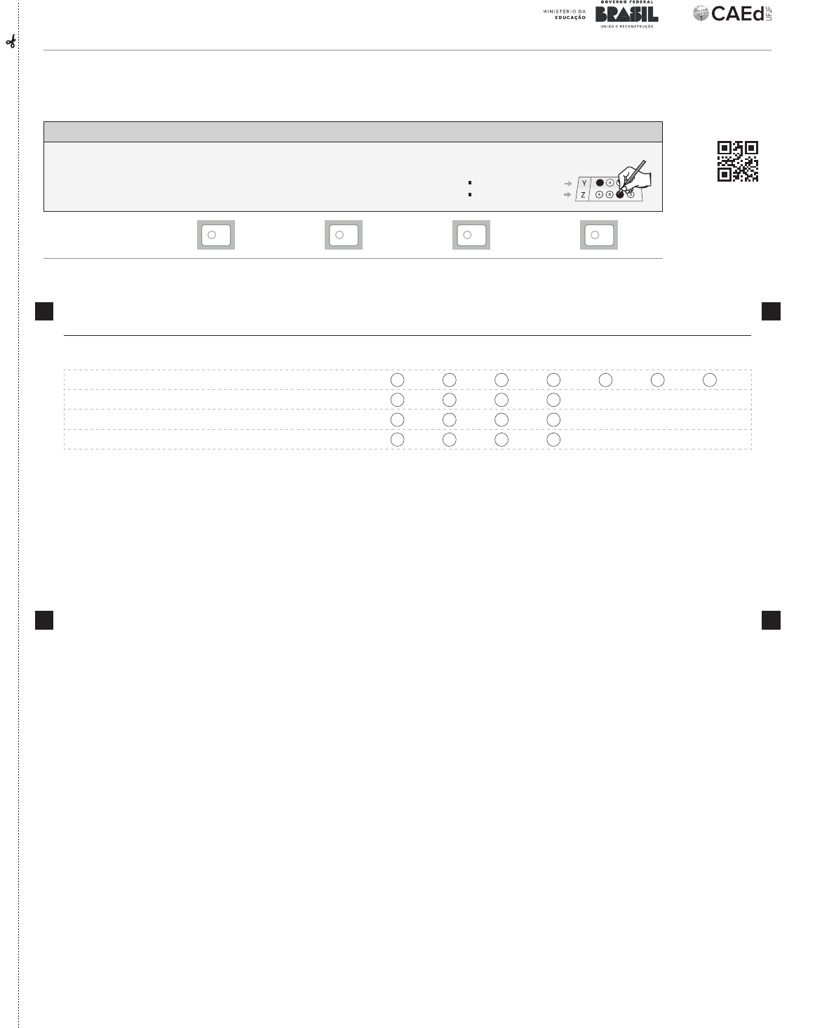 <p>55444488222299775566</p><p>Questão 01 - Produção de um resumo</p><p>Situação de correção A B C D E F G</p><p>Competência I - Registro formal A B C D</p><p>Competência II - Adequação ao tema/estrutura textual A B C D</p><p>Competência III - Coerência e coesão textual A B C D</p><p>INSTRUÇÕES</p><p>Prezado(a) Professor(a), para realizar a correção do teste, consulte o Guia de Correção desta</p><p>etapa, disponibilizado na plataforma. Verifique as orientações para a avaliação de cada questão.</p><p>Ao realizar as marcações neste formulário, preencha o círculo completamente e com nitidez, utili-</p><p>zando caneta esferográfica de tinta azul ou preta.</p><p>EXEMPLO DE PREENCHIMENTO</p><p>resposta à questão Y = A</p><p>resposta à questão Z = C</p><p>FORMULÁRIO DE CORREÇÃO DO(A) PROFESSOR(A) – 9EF</p><p>AVALIAÇÃO CONTÍNUA DA APRENDIZAGEM NOS ANOS FINAIS – CICLO I / 2024</p><p>Nome do(a) estudante: __________________________________________________________________________________________________</p><p>Data de nascimento do(a) estudante: ______ / ______ / ______ Nome da turma: ______________________________________________</p><p>Legenda para preenchimento</p><p>das competências de I a III</p><p>FOLHA DE INFORMAÇÕES COMPLEMENTARES - AVALIAÇÃO DE ESCRITA - 4EF E 5EF</p><p>1ª Avaliação Formativa 2024 - Diagnóstica Inicial</p><p>Prezada Professora Aplicadora ou Prezado Professor Aplicador,</p><p>Para realizar o preenchimento do Formulário de Correção e o lançamento na Plataforma Compromisso Nacional Criança</p><p>Alfabetizada, das Avaliações de Escrita do 4º e 5º anos do Ensino Fundamental, considere as informações a seguir:</p><p>CHAVE DE CORREÇÃO</p><p>Pág. 07 do Guia de correção: Em todas as competências avaliadas, o critério “Nível I” corresponde à opção A, o critério “Nível II”</p><p>corresponde à opção B, o critério “Nível IIII” corresponde à opção C, o critério “Nível IV” corresponde à opção D, e o critério “Nível V”</p><p>corresponde à opção E, como ilustrado abaixo:</p><p>A B C D E</p><p>Nível I Nível II Nível III Nível IV Nível V</p><p>ATENÇÃO!</p><p>Na plataforma Compromisso Nacional Criança Alfabetizada, em cada questão, caso necessário, sinalize uma das duas</p><p>indicações abaixo:</p><p>1ª Indicação</p><p>Questão em branco</p><p>Marque esta opção quando nenhum dos aspectos estiver sinalizado no Formulário de Correção. Esta</p><p>indicação é diferente da Situação de Correção “EM BRANCO” (opção B), prevista na pág. 01 do Guia</p><p>de correção, em que não há nenhuma resposta do estudante na avaliação.</p><p>■ “EM BRANCO” (opção B): para as situações em que não há nenhuma resposta do estudante</p><p>na avaliação;</p><p>■ Questão em branco: para as situações em que não há nenhuma marcação no Formulário</p><p>de Correção.</p><p>2ª Indicação</p><p>Dupla marcação</p><p>Marque esta opção quando você observar que no Formulário de Correção há mais de uma marcação. Por</p><p>exemplo, você observa que no Formulário estão sinalizadas as opções A e B para um mesmo aspecto,</p><p>conforme imagem abaixo:</p><p>A B C D E</p><p>NÍVEL I</p><p>FOLHA DE INFORMAÇÕES COMPLEMENTARES - AVALIAÇÃO DE ESCRITA - 4EF E 5EF</p><p>1ª Avaliação Formativa 2024 - Diagnóstica Inicial</p><p>Prezada Professora Aplicadora ou Prezado Professor Aplicador,</p><p>Para realizar o preenchimento do Formulário de Correção e o lançamento na Plataforma Compromisso Nacional Criança</p><p>Alfabetizada, das Avaliações de Escrita do 4º e 5º anos do Ensino Fundamental, considere as informações a seguir:</p><p>CHAVE DE CORREÇÃO</p><p>Pág. 07 do Guia de correção: Em todas as competências avaliadas, o critério “Nível I” corresponde à opção A, o critério “Nível II”</p><p>corresponde à opção B, o critério “Nível IIII” corresponde à opção C, o critério “Nível IV” corresponde à opção D, e o critério “Nível V”</p><p>corresponde à opção E, como ilustrado abaixo:</p><p>A B C D E</p><p>Nível I Nível II Nível III Nível IV Nível V</p><p>ATENÇÃO!</p><p>Na plataforma Compromisso Nacional Criança Alfabetizada, em cada questão, caso necessário, sinalize uma das duas</p><p>indicações abaixo:</p><p>1ª Indicação</p><p>Questão em branco</p><p>Marque esta opção quando nenhum dos aspectos estiver sinalizado no Formulário de Correção. Esta</p><p>indicação é diferente da Situação de Correção “EM BRANCO” (opção B), prevista na pág. 01 do Guia</p><p>de correção, em que não há nenhuma resposta do estudante na avaliação.</p><p>■ “EM BRANCO” (opção B): para as situações em que não há nenhuma resposta do estudante</p><p>na avaliação;</p><p>■ Questão em branco: para as situações em que não há nenhuma marcação no Formulário</p><p>de Correção.</p><p>2ª Indicação</p><p>Dupla marcação</p><p>Marque esta opção quando você observar que no Formulário de Correção há mais de uma marcação. Por</p><p>exemplo, você observa que no Formulário estão sinalizadas as opções A e B para um mesmo aspecto,</p><p>conforme imagem abaixo:</p><p>A B C D E</p><p>NÍVEL III</p><p>FOLHA DE INFORMAÇÕES COMPLEMENTARES - AVALIAÇÃO DE ESCRITA - 4EF E 5EF</p><p>1ª Avaliação Formativa 2024 - Diagnóstica Inicial</p><p>Prezada Professora Aplicadora ou Prezado Professor Aplicador,</p><p>Para realizar o preenchimento do Formulário de Correção e o lançamento na Plataforma Compromisso Nacional Criança</p><p>Alfabetizada, das Avaliações de Escrita do 4º e 5º anos do Ensino Fundamental, considere as informações a seguir:</p><p>CHAVE DE CORREÇÃO</p><p>Pág. 07 do Guia de correção: Em todas as competências avaliadas, o critério “Nível I” corresponde à opção A, o critério “Nível II”</p><p>corresponde à opção B, o crité