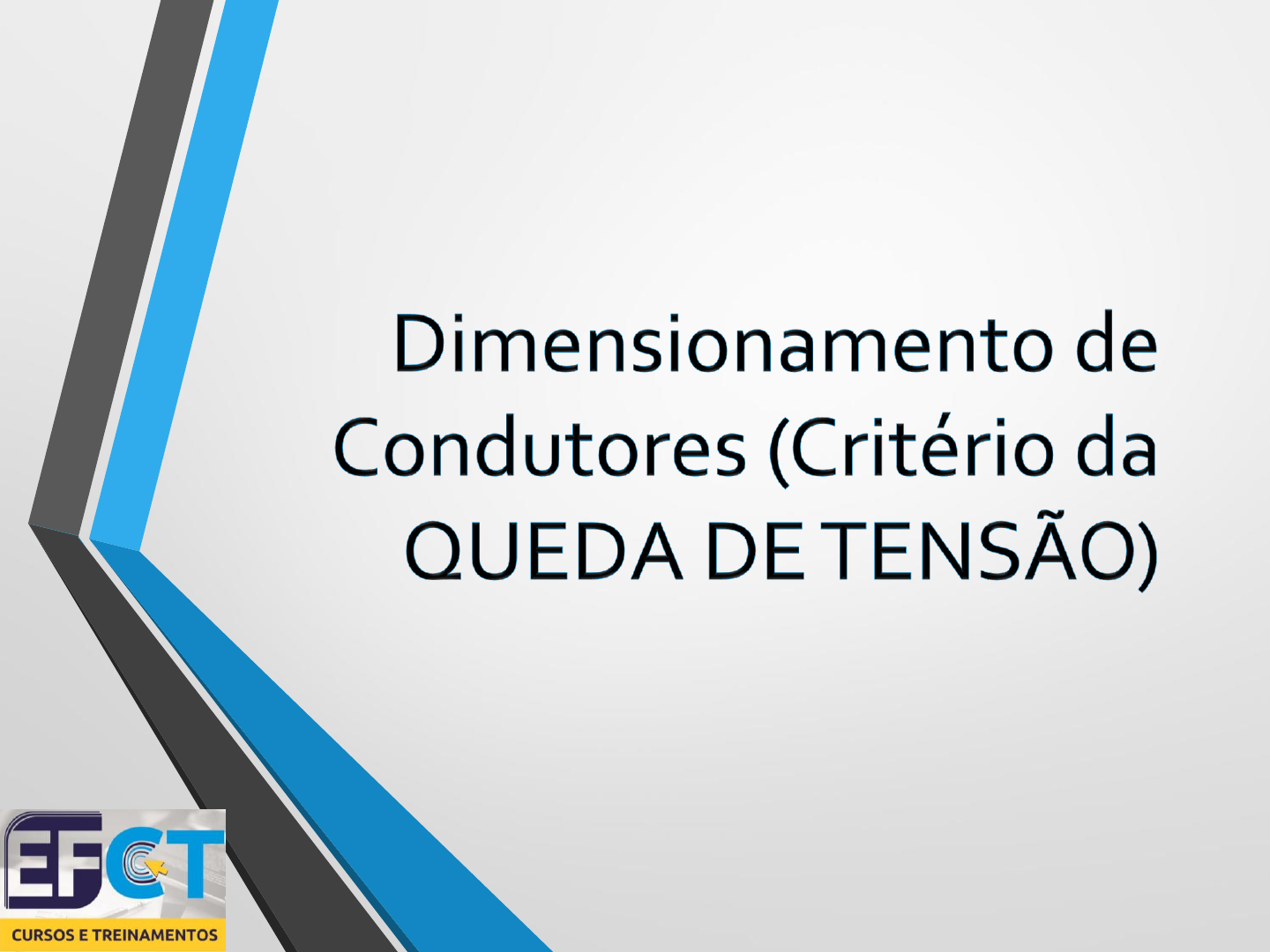 <p>TOPICOS</p><p>• Critério do limite de queda de tensão</p><p>• Exemplos de dimensionamento</p><p>• Critério do limite de tensão (trecho a trecho)</p><p>• Outros exemplos de dimensionamento</p><p>• Dimensionamento do condutor neutro</p><p>• Dimensionamento do condutor de proteção</p><p>• Dimensionamento do condutor de aterramento</p><p>2</p><p>Critério do Limite de</p><p>Queda de Tensão</p><p>• O valor da tensão não é o mesmo, considerando</p><p>desde o ponto de tomada de energia (ponto de</p><p>entrega) até o ponto mais afastado (circuito</p><p>terminal ou de utilização)</p><p>• O que ocorre é uma queda de tensão provocada</p><p>pela passagem da corrente em todos os</p><p>elementos do circuito (interruptores, condutores,</p><p>conexões, etc.)</p><p>3</p><p>Critério do Limite de</p><p>Queda de Tensão</p><p>• Essa queda de tensão não deve ser superior aos limites</p><p>máximos estabelecidos pela norma NBR 5410, a fim de</p><p>não prejudicar o funcionamento dos equipamentos de</p><p>utilização conectados aos circuitos terminais ou de</p><p>utilização</p><p>• A queda de tensão de uma instalação elétrica, desde a</p><p>origem até o ponto mais afastado de utilização de</p><p>qualquer circuito de utilização, não deve ser superior aos</p><p>valores da tabela vista a seguir, dados em relação ao valor</p><p>da tensão nominal da instalação</p><p>4</p><p>Critério do Limite de</p><p>Queda de Tensão</p><p>5</p><p>Critério do Limite de Queda de Tensão</p><p>6</p><p>A figura a seguir mostra as quedas de tensão definidas</p><p>pela norma:</p><p>Critério do Limite de Queda de Tensão</p><p>7</p><p>A figura a seguir mostra as quedas de tensão definidas</p><p>pela norma:</p><p>Critério do Limite de Queda de Tensão</p><p>8</p><p>• A queda de tensão nos circuitos alimentadores e</p><p>terminais (pontos de utilização) de uma</p><p>instalação elétrica produz efeitos que podem</p><p>levar os equipamentos desde à redução da sua</p><p>vida útil até a sua queima (falha)</p><p>• Essa queda de tensão faz com que os</p><p>equipamentos recebam em seus terminais uma</p><p>tensão inferior aos valores nominais,</p><p>prejudicando o seu desempenho</p><p>Critério do Limite de Queda de Tensão</p><p>9</p><p>A norma NBR 5410 estabelece as faixas nominais de tensão</p><p>dos sistemas elétricos, conforme a tabela A.1:</p><p>Critério do Limite de Queda de Tensão</p><p>10</p><p>• Roteiro para dimensionamento dos condutores pela critério do</p><p>limite de queda de tensão</p><p>• Determinar:</p><p>• Tipo de isolação do condutor</p><p>• Método de instalação</p><p>• Material do eletroduto</p><p>• Tipo do circuito (monofásico ou trifásico)</p><p>• Tensão do circuito ( V )</p><p>• Corrente de projeto ( IP) e potência (S)</p><p>• Fator de potência ( cosθ)</p><p>• Comprimento do circuito em km ( L )</p><p>• Queda de tensão admissível ( e % )</p><p>• Cálculo da queda de tensão unitária ( ! )</p><p>• Escolha do condutor</p><p>Critério do Limite de Queda de Tensão</p><p>11</p><p>• Queda de tensão unitária:</p><p>• Com o valor da queda de tensão unitária calculado,</p><p>entramos na Tabela 10.22 de queda de tensão para</p><p>condutores, que esteja de acordo com os dados</p><p>anteriores, e encontramos o valor cuja queda de tensão</p><p>seja igual ou imediatamente inferior à calculada, obtendo</p><p>desta forma a seção do condutor correspondente</p><p>Critério do Limite de Queda de Tensão</p><p>12</p><p>Critério do Limite de Queda de Tensão</p><p>13</p><p>Exemplos de Dimensionamento</p><p>de Condutores Elétricos</p><p>14</p><p>• Exemplo 1:dimensionar os condutores para um chuveiro,</p><p>tendo como dados: P=5400 W, V=220 V, FP=1, isolação de</p><p>PVC, eletroduto de PVC embutido em alvenaria;</p><p>temperatura ambiente: 30 oC; comprimento do circuito:</p><p>15 m</p><p>Critério do Limite de Queda de Tensão</p><p>15</p><p>• Obtendo a potência:</p><p>Critério do Limite de Queda de Tensão</p><p>16</p><p>• Solução: pelo critério do limite de queda de tensão:</p><p>• a) Material do eletroduto: PVC</p><p>• b) Tipo do circuito: monofásico (fase-fase)</p><p>• c) Fator de potência, FP = 1. Considera-se conforme a Tabela 10.22 –</p><p>circuito monofásico, FP = 0,95 -coluna 5)</p><p>• d) Comprimento do trecho: 15m</p><p>• e) Queda de tensão unitária:</p><p>• f) Escolha do condutor: consultando a tabela 10.22, coluna 5, obtém-</p><p>se o valor 16,9 V/AxKm(valor imediatamente inferior ao calculado)</p><p>Critério do Limite de Queda de Tensão</p><p>17</p><p>Logo os condutores fase, fase e proteção terão seção nominal</p><p>igual a 2,5 mm2</p><p>Pelo critério da capacidade de corrente os condutores fase,</p><p>fase e proteção deveriam ter seção nominal igual a 4 mm2</p><p>Critério do Limite de Queda de Tensão</p><p>18</p><p>• Exemplo 2:dimensionar os condutores para um circuito</p><p>de tomadas da cozinha, tendo como dados: S=2000 VA,</p><p>V=127 V, isolação de PVC, eletroduto embutido em</p><p>alvenaria; temperatura ambiente: 30 oC; comprimento do</p><p>circuito: 10 m</p><p>• Solução: pelo critério da capacidade de condução de</p><p>corrente:</p><p>• a) Tipo de isolação: PVc</p><p>• b) Método de instalação: 6 –B1</p><p>Critério do Limite de Queda de Tensão</p><p>19</p><p>Critério do Limite de Queda de Tensão</p><p>20</p><p>Solução: pelo critério do limite de queda de tensão:</p><p>a) Material do eletroduto: PVC</p><p>b) Tipo do circuito: monofásico (fase-neutro)</p><p>c) Fator de potência, FP = 1. Considera-se conforme a Tabela 10.22 –</p><p>circuito monofásico, FP = 0,95 -coluna 5)</p><p>d) Comprimento do trecho: 10m</p><p>e) Queda de tensão unitária:</p><p>f) Escolha do condutor: consultando a tabela 10.22, coluna 5, obtém-se</p><p>o valor 27,6 V/AxKm(valor imediatamente inferior ao calculado)</p><p>Critério