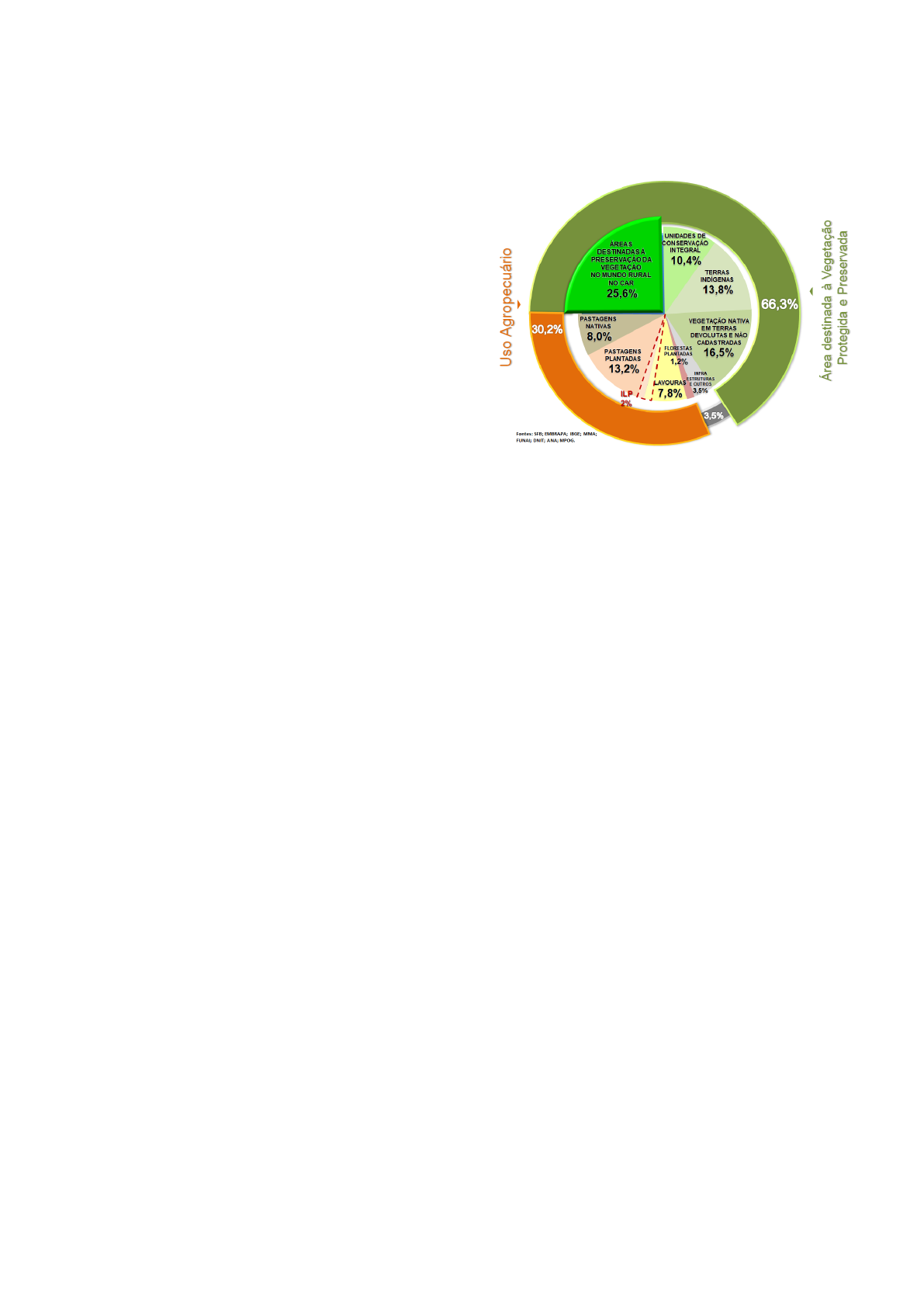 <p>BIOMAS BRASILEIROS</p><p>Extensão Territorial do Brasil - 851 milhões ha</p><p>AMAZÔNIA</p><p>- Maior bioma (50% do território brasileiro)</p><p>- 60% de sua área no território brasileiro</p><p>- 13,4% pastagens cultivadas</p><p>- 15% a 18% devastado</p><p>MATA ATLÂNTICA</p><p>- 13% da área territorial do Brasil</p><p>- Mais devastado (resta cerca de 7%)</p><p>- Abriga grande parte da população (70%)</p><p>- 25,7% pastagens cultivadas</p><p>- Maior ocupação</p><p>CERRADO</p><p>- Único que abrange as cinco regiões</p><p>- 22% território nacional</p><p>- Queimadas naturais</p><p>- Grande produção de bovinos</p><p>- 60% produção grão do Brasil</p><p>- 23,7% ocupado por pastagens</p><p>PANTANAL</p><p>- Menor bioma do Brasil (1,76% território)</p><p>- Maior planície inundável do mundo</p><p>- 62,0% no território brasileiro</p><p>- 16% ocupado por pastagens cultivadas</p><p>PAMPA</p><p>- 2,0% do território brasileiro</p><p>- Presente apenas no RS</p><p>- Restam cerca de 36% da vegetação</p><p>- Pecuária, agricultura, arenização</p><p>CAATINGA</p><p>- Exclusivo do Brasil (10% território nacional)</p><p>- Ocupa 70% da região nordeste</p><p>- Cerca de 50% devastado</p><p>- 23,1% pastagens cultivadas</p><p>USO DA TERRA NO BRASIL</p><p>PRODUÇÃO AGROPECUÁRIA</p><p>PRODUÇÃO RUMINANTES A PASTO</p><p>- 220 milhões de bovinos</p><p>- 96% exclusivo a pasto</p><p>- 18 milhões de ovinos</p><p>- 10 milhões de caprinos</p><p>RECURSOS ANIMAIS</p><p>- Espécie animal</p><p>- Categoria animal</p><p>- Fisiologia</p><p>RECURSOS VEGETAIS</p><p>- Espécie forrageira</p><p>- Forma de uso</p><p>- Manejo do pasto</p><p>RECURSOS FÍSICOS</p><p>- Clima</p><p>- Solo</p><p>- Mão de obra</p><p>TERMINOLOGIAS</p><p>HECTARE - 10.000 m2</p><p>UNIDADE ANIMAL (UA) – medida de peso</p><p>para padronizar o peso dos animais do</p><p>rebanho. Equivale a 450 kg de peso vivo.</p><p>PASTAGEM - Unidade de manejo de pastejo,</p><p>fechada e separada de outras áreas por cerca e</p><p>destinada à produção de forragem. Refere-se</p><p>ao local. Área com plantas herbáceas.</p><p>ÁREA DE PASTAGEM - exploração do solo.</p><p>PIQUETE - Área de pastejo correspondente a</p><p>uma sub-divisão da pastagem, fechada e</p><p>separada de outras áreas.</p><p>FORRAGEM - Partes comestíveis das</p><p>plantas, que podem servir na alimentação dos</p><p>animais em pastejo, ou colhidas e fornecidas.</p><p>- Silagem: Umidade > 50%</p><p>- Feno: Umidade < 20%</p><p>- Capineira: Área cultivada com uma gramínea</p><p>de alta produção, utilizada exclusivamente</p><p>para corte.</p><p>RELVADO - Porção acima do nível do solo e</p><p>subterrânea.</p><p>DOSSEL - Porção da forragem acima do nível</p><p>do solo.</p><p>- Altura de Dossel: Medida realizada do solo</p><p>até o ponto da planta mais distante do solo,</p><p>sem interferência mecânica do homem.</p><p>MASSA DE FORRAGEM - Quantidade,</p><p>massa ou peso seco total de forragem presente</p><p>por unidade de área acima do nível do solo.</p><p>Porção de forragem acima do solo. (o que o</p><p>professor fez na aula prática)</p><p>- Medida de caráter pontual, normalmente</p><p>expressa em kg/ha de MS</p><p>- Não se utiliza a matéria verde</p><p>- Sonda eletrônica/Prato ou disco</p><p>medidos:densidade e altura</p><p>RESÍDUO - Resta após a forragem ser usada</p><p>CRESCIMENTO - Produção de novos</p><p>tecidos pelas plantas forrageiras.</p><p>SENESCÊNCIA - Processo de perda de</p><p>biomassa determinado pelo envelhecimento de</p><p>partes da planta.</p><p>- Lâminas foliares: processo de senescência</p><p>começa do ápice em direção a base.</p><p>DEFERIMENTO - Postergar/adiar o</p><p>pastejo/colheita para alcançar determinado</p><p>objetivo específico de manejo.</p><p>ÍNDICE DE ÁREA FOLIAR - total de área</p><p>de um lado de todas as lâminas foliares verdes</p><p>contidas em 1 m2 de solo (é adimensional)</p><p>IAF = Área Laminas Foliares</p><p>Área do solo</p><p>ACÚMULO DE FORRAGEM - Aumento na</p><p>massa de forragem de uma área de pastagem</p><p>durante um período de tempo</p><p>- ‘crescimento’ da forrageira; medida em</p><p>gaiolas de exclusão ao pastejo.</p><p>- Unidade: kg/ha de matéria seca (MS)/dia</p><p>OFERTA DE FORRAGEM - Relação entre a</p><p>quantidade de massa de forragem disponível</p><p>para o consumo em relação ao peso vivo do</p><p>animal.</p><p>- Expressa em kg MS/100 kg PV.</p><p>- Em espécies forrageiras de clima temperado,</p><p>deve ser três vezes maior que o consumo.</p><p>OF = ( (MF/ nº dias) + TAD) x 100</p><p>taxa de lotação do período (kg de PC)</p><p>• MF = massa de forragem</p><p>• TAD = acúmulo de forragem diário</p><p>PASTEJO - Esta relacionado ao ato do animal</p><p>pastejar, consumir a forragem. Fortemente</p><p>relacionado a estrutura e disponibilidade do</p><p>pasto.</p><p>PASTOREIO - ato de conduzir o rebanho ao</p><p>pasto</p><p>MÉTODO DE PASTEJO -</p><p>Procedimento/técnica de manejo do pastejo,</p><p>idealizada para atingir objetivos específicos.</p><p>Referente à estratégia de desfolha e colheita</p><p>pelos animais.</p><p>- Lotação contínua: animais têm acesso</p><p>irrestrito e ininterrupto durante todo o período</p><p>de tempo quando o pastejo é permitido. Se</p><p>conduzido de maneira correta proporciona</p><p>ganhos semelhantes ao método de pastejo com</p><p>lotação rotacionada.</p><p>- Lotação rotacionada:Mudança periódica e</p><p>frequente dos animais, de um piquete para</p><p>outro, dentro do mesmo tipo de pastagem.</p><p>- Quando aumenta a produção de forragem e a</p><p>taxa de lotação, o manejo rotacionado é mais</p><p>interessante, pois favorece a uniformidade de</p><p>desfolha, melhora a eficiência de uso da</p><p>forrageira, controle da intensidade de desfolha</p><p>e rebrota.</p><p>- Mais indicado quando: Pastagens são</p><p>formadas por consórcio de gramíneas e</p><p>leguminosas, espécies forrageiras cespitosas e</