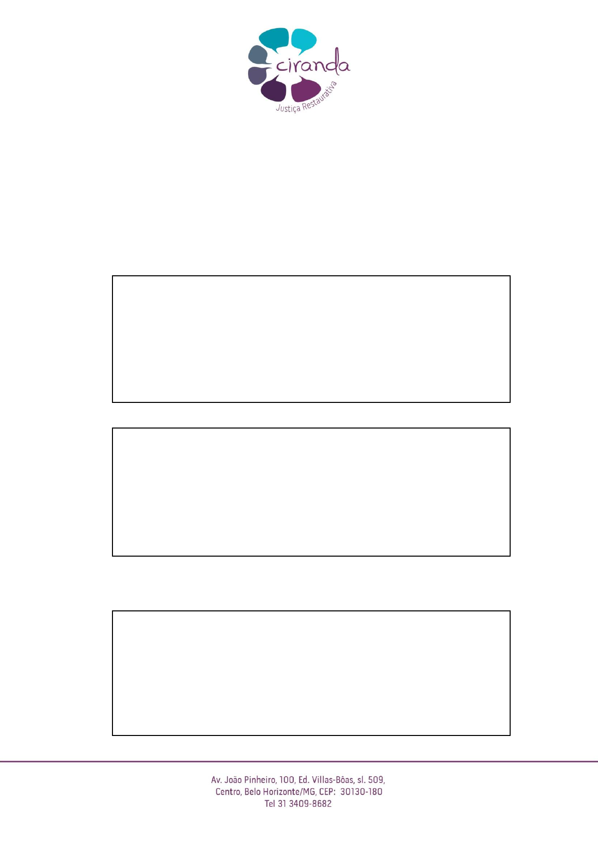 <p>Projeto Ciranda – UFMG</p><p>Exercício: Oficina de Comunicação não Violenta</p><p>Pense em alguém que, neste momento, está se comportando de forma que</p><p>não faz a vida ser maravilhosa para você e com quem você gostaria de atingir</p><p>o “dar natural” para alcançar as necessidades de ambos.</p><p>a) Escreva uma coisa que essa pessoa faz e de que você não goste:</p><p>b) Como você se sente quando a pessoa faz o que você descreveu?</p><p>c) Complete a frase:</p><p>Quando você faz o que descrevi (A), sinto-me como me expressei (B)</p><p>porque estou necessitando de....</p><p>d) Em relação ao que a outra pessoa fez (A) e aos meus sentimentos (B) e</p><p>necessidades (C) relacionados à ação, imagine que está falando</p><p>diretamente com a pessoa e expresse um pedido dessa forma:</p><p>Eu gostaria que você...</p><p>Escuta Empática:</p><p>Volte ao exercício anterior e traduza a fala/ação da outra pessoa de forma não</p><p>violenta na seguinte estrutura:</p><p>Você está sentindo .... por que está necessitando de...?</p><p>Outras atividades</p><p>Listas chacal</p><p>• Identifique os seus momentos de chacal mais freqüentes e aqueles de que tem</p><p>mais medo</p><p>• Faça uma lista de como fala para si mesmo quando é menos do que perfeito</p><p>• Quais são as mensagens chacal que te invadem quando está julgando os</p><p>outros?</p><p>• Liste as coisas que quando as pessoas dizem, no momento, você responde de</p><p>forma defensiva ou agressiva. Coloque nessa lista coisas que tem medo que as</p><p>pessoas possam pensar de ti ou que possam dizer.</p><p>Detox Chacal</p><p>• Pense em qual necessidade pode estar sendo o estímulo para cada julgamento</p><p>• Identifique concretamente o que a outra pessoa pode ter feito para fazê-lo agir</p><p>desse modo. Quais as suas necessidades não estão sendo atendidas nesse</p><p>caso?</p><p>• Imagine o que você fez para estimulá-lo, usando “orelhas girafa”, e identifique</p><p>quais necessidades não estão sendo atendidas.</p><p>ROSENBERG, Marshall. Comunicação não-violenta. São Paulo: Ágora: 2006.</p><p>COMPONENTES DA COMUNICAÇÃO NÃO VIOLENTA</p><p>1-Observação sem julgamento</p><p>2-Sentimento</p><p>3-Necessidades</p><p>4-Pedido</p><p>ALGUNS SENTIMENTOS BÁSICOS QUE TODOS TEMOS</p><p>Como nos sentimos quando nossas necessidades são atendidas</p><p>Agradecidos Confiantes Inspirados</p><p>Alegres Confortáveis Intrigados</p><p>Alertas Contentes Orgulhosos</p><p>Aliviados Esperançosos Otimistas</p><p>Cheios de energia Estimulados Realizados</p><p>Comovidos Impressionados Surpresos</p><p>Como nos sentimos quando nossas necessidades não são atendidas</p><p>Aborrecidos Desorientados Perturbados</p><p>Confusos Frustrados Preocupados</p><p>Constrangidos Impacientes Relutantes</p><p>Desapontados Intrigados Saturados</p><p>Desencorajados Irritados Tristes</p><p>Desesperançados Nervosos</p><p>ALGUMAS NECESSIDADES BÁSICAS QUE TODOS TEMOS</p><p>Autonomia</p><p>Escolher sonhos/metas/valores</p><p>Elaborar planos para realizar os sonhos, metas valores</p><p>Celebração</p><p>Celebrar a criação da vida e os sonhos realizados</p><p>Elaborar as perdas: entes queridos, sonhos etc (luto)</p><p>Comunhão espiritual</p><p>Beleza, harmonia, inspiração, ordem, paz</p><p>Diversão</p><p>Alegria, riso</p><p>Integridade</p><p>Amor próprio, autenticidade, criatividade, significado</p><p>Interdependência</p><p>Aceitação, amor, apoio, apreciação, compreensão, confiança, consideração,</p><p>empatia, encorajamento, honestidade (o tipo de honestidade que nos capacita</p><p>a aprender com nossas próprias limitações), proximidade, respeito, segurança</p><p>emocional</p><p>Necessidades físicas</p><p>Abrigo, água, alimento, ar, descanso, expressão sexual, movimento, exercício,</p><p>toque</p><p>DISTINGUINDO OBSERVAÇÕES DE AVALIAÇÕES</p><p>- Usar o verbo ser sem indicar que a pessoa que avalia aceita a</p><p>responsabilidade pela avaliação .</p><p>Ex: você é generoso demais.</p><p>Quando você dá todo o dinheiro do almoço, acho que está sendo generoso</p><p>demais.</p><p>- Usar verbos de conotação avaliatória.</p><p>Ex.: João vive deixando as coisas para depois.</p><p>João só estuda na véspera das provas.</p><p>- Implicar que as inferências de uma pessoa sobre os pensamentos,</p><p>sentimentos, intenções ou desejos de outra são as únicas possíveis.</p><p>Ex.: O trabalho dela não será aceito.</p><p>Acho que o trabalho dela não será aceito.</p><p>- Confundir previsão com certeza.</p><p>Ex.: Se você não fizer refeições balanceadas, sua saúde ficará prejudicada.</p><p>Se você não fizer refeições balanceadas, temo que sua saúde fique</p><p>prejudicada.</p><p>- Não ser específico a respeito das pessoas a quem se refere.</p><p>Ex.: Os estrangeiros não cuidam da própria casa.</p><p>Não vi aquela família estrangeira da outra rua limpar a calçada.</p><p>- Usar palavras que denotam habilidade sem indicar que se está fazendo uma</p><p>avaliação .</p><p>Ex.: Zequinha é péssimo jogador de futebol.</p><p>Em vinte partidas, Zequinha não marcou nenhum gol.</p><p>- Usar advérbios e adjetivos de maneira que não indiquem que se está fazendo</p><p>uma avaliação</p><p>Ex.: Carlos é feio.</p><p>A aparência de Carlos não me atrai.</p>