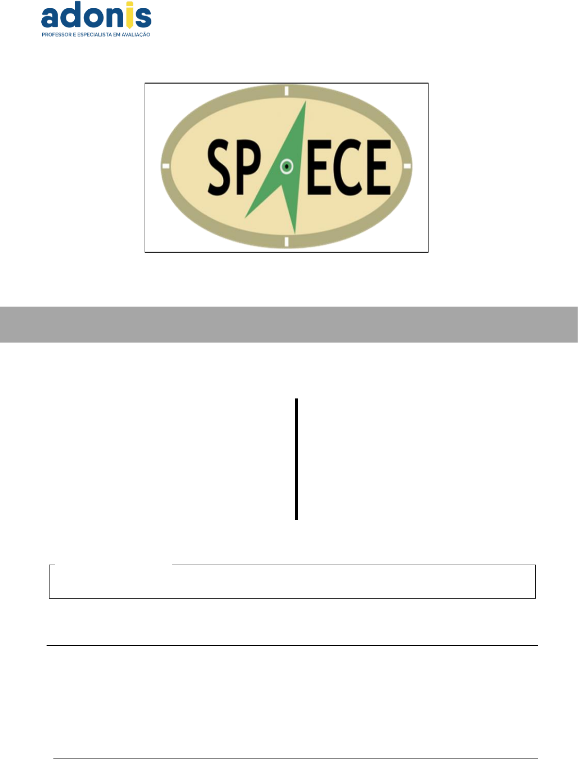 <p>O melhor material pedagógico. Acesse: adonisdutra.com.br</p><p>PREPARATÓRIO SPAECE</p><p>Caro(a) aluno(a),</p><p>Sua participação neste Simulado é muito importante para avançarmos na qualidade da educação da</p><p>nossa escola.</p><p>• Hoje, você vai fazer atividades de Língua Portuguesa.</p><p>• Responda com calma, procurando não deixar nenhuma questão em branco.</p><p>Contamos com o seu esforço e dedicação!</p><p>2º ano</p><p>Ensino Fundamental</p><p>Simulado 13</p><p>Língua Portuguesa</p><p>Nome do(a) aluno(a)</p><p>PREPARATÓRIO SPAECE</p><p>QUESTÃO 01 – D5</p><p>Veja a letra abaixo.</p><p>G</p><p>Marque um X no quadradinho onde aparece a letra que você viu escrita de outra forma.</p><p>A) d</p><p>B) g</p><p>C) p</p><p>D) q</p><p>QUESTÃO 02 – D8</p><p>(CAED) Faça um X no quadradinho onde os nomes das figuras começam com a mesma sílaba (pedaço).</p><p>A)</p><p>B)</p><p>C)</p><p>D)</p><p>QUESTÃO 03 – D3</p><p>Leia a frase abaixo.</p><p>PATO BRANCO NADA NO LAGO.</p><p>Faça um X no quadrinho onde mostra a palavra final dessa frase.</p><p>A) BRANCO</p><p>B) LAGO</p><p>C) NADA</p><p>D) PATO</p><p>PREPARATÓRIO SPAECE</p><p>QUESTÃO 04 – D11</p><p>(CAED) Veja a figura abaixo.</p><p>Qual o nome dessa figura?</p><p>A) MANGA.</p><p>B) MANGUEIRA.</p><p>C) NADADEIRA.</p><p>D) NARINA.</p><p>QUESTÃO 05 – D4</p><p>Marque a opção onde a frase está escrita de maneira correta.</p><p>A) A PROFESSORAAPAGOU O QUADRO.</p><p>B) APROFESSORA APAGOU O QUADRO.</p><p>C) A PROFESSORA APAGOUOQUADRO.</p><p>D) A PROFESSORA APAGOU O QUADRO.</p><p>QUESTÃO 06 – D5</p><p>(CAED) Veja as palavras abaixo.</p><p>Faça um X no quadradinho onde aparecem as palavras que você viu escritas de outra forma.</p><p>A) GILETE – MATO</p><p>B) GINO – MARA</p><p>C) GISELE – MARTA</p><p>D) GIZ – MAR</p><p>QUESTÃO 07 – D7</p><p>Ouça a palavra que eu vou dizer.</p><p>Quantas sílabas (pedaços) tem a palavra que você ouviu?</p><p>A) 1</p><p>B) 2</p><p>C) 3</p><p>D) 4</p><p>PREPARATÓRIO SPAECE</p><p>QUESTÃO 08 – D22</p><p>(CAED) Leia o texto abaixo.</p><p>Suco de limão com couve</p><p>Ingredientes:</p><p>4 folhas de couve, 2 litros de água,1 limão, 8 colheres de açúcar e Gelo a gosto.</p><p>Modo de preparar:</p><p>Primeiramente, lave a couve e o limão. Depois descasque o limão, coloque todos os ingredientes</p><p>no liquidificador, bata por 3 minutos, passe numa peneira fina e pode servir.</p><p>Disponível em: <http://receitas.maisvoce.globo.com>. Acesso em: 2 jul. 2016.</p><p>Esse texto serve para</p><p>A) ensinar como preparar um suco.</p><p>B) explicar como é produzido o limão.</p><p>C) informar preços de alimentos.</p><p>D) mostrar a importância das verduras.</p><p>QUESTÃO 09 – D16</p><p>Leia o texto abaixo.</p><p>Nesse texto, a menina</p><p>A) decide mudar de brincadeira.</p><p>B) fica presa no galho da árvore.</p><p>C) procura um jeito de subir na árvore.</p><p>D) resolve parar um pouco de pular.</p><p>QUESTÃO 10 – D13</p><p>CAED) Leia o texto abaixo.</p><p>Quando criança, Cândido Portinari gostava de jogar bola de meia, feita com tiras de papel de</p><p>embrulho amassado, amarrado com cordão e enfiado em uma meia velha.</p><p>TRZMIELINA, Nadine; BONITO, Angelo. Portinari. São Paulo: Callis, 1997. p. 7. Fragmento.</p><p>O que Cândido Portinari gostava de fazer quando criança?</p><p>A) Amarrar meias com cordão.</p><p>B) Embrulhar papel amassado.</p><p>C) Fazer tiras de papel.</p><p>D) Jogar bola de meia.</p><p>PREPARATÓRIO SPAECE</p><p>QUESTÃO 11 – D16</p><p>(CAED) Leia o texto abaixo.</p><p>ZIRALDO. Curta o menino Maluquinho: em histórias rapidinhas. São Paulo: Globo, 2006. p. 11</p><p>Nesse texto, o que é o bagageiro do menino?</p><p>A) Um carro.</p><p>B) Uma caixa.</p><p>C) Uma panela.</p><p>D) Uma sacola.</p><p>QUESTÃO 12 – D13</p><p>(CAED) Leia o texto abaixo.</p><p>Com seus poderes mágicos, a Bruxa da Casinha de Chocolate construiu uma casa de biscoitos e</p><p>tortas, com telhado de chocolate, janelas de açúcar e chaminés de caramelo.</p><p>TELLO, Antonio. O grande livro das bruxas. Belo Horizonte: Editora Leitura, 2009. p.18. Fragmento.</p><p>Do que era feita as chaminés da casa?</p><p>A) Açúcar.</p><p>B) Biscoito.</p><p>C) Caramelo.</p><p>D) Chocolate.</p><p>PREPARATÓRIO SPAECE</p><p>QUESTÃO 13 – D18</p><p>(CAED) Leia o texto abaixo.</p><p>Desenruga Tartaruga</p><p>Macacos me mordam — gritou Dona Tartaruga ao acordar naquela manhã de sol.</p><p>— O que houve com meu casco? Está mais sem graça do que nunca. Desse jeito nem poderei</p><p>ir à festa de aniversário de Dona Cutia. Já sei! Vou sair pela floresta à procura de um novo casco.</p><p>Disponível em: <http://blogdafolhinha.folha.blog.uol.com.br>. Acesso em: 5 jul. 2017.</p><p>Qual o assunto principal do texto?</p><p>A) A festa de aniversário.</p><p>B) A mordida dos macacos.</p><p>C) O casco da tartaruga.</p><p>D) Os animais na floresta.</p><p>QUESTÃO 14 – D13</p><p>(CAED) Leia o texto abaixo e responda às questões a seguir.</p><p>“Vai dar Samba” é uma história que se passa no clubinho mágico do samba composto por cinco</p><p>crianças. São elas: Catoco é o garoto que comanda o clube; Pandeco toca pandeiro de um jeito</p><p>bem atrapalhado; Nonoco é o destrambelhado que escreve poesias; Rosinha, a romântica que cria</p><p>um sapo na esperança de transformá-lo um dia num príncipe e Filô é a menina que faz mais</p><p>bagunças no grupo. Além das crianças, temos o Seu Viola, um velhinho professor de violão, que é</p><p>avô de Catoco e dono da loja mágica de instrumentos, onde o clubinho se reúne secretamente.</p><p>Disponível em: <http://blogdafolhinha.folha.blog.uol.com.br>. Acesso em: 5 jul. 2017.</p><p>De acordo com esse texto, qual criança quer transformar um sapo em príncipe?</p><p>A) Catoco.</p><p>B) Filô.</p><p>C) Pandeco.</p><p>D) Rosinha.</p><p>QUESTÃO 15 – D18</p><p>O texto que você leu fala principalmen