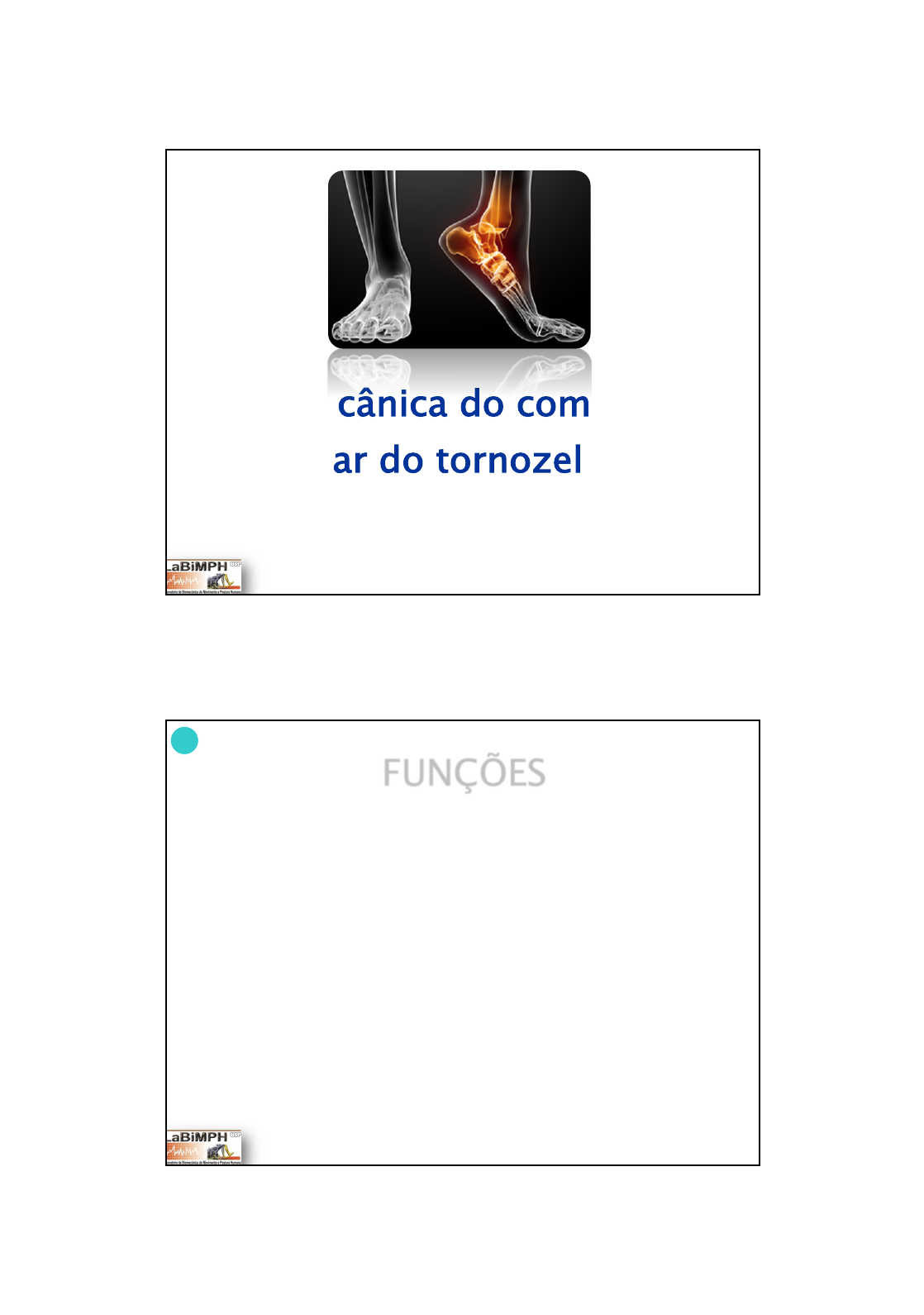 <p>1</p><p>Sacco, ICN</p><p>Biomecânica do complexo</p><p>articular do tornozelo & pé</p><p>3</p><p>Isabel C. N. Sacco (Ph.D.)</p><p>1</p><p>Sacco, ICN</p><p>FUNÇÕES</p><p>• Suporte do peso</p><p>• Controle e estabilização do MMII</p><p>• Ajuste à superfície de contato</p><p>• Manipulação de objetos e operação de máquinas</p><p>• Propulsão - locomoção</p><p>• Amortecimento de choques: músculos instrínsecos + coxins</p><p>adiposos (calcanhar, 2ª a 4ª CMT)</p><p>4</p><p>2</p><p>2</p><p>Sacco, ICN</p><p>TORNOZELO</p><p>Formado por tíbia, fíbula e tálus</p><p>Flexão</p><p>Extensão</p><p>6</p><p>3</p><p>Sacco, ICN</p><p>TORNOZELO</p><p>Formado por tíbia, fíbula e tálus</p><p>Tipo Gínglimo – 1 grau liberdade</p><p>Flexão: 20 a 30º</p><p>Extensão: 30 a 50º</p><p>Flexão</p><p>Extensão</p><p>6</p><p>4</p><p>3</p><p>Sacco, ICN</p><p>Flexão / Extensão</p><p>Não ocorre puramente no plano sagital</p><p>Obliqüidade do eixo do tornozelo</p><p>+</p><p>Forma do corpo do tálus</p><p>® movimento triplanar</p><p>5</p><p>Sacco, ICN</p><p>Eixo Tornozelo</p><p>• Rodado 20/30º plano transverso</p><p>• Inclinado para baixo 10º plano lateral</p><p>• Flexão: eversão e abdução do pé</p><p>• Extensão: inversão e adução do pé</p><p>6</p><p>4</p><p>Sacco, ICN</p><p>Pinça Bimaleolar</p><p>7</p><p>Sacco, ICN</p><p>Pinça Bimaleolar</p><p>Flexão:</p><p>•Parte anterior da tróclea entra na pinça</p><p>•Pinça abre, fíbula se eleva e roda medialmente</p><p>•Ligamentos da articulação tibiofibular distal ®</p><p>estabilizador e fulcro para o movimento</p><p>8</p><p>5</p><p>Sacco, ICN</p><p>Pinça Bimaleolar</p><p>Extensão:</p><p>•Parte anterior da tróclea sai da pinça</p><p>•Pinça fecha, fíbula se abaixa e roda lateralmente</p><p>9</p><p>Sacco, ICN</p><p>deslizamento e rolamento</p><p>Artrocinemática - Tálus</p><p>10</p><p>6</p><p>Sacco, ICN</p><p>Limitação de Flexão de</p><p>Tornozelo</p><p>Ativa e Passiva</p><p>Passiva</p><p>11</p><p>Sacco, ICN</p><p>Limitação de Extensão de</p><p>Tornozelo</p><p>•Contato ósseo –</p><p>talus/ calcâneo/ tíbia</p><p>•Cápsula anterior</p><p>•Lig. Talofibular</p><p>anterior</p><p>•Tensão mm.</p><p>Anteriores</p><p>12</p><p>7</p><p>Sacco, ICN</p><p>Estabilidade do Tornozelo</p><p>MEDIAL</p><p>vLigamento deltóide: tibiotalar anterior,</p><p>tibiocalcaneo (tibiotalar posterior),tibionavicular</p><p>LATERAL</p><p>vLigamento tibiofibular posterior</p><p>vLigamento talofibular posterior</p><p>vLigamento talofibular anterior</p><p>vLigamento calcaneofibular</p><p>13</p><p>Sacco, ICN</p><p>Estabilidade do Tornozelo -</p><p>Ligamentar</p><p>14</p><p>8</p><p>Sacco, ICN</p><p>15</p><p>Sacco, ICN</p><p>16</p><p>9</p><p>Sacco, ICN</p><p>17</p><p>Sacco, ICN</p><p>“TIFE”</p><p>18</p><p>10</p><p>Sacco, ICN</p><p>26 ossos</p><p>25 músculos</p><p>108 ligamentos</p><p>33 articulações</p><p>19</p><p>Sacco, ICN</p><p>Arcos Plantares</p><p>Arco transverso</p><p>Arco longitudinal</p><p>(parte lateral)</p><p>Arco longitudinal</p><p>(parte medial)</p><p>Art: intercuneiforme e</p><p>cuneocubóide</p><p>20</p><p>11</p><p>Sacco, ICN</p><p>Transverso (cças sem carga</p><p>retropé e medio-pé)</p><p>Arcos Plantares</p><p>Arco transverso</p><p>Arco longitudinal</p><p>(parte lateral)</p><p>Arco longitudinal</p><p>(parte medial)</p><p>Art: intercuneiforme e</p><p>cuneocubóide</p><p>21</p><p>Tipos arco longitudinal</p><p>22</p><p>12</p><p>Sacco, ICN</p><p>Avaliação Arco longitudinal:</p><p>impressão plantar</p><p>Pedígrafo</p><p>23</p><p>Sacco, ICN</p><p>DISTRIBUIÇÃO DE CARGA DO PÉ</p><p>NORMAL</p><p>PLANO</p><p>CAVO</p><p>24</p><p>13</p><p>Sacco, ICN</p><p>Cálculo índice Arco Plantar</p><p>A</p><p>B</p><p>C</p><p>A – Largura Antepé</p><p>B – Largura Médio-pé</p><p>C – Largura calcanhar</p><p>B/A – Chippaux-Smirak Index</p><p>B/C – Staheli Index</p><p>Índice de Cavanagh & Rodgers</p><p>25</p><p>Sacco, ICN</p><p>Arcos Plantares</p><p>Definição Arco: “estrutura curva que suporta o peso de um</p><p>material acima de um espaço vazio.”</p><p>Assim, um ARCO é uma estrutura que é capaz de suportar um</p><p>peso acima de um espaço sem suporte, a partir do apoio de</p><p>suas extremidades.</p><p>26</p><p>14</p><p>Sacco, ICN</p><p>27</p><p>Sacco, ICN</p><p>Pedra principal</p><p>“Grampos”</p><p>Viga mestra</p><p>Suspensões</p><p>28</p><p>15</p><p>Estabilizadores passivos</p><p>Fáscia plantar</p><p>Fáscia plantar</p><p>Ligm plantar curto</p><p>Ligm plantar longo</p><p>29</p><p>Sacco, ICN</p><p>Tibial posterior, fibular longo, flexor longo hálux,</p><p>intrínsecos do pé</p><p>Estabilizadores ativos</p><p>30</p><p>16</p><p>Sacco, ICN</p><p>Tibial posterior, fibular longo, flexor longo hálux,</p><p>intrínsecos do pé</p><p>Estabilizadores ativos</p><p>31</p><p>Sacco, ICN</p><p>ARCO LONGITUDINAL MEDIAL</p><p>Tibial posterior, fibular longo e</p><p>flexor longo hálux + aponeurose</p><p>32</p><p>17</p><p>Sacco, ICN</p><p>Suporte para arcos plantares</p><p>Calçado convencional Calçado mínimo</p><p>33</p><p>Sacco, ICN</p><p>34</p><p>18</p><p>Sacco, ICN</p><p>35</p><p>Sacco, ICN</p><p>Giacomozzi & Martelli, 2006</p><p>Rolamento Fisiológico do Pé</p><p>36</p><p>19</p><p>Sacco, ICN</p><p>Rolamento Fisiológico do Pé</p><p>37</p><p>Sacco, ICN</p><p>Divisão Sistemática do Pé</p><p>RETROPÉ (1 art):</p><p>calcâneo, tálus (subtalar)</p><p>coxim fibrogorduroso</p><p>MEDIOPÉ (8 art): navicular,</p><p>cubóide e 3 cuneiformes</p><p>ANTEPÉ: metatarsos (5 artic), falanges (9 artic)</p><p>coxim fibrogorduroso</p><p>38</p><p>20</p><p>Sacco, ICN</p><p>Divisão Sistemática do Pé</p><p>RETROPÉ (1 art):</p><p>calcâneo, tálus (subtalar)</p><p>coxim fibrogorduroso</p><p>MEDIOPÉ (8 art): navicular,</p><p>cubóide e 3 cuneiformes</p><p>ANTEPÉ: metatarsos (5 artic), falanges (9 artic)</p><p>coxim fibrogorduroso</p><p>39</p><p>Sacco, ICN</p><p>Coxim Adiposo</p><p>Septos</p><p>