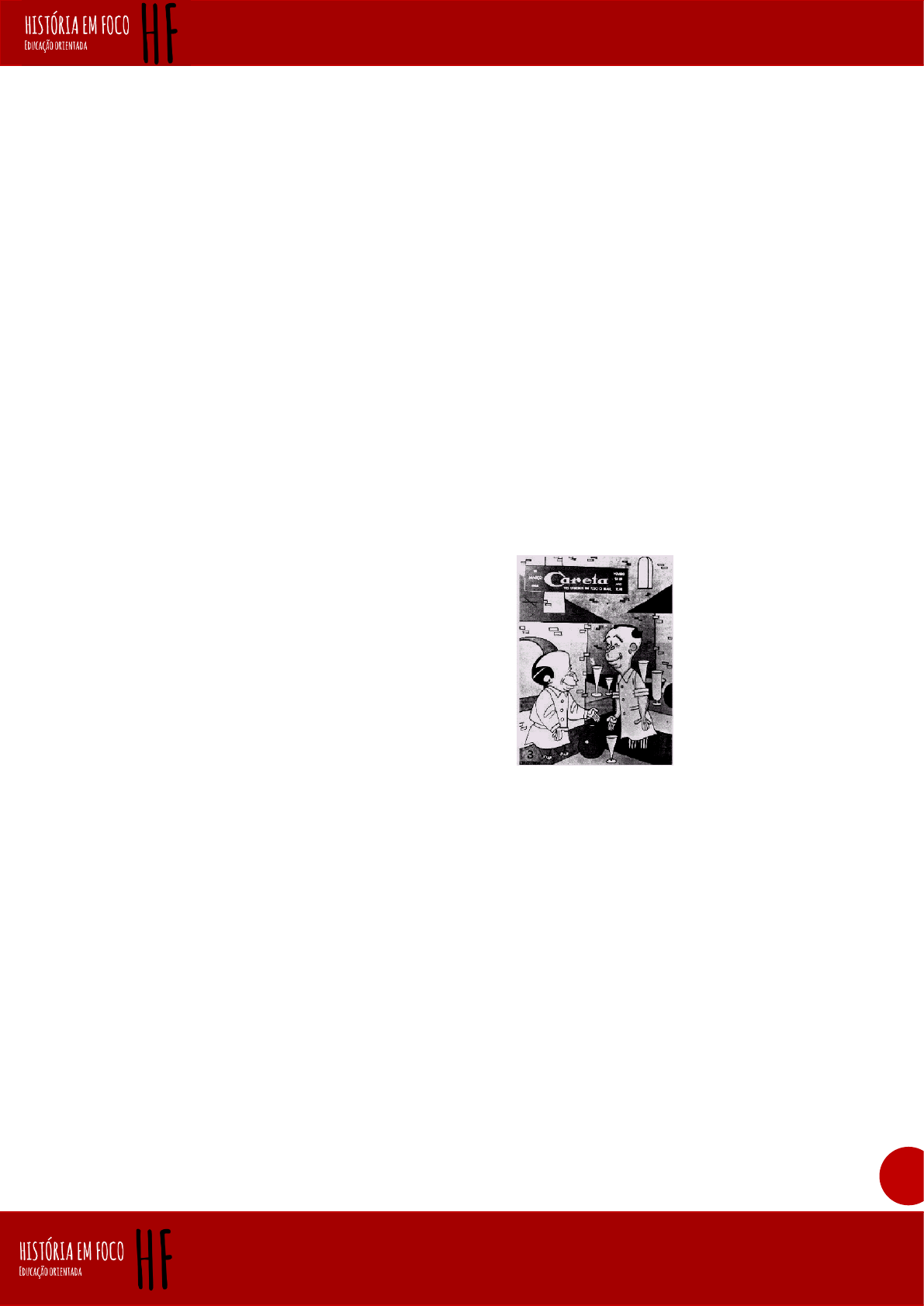<p>1</p><p>www.historiaemfoco.com.br</p><p>Governo JK</p><p>1</p><p>01 - (PUC RJ/1996)</p><p>“A trajetória da República brasileira, tão cheia de golpes</p><p>e governos de exceção, explica em boa parte o lugar de</p><p>destaque reservado ao presidente civil que conseguiu</p><p>ser eleito, tomar posse e empossar seu sucessor,</p><p>atravessando todo o seu mandato como um líder que</p><p>soube e pôde absorver e neutralizar conflitos da</p><p>legalidade institucional do país. Os “anos dourados” são,</p><p>portanto, basicamente, os anos do governo JK.”</p><p>(Ângela de Castro Gomes. O Brasil de JK)</p><p>Assinale a alternativa que corresponde ao sentido</p><p>expresso pelo texto acima sobre o governo de Juscelino</p><p>Kubitschek:</p><p>a) Não foram poucos os problemas que JK precisou</p><p>contornar com os militares. No início do governo</p><p>enfrentou uma insubordinação de oficiais da</p><p>Aeronáutica - a Revolta de Jacareacanga - e, em</p><p>movimento anterior, a sua posse esteve ameaçada,</p><p>sendo garantida por um contragolpe do Marechal</p><p>Lott.</p><p>b) A implementação de políticas públicas através de</p><p>Conselhos Técnicos específicos - os “Grupos</p><p>Executivos”- e o apoio obtido entre os grandes</p><p>partidos da época (particularmente PSD e PTB)</p><p>foram primordiais para a estabilidade do governo</p><p>JK.</p><p>c) A chave para o grande crescimento industrial</p><p>ocorrido na segunda metade dos anos 50 foi o</p><p>grande fluxo de capitais internacionais que</p><p>entravam no país, possibilitando a realização do</p><p>Plano de Metas, expresso no lema “cinquenta anos</p><p>em cinco”.</p><p>d) O momento importante da política externa</p><p>juscelinista foi o rompimento com o Fundo</p><p>Monetário Internacional, que preconizava uma</p><p>política de estabilização monetária.</p><p>e) No final do governo, JK tranfere a capital do país</p><p>para o Planalto Central. A criação de Brasília foi</p><p>considerada uma meta síntese do plano</p><p>desenvolvimentista para o país.</p><p>02 - (UEL PR/1999)</p><p>O programa desenvolvimentista conhecido como Plano</p><p>Metas ou Programa de Metas, elaborado no governo</p><p>presidente Juscelino Kubitschek, consistia em várias</p><p>metas agrupadas em cinco setores:</p><p>a) Energia, Comércio, Exportação, Habitação e</p><p>Alimentação</p><p>b) Transportes,. Energia, Indústria, Educação e</p><p>Alimentação</p><p>c) Agricultura, Exportação, Saúde, Transporte e</p><p>Emprego.</p><p>d) Estradas, Navegação, Indústria, Agricultura e</p><p>Emprego.</p><p>e) Indústria, Comércio, Saúde, Habitação e Educação.</p><p>03 - (UEL PR/2001)</p><p>O governo de Juscelino Kubitschek foi marcado por uma</p><p>imagem de otimismo e de crescimento econômico.</p><p>Sobre este período de mudanças, é correto afirmar:</p><p>a) O governo JK concedeu incentivos à indústria</p><p>nacional, que se tornou competitiva em relação aos</p><p>setores internacionais vinculados aos ramos</p><p>automobilístico, farmacêutico e de</p><p>eletrodomésticos.</p><p>b) O ambiente cultural foi afetado pela euforia</p><p>desenvolvimentista, possibilitando o surgimento de</p><p>vanguardas artísticas como a Bossa Nova e o</p><p>Cinema Novo.</p><p>c) O período foi marcado pela divergência política</p><p>entre o PSD e o PTB, o que contribuiu para o quadro</p><p>de instabilidade política e crescente disputa pelo</p><p>controle dos Ministérios.</p><p>d) A Política Industrial implementada por Juscelino</p><p>diminuiu a dependência brasileira do capital</p><p>internacional e consolidou as bases do</p><p>desenvolvimento auto-sustentável.</p><p>e) O êxito econômico dos anos JK foi assegurado pelo</p><p>controle da inflação e pela obtenção de superávit</p><p>orçamentário.</p><p>04 - (FURG RS/2000)</p><p>Considere a caricatura abaixo.</p><p>A pedra filosofal</p><p>Juscelino: – Preciso de divisas, ouro, “ seu” Alkimin,</p><p>para as realizações do meu governo...</p><p>O ministro: – Ouro, “ seu” Juscelino?! Eu sou</p><p>Alkimin, não sou “ alquimista” ...</p><p>(Caricatura de Théo na revista Careta, n. 2489, 10</p><p>de março de 1956).</p><p>A caricatura apresenta um diálogo entre o Presidente da</p><p>República Juscelino Kubitschek e seu Ministro da</p><p>Fazenda, e traduz a característica marcante desse</p><p>governo, ou seja, a política desenvolvimentista colocada</p><p>em prática por aquele presidente durante sua</p><p>administração entre 1956 e 1961.</p><p>Alguns dos elementos constitutivos que marcaram esse</p><p>período, indo ao encontro daquela política, foram:</p><p>I - a construção de Brasília, buscando simbolizar e</p><p>concretizar na nova capital os ideais do progresso,</p><p>da modernização e da integração nacional;</p><p>II - a criação da Usina Siderúrgica de Volta Redonda,</p><p>fundamental para o desenvolvimento da indústria</p><p>automobilística, um dos carros-chefes da política</p><p>desenvolvimentista juscelinista;</p><p>2</p><p>www.historiaemfoco.com.br</p><p>Governo JK</p><p>2</p><p>III - a organização da Operação Pan-Americana, que</p><p>propunha uma reorientação no processo de</p><p>integração dos países americanos;</p><p>IV - a implementação do Plano Nacional de</p><p>Desenvolvimento, que propunha a modernização</p><p>dos mais variados setores da economia nacional,</p><p>tendo em vista fazer o país avançar 50 anos em 5;</p><p>V - o incentivo à indústria de base;</p><p>VI - a montagem de um aparelho burocrático-</p><p>administrativo que promovesse a obtenção de</p><p>recursos para sustentar o progresso nacional.</p><p>Quais afirmativas são corretas?</p><p>a) Nenhuma.</p><p>b) Apenas I, II, III e IV.</p><p>c) Apenas I, III, V e VI.</p><p>d) Apenas II, IV, V e VI.</p><p>e) Todas.</p><p>05 - (PUC RS/2002)</p><p>Juscelino Kubitschek elegeu-se com uma proposta de</p><p>“industrialização acelerada”, a qual