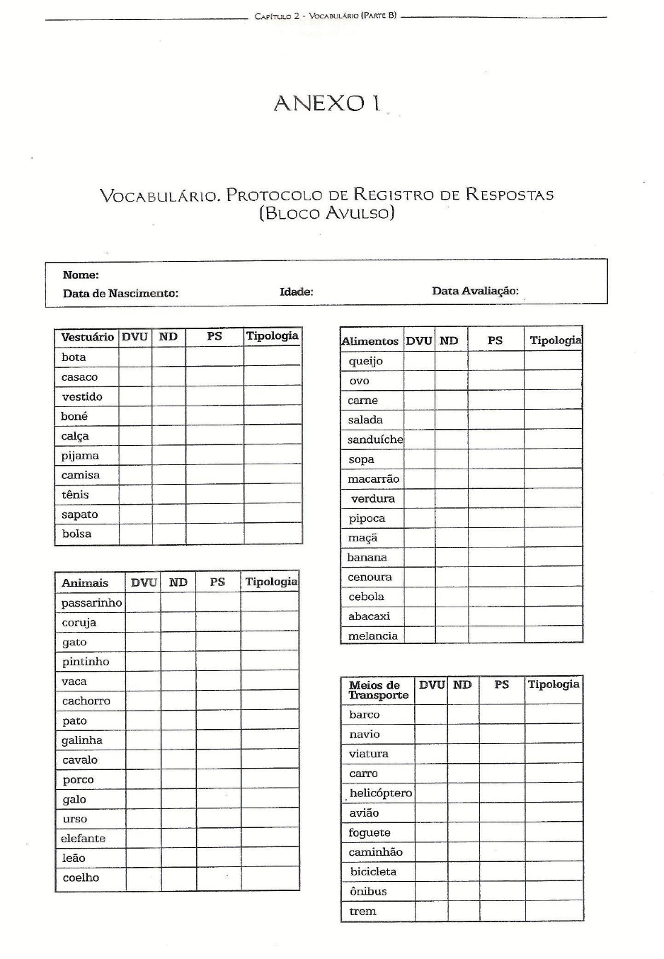 <p>ANEXO 1 – Teste ABFW – Vocabulário</p><p>ANEXO 2 – Teste ABFW – Pragmática</p>