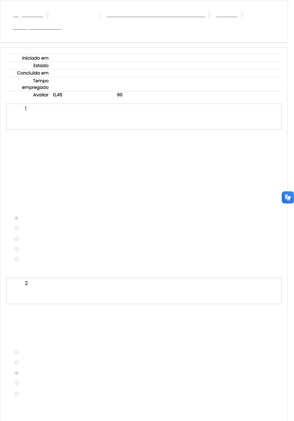<p>Página inicial Minhas disciplinas 2024/3 - CONTABILIDADE DE AGRONEGÓCIOS UNIDADE I</p><p>Avaliação - Unidade I</p><p>Iniciado em quinta, 29 ago 2024, 08:45</p><p>Estado Finalizada</p><p>Concluída em quinta, 29 ago 2024, 10:22</p><p>Tempo</p><p>empregado</p><p>1 hora 36 minutos</p><p>Avaliar 0,45 de um máximo de 0,50(90%)</p><p>Questão 1</p><p>Correto</p><p>Atingiu 0,05 de 0,05</p><p>Questão 2</p><p>Correto</p><p>Atingiu 0,05 de 0,05</p><p>Em relação à NBC TG 29, que trata de Ativos Biológicos e Produtos Agrícolas, analise as afirmativas.</p><p>I. ___________ é um animal e/ou uma planta vivos.</p><p>II. ___________ compreende o processo de crescimento, degeneração, produção e procriação, que causa</p><p>mudanças qualitativas e quantitativas no ativo biológico.</p><p>III. __________ é o produto colhido de ativo biológico da entidade.</p><p>IV. __________é a extração do produto de ativo biológico ou a cessação da vida desse ativo biológico.</p><p>Assinale a alternativa que completa, correta e sequencialmente, as afirmativas anteriores.</p><p>a. Ativo biológico / Transformação biológica / Produção agrícola / Colheita </p><p>b. Ativo biológico / Transformação biológica / Colheita / Produção agrícola</p><p>c. Produção agrícola / Transformação biológica / Ativo biológico / Colheita</p><p>d. Ativo biológico / Atividade agrícola / Colheita / Produção agrícola</p><p>e. Produção agrícola / Atividade agrícola / Colheita / Transformação biológica</p><p>No que se refere à NBC TG 29 (R2) – Ativo biológico e produto agrícola, item 43, “a entidade é encorajada a fornecer</p><p>uma descrição da quantidade de cada grupo de ativos biológicos, distinguindo entre consumíveis e de produção ou</p><p>entre maduros e imaturos, conforme apropriado”. Com base nessa informação e considerando a NBC TG 29 (R2) –</p><p>Ativo biológico e produto agrícola –, são exemplos de ativos biológicos consumíveis, EXCETO:</p><p>a. Plantas portadoras mantidas para produzirem frutos por mais de um período.</p><p>b. lavoura de soja transgênica.</p><p>c. Plantações de milho e trigo. </p><p>d. Plantação de hortaliças.</p><p>e. Árvores para a produção de madeira.</p><p>29/08/2024, 10:21 Avaliação - Unidade I: Revisão da tentativa</p><p>https://ambienteonline.uninga.br/mod/quiz/review.php?attempt=3113937&cmid=801561 1/6</p><p>https://ambienteonline.uninga.br/</p><p>https://ambienteonline.uninga.br/course/view.php?id=28562</p><p>https://ambienteonline.uninga.br/course/view.php?id=28562§ion=2</p><p>https://ambienteonline.uninga.br/mod/quiz/view.php?id=801561</p><p>Questão 3</p><p>Correto</p><p>Atingiu 0,05 de 0,05</p><p>O exercício social comumente na maioria das empresas comerciais, industriais e de serviços, encerra-se em 31 de</p><p>dezembro, coincidindo com o encerramento do ano civil. Contudo, na atividade agrícola os exercícios sociais</p><p>possuem espaço de tempo variado, pois, na maioria das atividades, esse ciclo tem duração maior que um ano</p><p>(CREPALDI, 2019). Dessa forma, qual fator é determinante para determinar o término do exercício social na atividade</p><p>agrícola?</p><p>a. No momento da apuração de resultado.</p><p>b. No momento em que os impostos são pagos.</p><p>c. durante o crescimento das plantas e engorda dos animais.</p><p>d. No término da colheita e quase sempre da comercialização. </p><p>e. No final da atividade operacional.</p><p>29/08/2024, 10:21 Avaliação - Unidade I: Revisão da tentativa</p><p>https://ambienteonline.uninga.br/mod/quiz/review.php?attempt=3113937&cmid=801561 2/6</p><p>Questão 4</p><p>Correto</p><p>Atingiu 0,05 de 0,05</p><p>Da associação do capital fundiário com o capital de exercício na atividade agrícola surgem duas personalidades</p><p>distintas: o proprietário da terra, que participa no negócio com o capital fundiário; e o empresário, que é o produtor</p><p>que injeta o capital de exercício e explora a atividade. Nesse caso, ele pode ser o proprietário da terra, ou não, a</p><p>partir das combinações dessas duas personalidades por meio de um acordo do dono da terra e do empresário</p><p>(aquele que injeta o capital). Atribua o número do respectivo tipo de cada relação a seguir com a sua descrição na</p><p>tabela.</p><p>1. Empresário agrícola ou pecuário</p><p>2. Parceria</p><p>3. Arrendamento</p><p>4. Comodato</p><p>5. Condomínio</p><p>tipo Descrição da relação</p><p>É quando o proprietário aluga o capital fundiário (terra, maquinários e outros) e recebe um aluguel definido em</p><p>contrato, o valor e prazo.</p><p>O sentido é propriedade em comum, em que são compartilhados entre as partes os lucros ou prejuízos</p><p>advindos da exploração da atividade. Geralmente ocorre quando a propriedade é de familiares.</p><p>Nesse caso tem-se os dois capitais, o fundiário e de exercício, e se faz a gestão da propriedade.</p><p>Nesse caso o produtor tem o capital fundiário e de exercício, porém, não executa o serviço necessário para o</p><p>desenvolvimento da atividade. Associa-se um terceiro que executa os serviços necessários e recebe a</p><p>remuneração pelo serviço prestado, que pode ser à meia (50% para cada parte) ou outra forma que as partes</p><p>definirem em contrato.</p><p>Pouco utilizado, mas se trata de empréstimo gratuito, em que uma das partes cede a um terceiro (pessoa física</p><p>ou jurídica) com a finalidade de explorar por tempo determinado e nas condições preestabelecidas em</p><p>contrato de comodato. Nessa modalidade não tem pagamento.</p><p>Assinale a alternativa que contém o preenchimento correto da tabela:</p><p>a. 3; 5; 1; 2; 4. </p><p>b. 1; 2; 3; 5; 4.</p><p>c. 5; 1; 2; 3; 4.</p><p>d. 2; 4; 5; 1; 3.</p><p>e. 4; 5; 1; 2; 3.</p><p>29/08/2024, 10:21 Avaliação - Unidade I: Revisão da tentativa</p><p>https://ambienteonline.uninga.br/mod/quiz/review.php?attempt=3113937&cmid=801561 3/6</