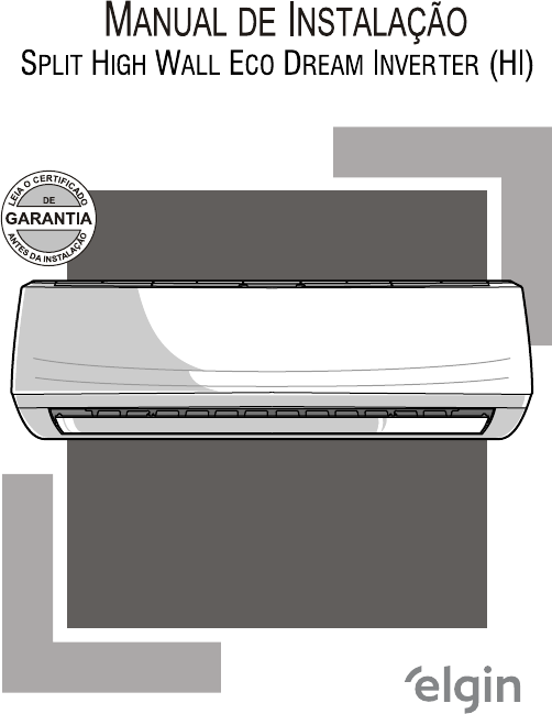 <p>MANUAL DE INSTALAÇÃO SPLIT HIGH WALL Eco DREAM INVERTER (HI) DE GARANTIA DA elgin</p><p>INTRODUÇÃO Este manual destina-se à rede autorizada/instaladores credenciados Elgin com o propósito de fornecer os elementos básicos para a instalação e manutenção do produto. Ressaltamos que somente empresas qualificadas e treinadas pela Elgin poderão instalar o equipamento e prestar qualquer tipo de manutenção ao mesmo. Caso persistam dúvidas sobre o produto, sua instalação ou manutenção, não hesite em contactar-nos. ÍNDICE 1. PEÇAS E ACESSÓRIOS 3 2. INFORMAÇÕES SOBRE IMPACTO AMBIENTAL 3 3. NOTAS ANTES DA INSTALAÇÃO 3 4. PRECAUÇÕES DE SEGURANÇA 5 5. PREENCHIMENTO DO CONTROLE TÉCNICO DE INSTALAÇÃO (CTI) 7 6. COMO RETIRAR SUPORTE DE FIXAÇÃO DA UNIDADE INTERNA 10 7. COMO ESCOLHER o LOCAL DE INSTALAÇÃO 10 8. COMO FIXAR SUPORTE DA UNIDADE INTERNA 13 9. INSTALAÇÃO DO TUBO DE DRENAGEM DA UNIDADE INTERNA 14 10. COMO INSTALAR E CONECTAR A TUBULAÇÃO NAS UNIDADES 15 11. COMO FIXAR A UNIDADE EXTERNA 17 12. COMO ALONGAR A TUBULAÇÃO 18 13. INSTALAÇÃO ELÉTRICA 19 14. COMO VERIFICAR A CONEXÃO DO ATERRAMENTO 20 15. COMO EXECUTAR TESTE DE VAZAMENTO NO SISTEMA 21 16. QUANDO E COMO ADICIONAR ÓLEO NO COMPRESSOR/SISTEMA 22 17. QUANDO E COMO COMPLETAR A CARGA DE FLUÍDO REFRIGERANTE 22 18. EVACUAÇÃO E DESIDRATAÇÃO DO SISTEMA 23 19. TESTE DE FUNCIONAMENTO 23 20. CORRENTE ELÉTRICA 23 21. TEMPERATURA DE INSUFLAMENTO E DE RETORNO 24 22. FINALIZAÇÃO DA INSTALAÇÃO 24 23. CONDIÇÕES DE APLICAÇÃO/OPERAÇÃO 24 24. TABELA DE PRESSÃO X TEMPERATURA (R-32) 25 25. MANUTENÇÃO PREVENTIVA 26 26. DEFEITOS, CAUSAS E SOLUÇÕES 27 27. AUTO DIAGNÓSTICO 29 28. TABELA DE CARACTERÍSTICAS TÉCNICAS 30 29. CERTIFICADO DE GARANTIA 31 30. ANOTAÇÕES 35 2</p><p>1. PEÇAS E ACESSÓRIOS PEÇAS E ACESSÓRIOS INCLUÍDOS NA EMBALAGEM DA UNIDADE INTERNA (As quantidades estão indicadas entre parênteses) Manual de operação Pilhas para Controle remoto (1) Placa de instalação Tampa Frontal Filtro de (2) (1) controle remoto (2) (1) (2) PEÇAS E ACESSÓRIOS INCLUÍDOS NA EMBALAGEM DA UNIDADE EXTERNA (As quantidade estão indicadas entre parênteses) Manual de instalação Conexão do Dreno (1) Porca (4) (1) 2. INFORMAÇÕES SOBRE IMPACTO AMBIENTAL EMBALAGEM A embalagem deste produto é composta de materiais recicláveis, tais como papelão, E.P.S. (Poliestireno expandido) e sacos plásticos. Ao descartá-los encaminhe para a coleta seletiva a fim de que sejam reaproveitados. PRODUTO Este produto é composto por materiais recicláveis e/ou descarte inapropriado destes materiais causará danos ao meio ambiente; portanto é imprescindível ao descartá-lo que procure empresas especializadas em desmontá-lo de acordo com a legislação vigente. 3. NOTAS ANTES DA INSTALAÇÃO Este aparelho contém fluido refrigerante inflamável R-32. Leia todas as informações deste manual antes de operar a unidade. Siga as instruções deste manual. 3</p><p>NOTAS ANTES DA INSTALAÇÃO COMPATIBILIDADE DA CAPACIDADE TÉRMICA DO PRODUTO COM o AMBIENTE Antes de iniciar o trabalho de instalação do condicionador de ar, certifique-se de que o aparelho seja compatível com as necessidades do ambiente. Preferencialmente. faça um cálculo de carga térmica conforme recomenda a norma ABNT NBR5858. Caso seja detectada alguma irregularidade relacionada à capacidade térmica do aparelho, solicite ao proprietário que tome as providências necessárias para a substituição do produto. Os pontos de alimentação elétrica e aterramento devem ser dimensionados de acordo com a norma ABNT NBR5410 e instalados por um profissional qualificado. ATENÇÃO Só instale o produto depois de atendidos os requisitos acima. PRECAUÇÕES DE SEGURANÇA Os condicionadores de an Elgin foram desenvolvidos de maneira que possam ser instalados e utilizados em segurança, desde que sejam aplicadas as recomendações contidas nos manuais de operação e instalação que acompanham o produto. Adicionalmente, os seguintes cuidados devem ser tomados: Utilize equipamentos de proteção individual (EPI); Mantenha sempre um extintor de incêndio em perfeito estado próximo ao local de trabalho; Não instale o condicionador de an em locais de atmosfera combustível/explosiva, oleosa, an marítimo, gás sulfuroso, ou em condições ambientais especiais (correntes de ar, fontes de calor, estufas, fornos, etc); Escolha uma superfície que consiga suportar o peso das unidades. Considere que durante uma eventual manutenção, a superfície poderá ter que suportar o triplo do peso do produto; Enquanto estiver trabalhando com o condicionador de (instalação/manutenção), certifique-se de que a alimentação elétrica esteja desligada. A área de instalação, uso, reparo e armazenamento deste condicionador de ar deve ser maior que A manutenção ou reparo de condicionadores de usando fluido refrigerante R-32 dever ser realizada após a verificação de segurança para minimizar o risco de incidentes. Armazene o aparelho em um ambiente livre de fontes contínuas de ignição, como chamas abertas, aparelhos a gás ou aquecedores elétricos em funcionamento. Antes de realizar a manutenção ou reparo em aparelhos de ar-condicionado que utilizam o refrigerante R-32, é essencial realizar uma verificação de segurança adequada, a fim de minimizar o risco de possíveis RECEBIMENTO E INSPEÇÃO DAS UNIDADES Não incline a unidade externa mais que 30° durante o transporte. Retire as unidades da embalagem o mais próximo possível do local da instalação. Certifique-se de que todos os acessórios acompanham as unidades. CUIDADOS COM A GARANTIA Apreservação da garantia está condicionada à qualidade da instalação e manutenção do equipamento. Antes da execução destes serviços, leia atentamente o Certificado de Garantia no manual do proprietário, do qual destacamos os dois itens que se seguem: Para que esta garantia seja válida na sua totalidade,