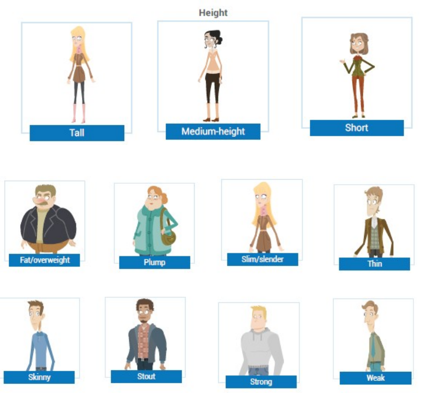 <p>RESUMO</p><p>APARÊNCIA FISICA.</p><p>Quando Victor descreveu a aparência física de sua irmã para Rosa e Billy, ele utilizou dois verbos diferentes: o verbo To be e o verbo To have, já que precisava dizer como ela é fisicamente e que outras características corporais ela tem. Retome algumas das falas de Victor:</p><p>Victor: She’s slender. I guess… she has long wavy hair. She has beautiful green eyes.</p><p>Victor: Her hair is a little red.</p><p>Victor: She’s medium-height.</p><p>Victor utilizou alguns adjetivos para descrever sua irmã Rebeca. Eles são relacionados à tipo e cor de cabelo, olhos e altura. Acompanhe a seguir outros adjetivos:</p><p>Height (Altura):</p><p>Body Type (Tipo Físico):</p><p>Hair Length (Comprimento do cabelo):</p><p>Hair Shape (Tipo de Cabelo):</p><p>Hair Color (Cor do Cabelo):</p><p>Diz-se que o cabelo é red, mas se queremos dizer que uma pessoa é ruiva, a palavra usada é redhead: He’s a redhead. Já para alguém que tem cabelos escuros, diz-se dark ou black. Mas, se queremos dizer que a pessoa é morena, usa-se brunette: She’s a brunette. Brunette é mais comumente associado a mulheres. Já blond designa a cor de um cabelo. Mas, se queremos dizer que uma pessoa é loiro ou loira, usamos, respectivamente, blond e blonde.</p><p>Eyes (Olhos):</p><p>Other Features (Outras características):</p><p>Age (Idade)</p><p>A partir deste vocabulário você pode realizar a Activity Who is this person?.</p><p>Utilizando o verbo To be e o To have associado a este vocabulário é possível que você já consiga descrever pessoas. No entanto, é necessário estudar a ordem dos adjetivos para que a comunicação seja feita de maneira adequada.</p><p>image7.png</p><p>image8.png</p><p>image1.png</p><p>image2.png</p><p>image3.png</p><p>image4.png</p><p>image5.png</p><p>image6.png</p>