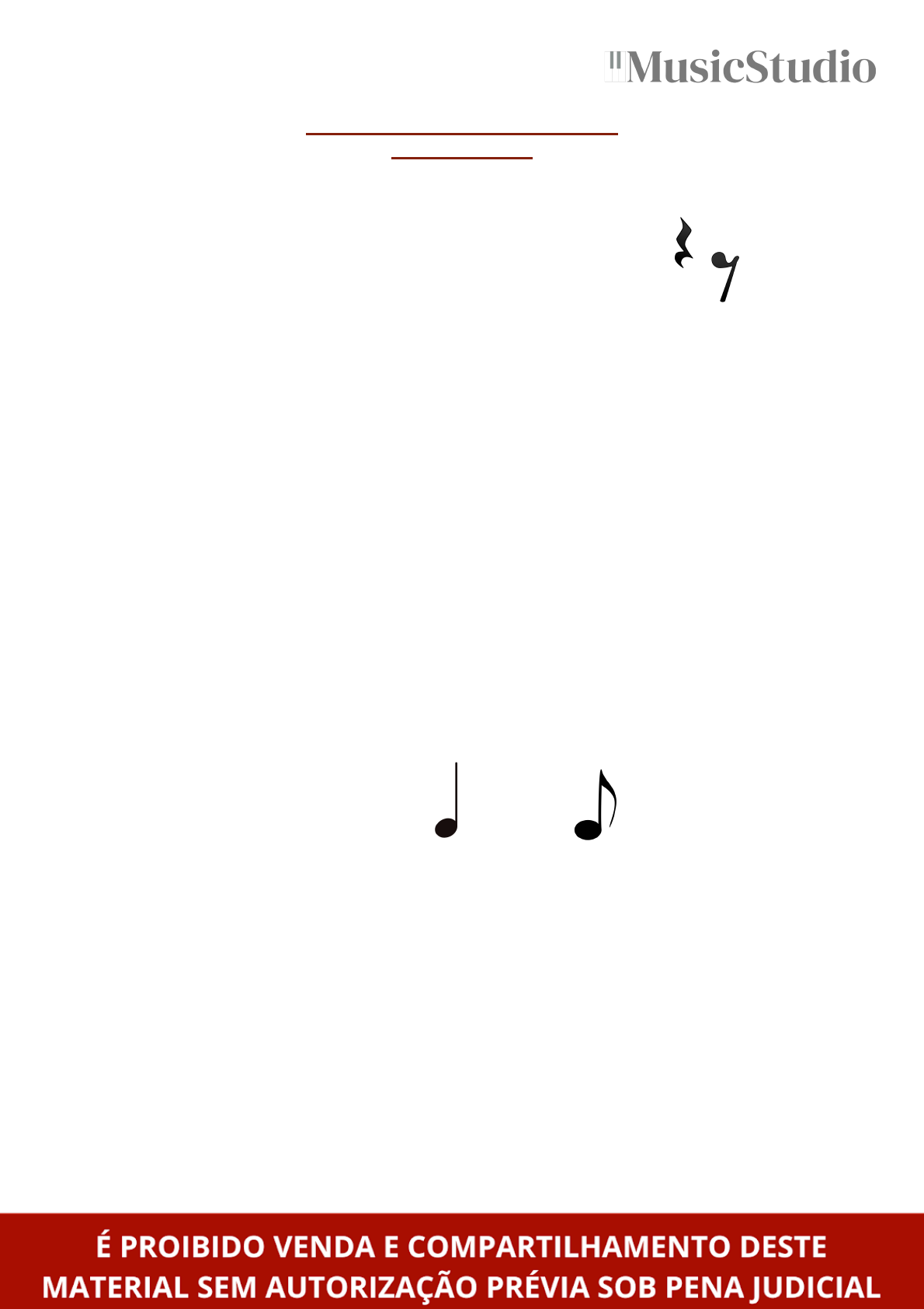 <p>Acesse mais materiais em musicstudioonline.com.br</p><p>Avaliação de Teoria Musical</p><p>MSA - Fase 2</p><p>1- Assinale o conceito sobre as pausas musicais</p><p>( ) São figuras que representam a quantidade de movimentos</p><p>( ) São sinais para representar a altura do som</p><p>( ) É a figura que representa o silêncio</p><p>( ) São elementos para representar a melodia da música</p><p>2- Complete:</p><p>A haste colocada para cima precisa ser _____ da cabeça da nota, e para</p><p>baixo precisa ser à _____ da cabeça da nota.</p><p>( ) Direita; esquerda</p><p>( ) Esquerda; direita</p><p>( ) Centro; esquerda</p><p>( ) Não há uma regra</p><p>3- Para realizarmos os exercícios rítmicos, podemos assinalar a</p><p>pulsação:</p><p>( ) Batendo a mão sobre uma superfície</p><p>( ) Marcando com palmas</p><p>( ) Utilizando um lápis, objeto rígido ou outro equipamento</p><p>( ) Todas as alternativas estão corretas</p><p>4- Complete:</p><p>É necessário somar __ semínimas para se obter uma colcheia.</p><p>( ) 4</p><p>( ) 2</p><p>( ) 1</p><p>( ) Nenhuma</p><p>5- Qual definição abaixo se refere à “pulsação”?</p><p>( ) Distribuição dos sons num espaço de tempo</p><p>( ) Pulso regular que contém batidas constantes, com a mesma duração</p><p>( ) Divisão de um trecho musical em séries regulares de tempos</p><p>( ) Indica o final da peça musical</p><p>6- É correto afirmar que o nosso hinário possui semicolcheias e fusas?</p><p>( ) O nosso hinário possui semibreve até semicolcheia</p><p>( ) Sim, é correto</p><p>( ) O nosso hinário possui mínima até colcheia</p><p>( ) Todas as alternativas estão corretas</p><p>Acesse mais materiais em musicstudioonline.com.br</p><p>7- Qual figura abaixo possui a cabeça preenchida (pintada), haste e 1</p><p>colchete?</p><p>( ) Semínima</p><p>( ) Semibreve</p><p>( ) Mínima</p><p>( ) Colcheia</p><p>8- Vão quantas semicolcheias para se obter uma mínima?</p><p>( ) 8</p><p>( ) 16</p><p>( ) 34</p><p>( ) Nenhuma das alternativas acima</p><p>9- Responda:</p><p>Uma semínima é igual a soma de 4 ________.</p><p>( ) Semibreves</p><p>( ) Colcheias</p><p>( ) Semicolcheias</p><p>( ) Fusas</p><p>10- A figura da imagem é a _____ e seu número é _____.</p><p>( ) Semifusa - 32</p><p>( ) Fusa - 64</p><p>( ) Semifusa - 64</p><p>( ) Fusa - 32</p><p>11- O que é compasso?</p><p>( ) É o início ou o fim de um compasso com linhas verticais</p><p>( ) É a divisão de um trecho musical em séries regulares de tempos</p><p>( ) É a quantidade de tempos dentro do compasso e a figura de 1 tempo</p><p>( ) É a distribuição de sons num espaço de tempo</p><p>12- Qual das alternativas abaixo é falsa?</p><p>( ) A barra dupla separa os compassos da música</p><p>( ) A barra de repetição indica a repetição de um trecho</p><p>( ) A barra simples indica o início ou fim de um compasso</p><p>( ) A barra final indica o final da peça musical</p><p>Acesse mais materiais em musicstudioonline.com.br</p><p>13- Complete:</p><p>A fórmula de compasso _ /_ determina que o compasso terá __ tempos e</p><p>a _______ representa a U.T.</p><p>( ) 4/4; 4; mínima</p><p>( ) 4/2; 2; semínima</p><p>( ) 4/4; 4; semínima</p><p>( ) 2/4; 2; mínima</p><p>14- Complete a frase respectivamente:</p><p>O ____ é a distribuição de sons num espaço de tempo e a _____ é a</p><p>batida que marca o início e o fim desse espaço de tempo.</p><p>( ) Colchete; leitura rítmica</p><p>( ) Movimento de condução; pulsação</p><p>( ) Compasso; leitura métrica</p><p>( ) Ritmo; pulsação</p><p>15- Assinale a única alternativa verdadeira abaixo.</p><p>( ) A preparação do movimento deve ser feita com a mão abaixo da altura do peito</p><p>( ) Ao subir a mão no movimento não deve passar da linha dos olhos</p><p>( ) A pulsação sempre se inicia na preparação do movimento</p><p>( ) A sílaba “Tá” pode ser pronunciada como “TÁáÁá”</p><p>Nota final: ____ ( ) Aprovado ( ) Reprovado</p>