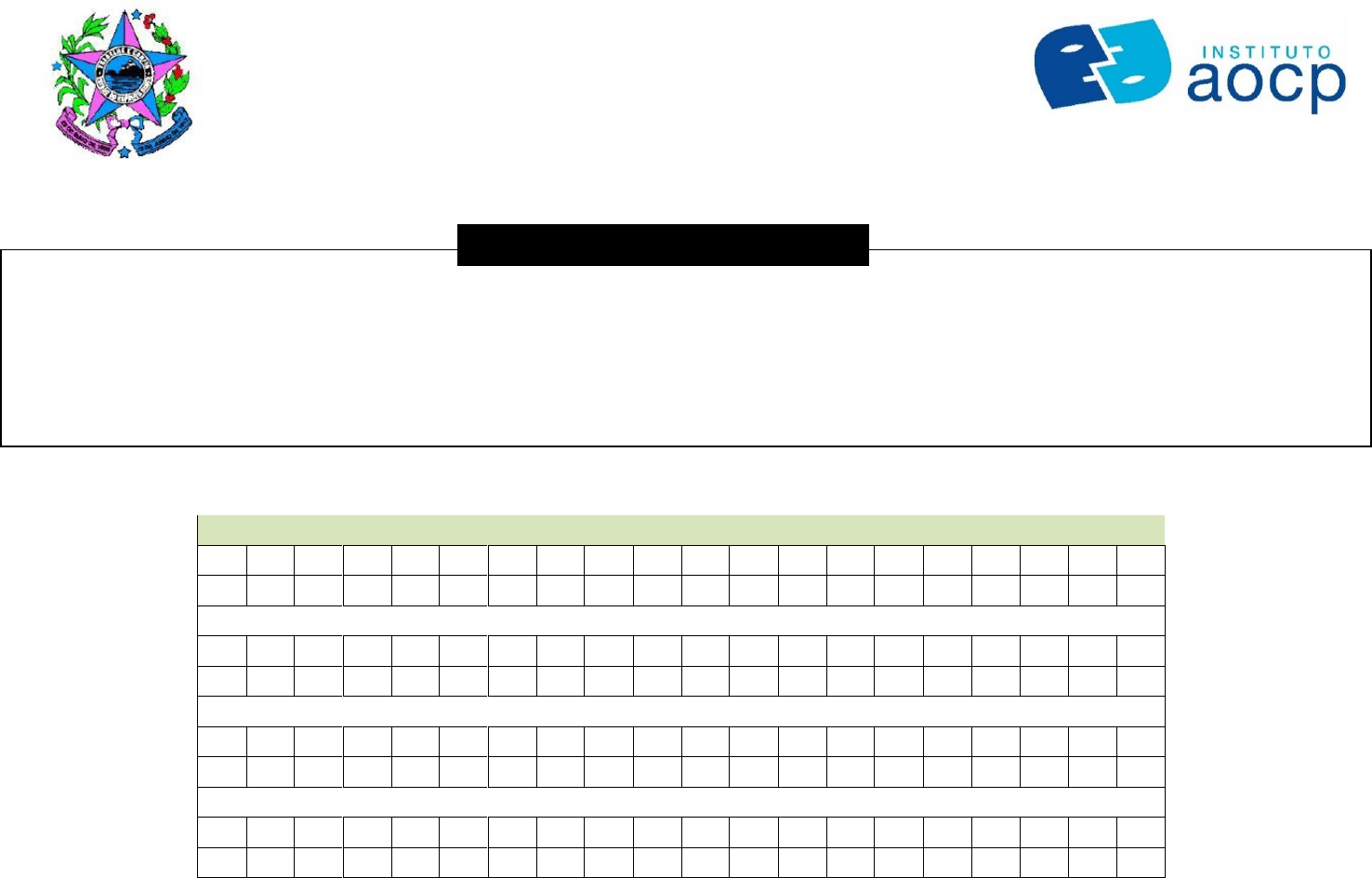 <p>OFICIAL COMBATENTE BOMBEIRO MILITAR (QOCBM) - TIPO 1</p><p>01 02 03 04 05 06 07 08 09 10 11 12 13 14 15 16 17 18 19 20</p><p>D B C A C B E C E A A B C A B X E D A E</p><p>21 22 23 24 25 26 27 28 29 30 31 32 33 34 35 36 37 38 39 40</p><p>C D D B A C B C E A D A E A E D E C D B</p><p>41 42 43 44 45 46 47 48 49 50 51 52 53 54 55 56 57 58 59 60</p><p>C E X A B D B D A X C B E E D A C A D B</p><p>61 62 63 64 65 66 67 68 69 70 71 72 73 74 75 76 77 78 79 80</p><p>E B A D D C C A E E C D E B C A B A B E</p><p>Gabarito Pós-Recursos</p><p>GOVERNO DO ESTADO DO ESPÍRITO SANTO</p><p>SECRETARIA DE ESTADO DA SEGURANÇA PÚBLICA E DEFESA SOCIAL</p><p>POLÍCIA MILITAR E CORPO DE BOMBEIROS MILITAR</p><p>www.pciconcursos.com.br</p><p>OFICIAL COMBATENTE BOMBEIRO MILITAR (QOCBM) - TIPO 2</p><p>01 02 03 04 05 06 07 08 09 10 11 12 13 14 15 16 17 18 19 20</p><p>B C A C B E C E A A B C A B D E D A E C</p><p>21 22 23 24 25 26 27 28 29 30 31 32 33 34 35 36 37 38 39 40</p><p>D D B A C B C E A X A E A E D E C D B D</p><p>41 42 43 44 45 46 47 48 49 50 51 52 53 54 55 56 57 58 59 60</p><p>E X A B D B D A X C B E E D A C A D B E</p><p>61 62 63 64 65 66 67 68 69 70 71 72 73 74 75 76 77 78 79 80</p><p>B A D D C C A E E C D E B C A B A B E C</p><p>OFICIAL COMBATENTE BOMBEIRO MILITAR (QOCBM) - TIPO 3</p><p>01 02 03 04 05 06 07 08 09 10 11 12 13 14 15 16 17 18 19 20</p><p>C A C B E C E A A B C A B D B D A E C D</p><p>21 22 23 24 25 26 27 28 29 30 31 32 33 34 35 36 37 38 39 40</p><p>D B A C B C E A X E E A E D E C D B D A</p><p>41 42 43 44 45 46 47 48 49 50 51 52 53 54 55 56 57 58 59 60</p><p>X A B D B D A X C B E E D A C A D B E B</p><p>61 62 63 64 65 66 67 68 69 70 71 72 73 74 75 76 77 78 79 80</p><p>A D D C C A E E C D E B C A B A B E C E</p><p>www.pciconcursos.com.br</p><p>OFICIAL COMBATENTE BOMBEIRO MILITAR (QOCBM) - TIPO 4</p><p>01 02 03 04 05 06 07 08 09 10 11 12 13 14 15 16 17 18 19 20</p><p>A C B E C E A A B C A B D B C A E C D D</p><p>21 22 23 24 25 26 27 28 29 30 31 32 33 34 35 36 37 38 39 40</p><p>B A C B C E A X E D A E D E C D B D A E</p><p>41 42 43 44 45 46 47 48 49 50 51 52 53 54 55 56 57 58 59 60</p><p>A B D B D A X C B E E D A C A D B E B A</p><p>61 62 63 64 65 66 67 68 69 70 71 72 73 74 75 76 77 78 79 80</p><p>D D C C A E E C D E B C A B A B E C E X</p><p>X = QUESTÃO ANULADA.</p><p>www.pciconcursos.com.br</p><p>OFICIAL COMBATENTE (QOC) - TIPO 1</p><p>01 02 03 04 05 06 07 08 09 10 11 12 13 14 15 16 17 18 19 20</p><p>D B C A C B E C E A A B C A B X E D A E</p><p>21 22 23 24 25 26 27 28 29 30 31 32 33 34 35 36 37 38 39 40</p><p>C D D B A C B C E A D A E A E D E C D B</p><p>41 42 43 44 45 46 47 48 49 50 51 52 53 54 55 56 57 58 59 60</p><p>C E X A B D B D A X C B E E D A C A D B</p><p>61 62 63 64 65 66 67 68 69 70 71 72 73 74 75 76 77 78 79 80</p><p>E B A D D C C A E E C D E B C A B A B E</p><p>Gabarito Pós-Recursos</p><p>GOVERNO DO ESTADO DO ESPÍRITO SANTO</p><p>SECRETARIA DE ESTADO DA SEGURANÇA PÚBLICA E DEFESA SOCIAL</p><p>POLÍCIA MILITAR E CORPO DE BOMBEIROS MILITAR</p><p>www.pciconcursos.com.br</p><p>OFICIAL COMBATENTE (QOC) - TIPO 2</p><p>01 02 03 04 05 06 07 08 09 10 11 12 13 14 15 16 17 18 19 20</p><p>B C A C B E C E A A B C A B D E D A E C</p><p>21 22 23 24 25 26 27 28 29 30 31 32 33 34 35 36 37 38 39 40</p><p>D D B A C B C E A X A E A E D E C D B D</p><p>41 42 43 44 45 46 47 48 49 50 51 52 53 54 55 56 57 58 59 60</p><p>E X A B D B D A X C B E E D A C A D B E</p><p>61 62 63 64 65 66 67 68 69 70 71 72 73 74 75 76 77 78 79 80</p><p>B A D D C C A E E C D E B C A B A B E C</p><p>OFICIAL COMBATENTE (QOC) - TIPO 3</p><p>01 02 03 04 05 06 07 08 09 10 11 12 13 14 15 16 17 18 19 20</p><p>C A C B E C E A A B C A B D B D A E C D</p><p>21 22 23 24 25 26 27 28 29 30 31 32 33 34 35 36 37 38 39 40</p><p>D B A C B C E A X E E A E D E C D B D A</p><p>41 42 43 44 45 46 47 48 49 50 51 52 53 54 55 56 57 58 59 60</p><p>X A B D B D A X C B E E D A C A D B E B</p><p>61 62 63 64 65 66 67 68 69 70 71 72 73 74 75 76 77 78 79 80</p><p>A D D C C A E E C D E B C A B A B E C E</p><p>www.pciconcursos.com.br</p><p>OFICIAL COMBATENTE (QOC) - TIPO 4</p><p>01 02 03 04 05 06 07 08 09 10 11 12 13 14 15 16 17 18 19 20</p><p>A C B E C E A A B C A B D B C A E C D D</p><p>21 22 23 24 25 26 27 28 29 30 31 32 33 34 35 36 37 38 39 40</p><p>B A C B C E A X E D A E D E C D B D A E</p><p>41 42 43 44 45 46 47 48 49 50 51 52 53 54 55 56 57 58 59 60</p><p>A B D B D A X C B E E D A C A D B E B A</p><p>61 62 63 64 65 66 67 68 69 70 71 72 73 74 75 76 77 78 79 80</p><p>D D C C A E E C D E B C A B A B E C E X</p><p>X = QUESTÃO ANULADA.</p><p>www.pciconcursos.com.br</p>