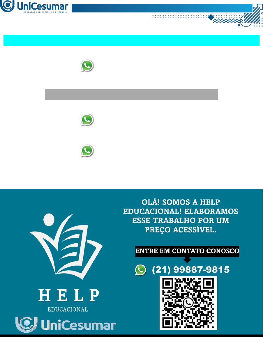 <p>MAPA – ESOFT - TÓPICOS EM COMPUTAÇÃO I - 53_2024</p><p>(21) 99887-9815</p><p>ASSESSORIA NOS SEUS TRABALHOS</p><p>(21) 99887-9815</p><p>(21) 99887-9815</p><p>Olá, acadêmico(a)! Esta é a proposta de atividade M.A.P.A., ou seja, Material de Avaliação</p><p>Prática da Aprendizagem</p><p>Contextualização:</p><p>“O crescimento do mobile só é possível graças à constante evolução e modernização dos</p><p>aparelhos. Lembra quando o primeiro telefone celular pesava aproximadamente 40 kg? Ele</p><p>evoluiu e passou a pesar quase 1 kg. Hoje, temos uma diversidade de modelos e de tecno-</p><p>logia, permitindo que o uso do celular possa quebrar limites e paradigmas na sociedade. A</p><p>comunicação móvel vai além do celular, temos outros aparelhos que podem utilizar a rede</p><p>celular ou redes sem fio para acessar a internet, tais como: leitores de livros digitais, como o</p><p>iPad, os computadores de bolso (PDA) e as plataformas de jogos, como o PSP da Sony e o</p><p>Nintendo DS. Temos também os tocadores de MP3 da Apple, o iPod Touch. Apesar desses</p><p>dispositivos não serem telefones celulares, em especial o smartphone, eles têm capacidade</p><p>de acessar a internet via Wi-Fi e rodar aplicativos e jogos.”</p><p>Fonte: SAES, Danilo Xavier; FREITAS, Janaína Aparecida de; FLORINDO, Rafael Alves;</p><p>VANSO, Rafael Maltempe da; GASPAROTTI, Talita Tonsic. Tópicos em Computação I.</p><p>Maringá: Unicesumar, 2021. p. 58-60.</p><p>A transformação dos dispositivos móveis ao longo dos anos é uma história de inovação tec-</p><p>nológica contínua que reflete mudanças profundas na sociedade e na cultura contemporâ-</p><p>nea. O desenvolvimento desses dispositivos não apenas revolucionou a forma como comu-</p><p>nicamos, mas também alterou significativamente nossos hábitos diários, nossa organização</p><p>do trabalho e até mesmo nossas práticas de lazer. No início, os telefones celulares eram</p><p>meramente instrumentos de comunicação que permitiam ligações em movimento. Contudo,</p><p>com o passar do tempo, esses aparelhos se tornaram verdadeiros centros multimídia portá-</p><p>teis. O acesso à internet, originalmente uma funcionalidade exclusiva de computadores de</p><p>mesa e laptops, tornou-se uma característica padrão em muitos dispositivos móveis, trans-</p><p>formando-os em plataformas essenciais para o acesso a informações, entretenimento e ser-</p><p>viços digitais. Esta evolução não apenas ampliou as funcionalidades dos dispositivos mó-</p><p>veis, mas também criou novas formas de interação social e de negócios, influenciando</p><p>desde a economia digital até as dinâmicas urbanas e o design de espaços públicos, onde a</p><p>conectividade e a acessibilidade se tornaram critérios essenciais.</p><p>Avaliação:</p><p>Para a elaboração da atividade você deve responder as seguintes perguntas:</p><p>a) Como a redução do tamanho e peso dos dispositivos móveis influenciou a maneira como</p><p>os utilizamos no cotidiano?</p><p>b) De que maneira a diversidade de modelos e tecnologias disponíveis impacta as escolhas</p><p>do consumidor e as tendências de mercado?</p><p>c) Discuta como o celular, ao quebrar limites e paradigmas, contribui para uma nova confi-</p><p>guração de espaços e tempos sociais.</p><p>OLÁ! SOMOS A HELP EDUCACIONAL!</p><p>ELABORAMOS ESSE TRABALHO POR UM PREÇO</p><p>ACESSÍVEL.</p><p>ENTRE EM CONTATO CONOSCO</p><p>(21) 99887-9815</p>