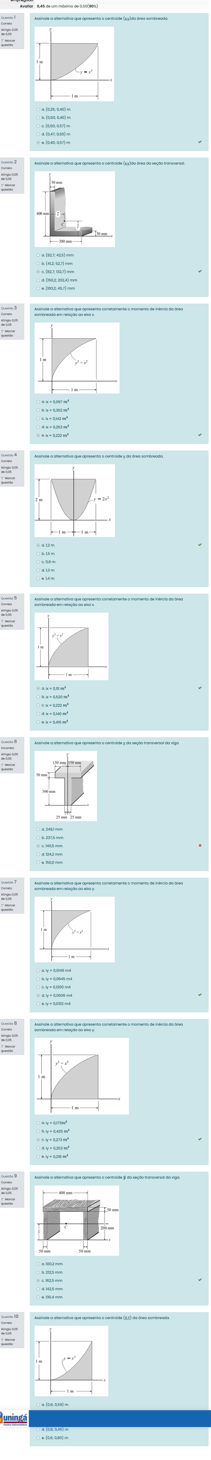 <p>Questdo Assinale alternativo que centroide transversal Questdo 3 3 que corretamente que sombreada 2 m Assinale corretamente m 6 que 50 mm 300mm m - alternative que centroide 50 mm alternativo que apresenta sombreado I m</p>