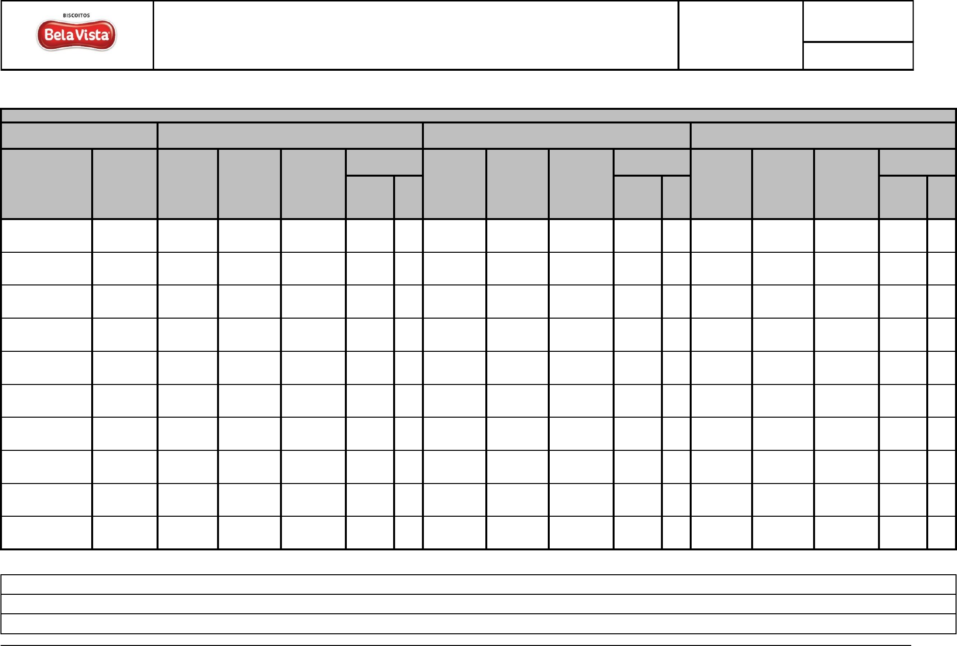 <p>SIM</p><p>(INSERIR</p><p>DATA)</p><p>NÃO</p><p>SIM</p><p>(INSERIR</p><p>DATA)</p><p>NÃO</p><p>SIM</p><p>(INSERIR</p><p>DATA)</p><p>NÃO</p><p>Almofariz</p><p>Pistilho</p><p>Pipeta</p><p>Volumétrica 10ml</p><p>Bureta 50ml</p><p>Erlenmeyer 250ml</p><p>Erlenmeyer 125ml</p><p>Béquer 50ml</p><p>Kitassato 500ml</p><p>Funil Buchenner</p><p>Balão Volumétrico</p><p>100ml</p><p>1ª SEMANA:_______/_________/________DATA 2ª SEMANA:_______/_________/________</p><p>Quantidade</p><p>em</p><p>Estoque</p><p>Verificação</p><p>do Estoque</p><p>Responsável</p><p>pela</p><p>Verificação</p><p>Houve Quebra</p><p>de Vidraria</p><p>Verificação</p><p>do Estoque</p><p>Material/ Vidraria</p><p>NOTA: *** Quando houver quebra de vidraria registrar na planilha RG_GQ_027 e entregar para o pessoal da Qualidade (área técnica) para arquivar.</p><p>Responsável</p><p>pela</p><p>Verificação</p><p>3ª SEMANA:_______/_________/________</p><p>Quantidade</p><p>em</p><p>Estoque</p><p>MÊS/ANO: _____________/___________ CONTROLE SEMANAL DAS VIDRARIAS</p><p>LABORATÓRIO FÁBRICA</p><p>Houve Quebra</p><p>de VidrariaQuantidade</p><p>em</p><p>Uso</p><p>Quantidade</p><p>em</p><p>Estoque</p><p>Verificação</p><p>do Estoque</p><p>Responsável</p><p>pela</p><p>Verificação</p><p>Houve Quebra</p><p>de Vidraria</p><p>Revisão</p><p>03</p><p>Data da Revisão</p><p>28/06/2023</p><p>Código do Documento</p><p>RG_GQ_102</p><p>CONTROLE DE VIDRARIAS DO LABORATÓRIO FABRIL</p><p>Revisão</p><p>03</p><p>Data da Revisão</p><p>28/06/2023</p><p>Código do Documento</p><p>RG_GQ_102</p><p>CONTROLE DE VIDRARIAS DO LABORATÓRIO FABRIL</p><p>SIM</p><p>(INSERIR</p><p>DATA)</p><p>NÃO</p><p>SIM</p><p>(INSERIR</p><p>DATA)</p><p>NÃO</p><p>Almofariz</p><p>Pistilho</p><p>Pipeta</p><p>Volumétrica 10ml</p><p>Bureta 50ml</p><p>Erlenmeyer 250ml</p><p>Erlenmeyer 125ml</p><p>Béquer 50ml</p><p>Kitassato 500ml</p><p>Funil Buchenner</p><p>Balão Volumétrico</p><p>100ml</p><p>NOTA: *** Quando houver quebra de vidraria registrar na planilha RG_GQ_027 e entregar para o pessoal da Qualidade (área técnica) para arquivar.</p><p>Quantidade</p><p>em</p><p>Estoque</p><p>Verificação</p><p>do Estoque</p><p>Responsável</p><p>pela</p><p>Verificação</p><p>Houve Quebra</p><p>de Vidraria</p><p>DATA 4ª SEMANA:_______/_________/________ 5ª SEMANA:_______/_________/________</p><p>Material/ Vidraria</p><p>Quantidade</p><p>em</p><p>Uso</p><p>Quantidade</p><p>em</p><p>Estoque</p><p>Verificação</p><p>do Estoque</p><p>Responsável</p><p>pela</p><p>Verificação</p><p>Houve Quebra</p><p>de Vidraria</p><p>MÊS/ANO: _____________/___________ CONTROLE SEMANAL DAS VIDRARIAS</p><p>LABORATÓRIO FÁBRICA</p><p>Revisão</p><p>03</p><p>Data da Revisão</p><p>28/06/2023</p><p>Código do Documento</p><p>RG_GQ_102</p><p>CONTROLE DE VIDRARIAS DO LABORATÓRIO FABRIL</p>
