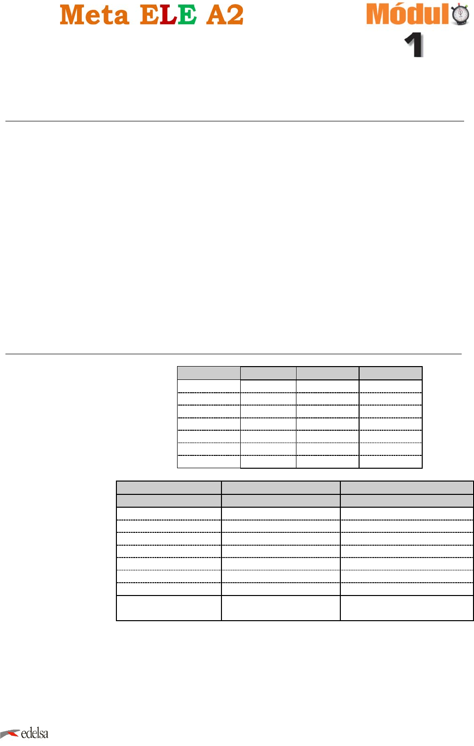 <p>aaaaaaaaaaa</p><p>Cuaderno de ejercicios</p><p>© Edelsa Grupo Didascalia, S.A.</p><p>Página 1 de 4</p><p>Claves de corrección</p><p>1. Recuerda los servicios hoteleros</p><p>1</p><p>• Disculpe, señorita. Podemos dejar el dinero en la caja de seguridad de la habitación, ¿verdad?</p><p>o Claro que sí, señor.</p><p>• ¿Dónde puedo consultar el precio de los productos del minibar?</p><p>o En la mesa, junto al televisor, tiene una lista de precios.</p><p>• Gracias.</p><p>2</p><p>• ¿Tienen planos de la ciudad?</p><p>o Sí, en la mesa tienen algunos folletos con información turística.</p><p>• ¿Podemos reservar alguna excursión desde aquí?</p><p>o No, lo siento. Nosotros no damos ese servicio.</p><p>3</p><p>• Buenas tardes, recepción, dígame.</p><p>o Hola. Disculpe, pero el mando a distancia del televisor no funciona.</p><p>• Ah, un momento. Ahora subimos a ver qué pasa.</p><p>2. Repasa la forma de los verbos irregulares</p><p>Hacer Jugar salir volver</p><p>(yo) hago juego salgo vuelvo</p><p>(tú) haces juegas sales vuelves</p><p>(vos) hacés jugás salís volvés</p><p>(usted, él, ella) hace juega sale vuelve</p><p>(nosotros, nosotras) hacemos jugamos salimos volvemos</p><p>(vosotros, vosotras) hacéis jugáis salís volvéis</p><p>(ustedes, ellos, ellas) hacen juegan salen vuelven</p><p>Verbos e>i Verbos e>ie Verbos o>ue</p><p>pedir preferir probar</p><p>(yo) pido prefiero pruebo</p><p>(tú) pides prefieres pruebas</p><p>(vos) pedís preferís probás</p><p>(usted, él, ella) pide prefiere prueba</p><p>(nosotros, nosotras) pedimos preferimos probamos</p><p>(vosotros, vosotras) pedís preferís probáis</p><p>(ustedes, ellos, ellas) piden prefieren prueban</p><p>Otros verbos: Servir, repetir, medir… Querer, empezar, cerrar,</p><p>perder, recomendar…</p><p>Costar, volver, morder, poder,</p><p>dormir…</p><p>aaaaaaaaaaa</p><p>Cuaderno de ejercicios</p><p>© Edelsa Grupo Didascalia, S.A.</p><p>Página 2 de 4</p><p>TRAER DECIR DAR VENIR</p><p>(yo) traigo digo doy vengo</p><p>(tú) traes dices das vienes</p><p>(vos) traés decís das venís</p><p>(usted, él, ella) trae dice da viene</p><p>(nosotros, nosotras) traemos decimos damos venimos</p><p>(vosotros, vosotras) traéis decís dais venís</p><p>(ustedes, ellos, ellas) traen dicen dan vienen</p><p>Verbos c>z Verbos gu>g Verbos c>zc</p><p>cocer seguir conocer</p><p>(yo) cuezo sigo conozco</p><p>(tú) cueces sigues conoces</p><p>(vos) cocés seguís conocés</p><p>(usted, él, ella) cuece sigue conoce</p><p>(nosotros, nosotras) cocemos seguimos conocemos</p><p>(vosotros, vosotras) cocéis seguís conocéis</p><p>(ustedes, ellos, ellas) cuecen siguen conocen</p><p>¡</p><p>3. Practica los verbos irregulares</p><p>• Hola Richard, ¿qué tal?</p><p>o Muy bien Cristina. Por fin tengo trabajo.</p><p>• ¡Cuánto me alegro! ¿Cuándo empiezas?</p><p>o Empiezo el lunes de la semana que viene. Y tú, ¿qué tal te va? Por lo que veo estás igual de joven que</p><p>siempre.</p><p>• Muchas gracias, qué amable. Pues soy profesor de Magisterio en la Universidad Complutense de Madrid.</p><p>o ¡Impresionante! ¿Mucho trabajo?</p><p>• Sí, es un trabajo de mucha responsabilidad. Y a ti, ¿te gusta tu trabajo?</p><p>o Sí, sí, estoy muy ilusionada porque vuelvo a trabajar otra vez de cocinera en un hotel de cinco estrellas</p><p>y puedo aspirar a ser un gran chef.</p><p>• ¡Qué alegría! Oye, ¡podemos quedar un día! Yo juego al baloncesto todos los sábados por la mañana, pero</p><p>podemos quedar luego para comer.</p><p>o Estupendo. ¡Hago la mejor sopa de marisco del mundo!</p><p>• Genial. Te llamo y quedamos ¿vale?</p><p>o Perfecto, espero tu llamada. Me alegro de verte.</p><p>• Igualmente. Hasta pronto.</p><p>o Hasta pronto</p><p>4. Recuerda los usos las preposiciones de tiempo</p><p>1. Voy a clases de flamenco los viernes por la tarde a las cinco y media.</p><p>2. Desde las nueve hasta las doce de la mañana estoy en la universidad.</p><p>3. Estoy de vacaciones desde el lunes hasta final de mes.</p><p>4. Mis compañeros de piso cenan a las nueve o las diez de la noche.</p><p>5. Bueno, señores, gracias por todo. ¡Hasta mañana!</p><p>6. Hoy no podemos quedar. Estoy en clase de baile hasta las 22:00.</p><p>7. Toco muy bien la guitarra. Practico desde los diez años.</p><p>8. Quiero comprar el libro mañana por la mañana.</p><p>aaaaaaaaaaa</p><p>Cuaderno de ejercicios</p><p>© Edelsa Grupo Didascalia, S.A.</p><p>Página 3 de 4</p><p>5. Utiliza las expresiones de lugar</p><p>a. Las gafas están encima de la agenda y detrás del bolígrafo.</p><p>La agenda está debajo de las gafas y del bolígrafo.</p><p>b. La cartera está entre las botas y el bolso, detrás de las botas.</p><p>Las botas están delante de la cartera y el bolso</p><p>El bolso está detrás de la cartera y las botas.</p><p>c. El cepillo de dientes está delante del jabón, encima de la toalla</p><p>El jabón está detrás del cepillo de dientes, encima de la toalla</p><p>La toalla está debajo del cepillo de dientes y del jabón.</p><p>d. Las gafas están a la derecha del pasaporte y el pasaporte está detrás de la llave del coche</p><p>El pasaporte está a la izquierda de las gafas de sol y de las llaves del coche</p><p>Las llaves del coche están delante de las gafas y a la derecha del pasaporte.</p><p>e. La llave está entre el móvil y la cartera, delante del bolso.</p><p>El bolso está detrás de la llave, el móvil y la cartera – La cartera está a la derecha del móvil y la llave y</p><p>delante del bolso</p><p>El móvil está a la izquierda de la llave y la cartera y delante del bolso.</p><p>f. Las toallas están dentro del bolso, detrás de las gafas</p><p>Las gafas están delante del bolso y las toallas.</p><p>6. Aprende a hacer definiciones y recuerda el vocabulario de los objetos al viajar</p><p>Linterna Es un instrumento para tener luz en el campo.</p><p>Jabón o gel Es un producto que usamos para lavarnos el cuerpo e