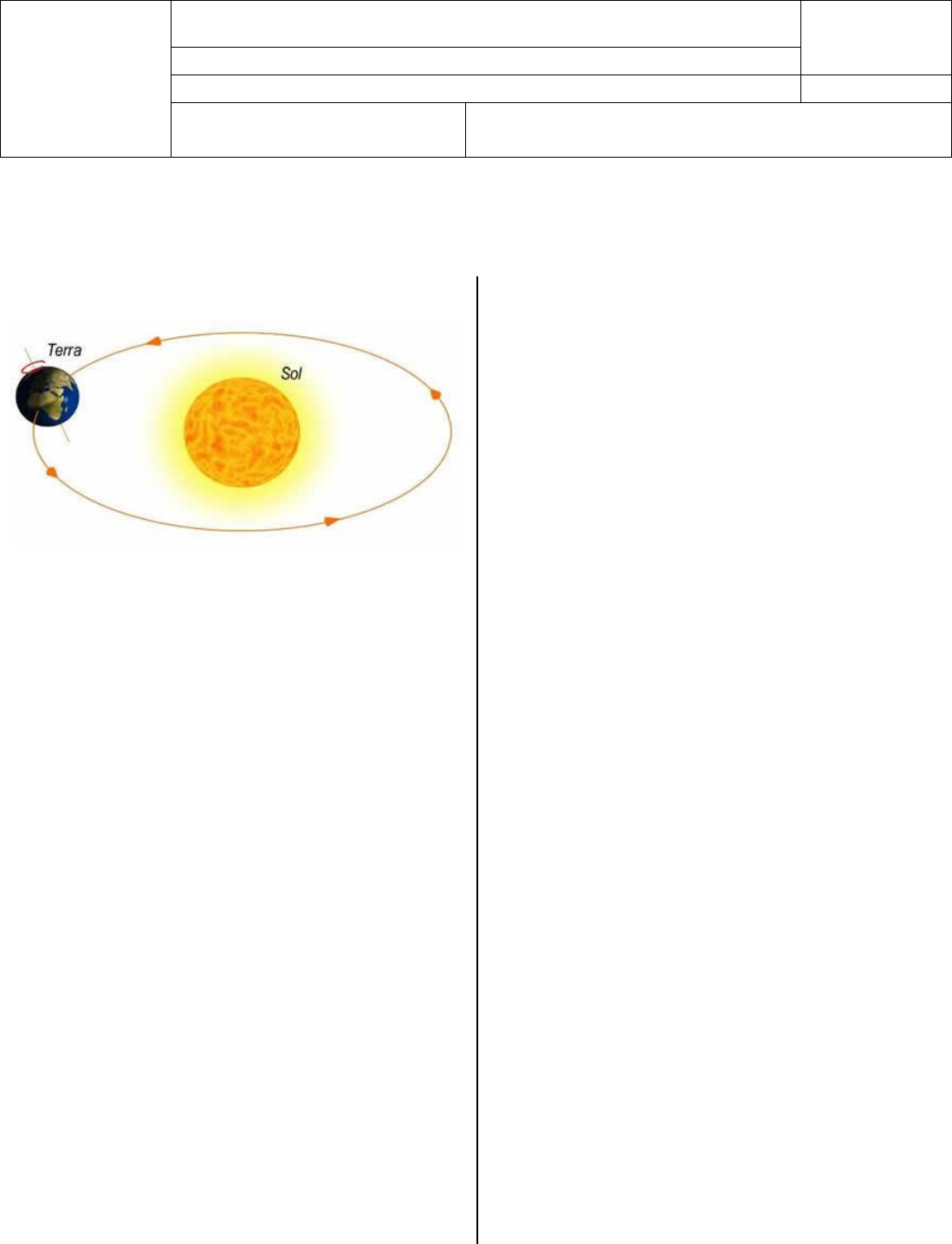 <p>Escola de Educação Básica</p><p>NOTA</p><p>Professor (a):</p><p>Aluno (a): Série:</p><p>Data:___/___/_______</p><p>Disciplina: Ciências</p><p>ATIVIDADES DO CONTEÚDO: TERRA</p><p>Viver na Terra – páginas 16 e 17.</p><p>A Terra, nosso planeta – páginas 68 e 69.</p><p>A Terra no espaço – páginas 168 a 179.</p><p>1) Analise a imagem a seguir e indique os</p><p>movimentos realizados pela Terra.</p><p>2) Qual é o movimento da Terra responsável pelos</p><p>dias e noites e quanto tempo dura?</p><p>3) Assinale a alternativa correta sobre a frase a</p><p>seguir:</p><p>“O caminho percorrido pela Terra ao redor</p><p>do Sol é conhecido por...”</p><p>a( ) rotação.</p><p>b( ) estações do ano.</p><p>c( ) órbita.</p><p>d( ) n.d.a.</p><p>4) É o sexto planeta do sistema solar a partir do Sol,</p><p>sendo o segundo maior planeta desse grupo. É</p><p>conhecido por ser rodeado de anéis e ser</p><p>classificado como um planeta gasoso ou joviano.</p><p>A descrição acima se refere a:</p><p>a) Urano</p><p>b) Netuno</p><p>c) Saturno</p><p>d) Júpiter</p><p>e) Vênus</p><p>5) A Terra, assim como todos os corpos celestes</p><p>presentes no universo, não está parada. Ao todo,</p><p>são dezenas de diferentes formas de</p><p>deslocamento realizadas pelo nosso planeta.</p><p>Assinale, entre as alternativas a seguir, aquela</p><p>que não indica um dos fenômenos de</p><p>movimentação terrestre:</p><p>a) rotação</p><p>b) nutação</p><p>c) inclinação</p><p>6) O planeta Terra é o _______________ do</p><p>Sistema Solar mais próximo do sol, sendo</p><p>classificado como um planeta ______________.</p><p>A maior parte de sua superfície é composta por</p><p>______________ e sua camada externa é muito</p><p>fina, recebendo a denominação de</p><p>____________________. Essa camada não é</p><p>contínua, ao contrário do que ocorre em outros</p><p>planetas, sendo segmentada em várias</p><p>___________________.</p><p>Assinale a alternativa que completa corretamente</p><p>as lacunas acima.</p><p>a) quarto – rochoso – rochas – atmosfera –</p><p>placas tectônicas</p><p>b) terceiro – comum – rochas – crosta terrestre –</p><p>formas de relevo</p><p>c) quarto – joviano – água – atmosfera –</p><p>camadas de ar</p><p>d) terceiro – rochoso – água – crosta terrestre –</p><p>placas tectônicas</p><p>7) Cite e descreva cada camada que compõem a</p><p>Terra (litosfera, hidrosfera e atmosfera).</p><p>8) Descreva porque a Terra é o único planeta capaz</p><p>de existir e realizar a manutenção da vida.</p><p>9) Descreva o conceito de biosfera.</p><p>10) Antigamente acreditava-se que a Terra era</p><p>plana. Descreva os fatos que levaram ao</p><p>conceito atual de Terra esférica.</p><p>11) Descreva fenômenos que modificam a Terra.</p><p>12) Pinte, recorte e construa no seu caderno o</p><p>Sistema Solar com a imagem a seguir.</p>