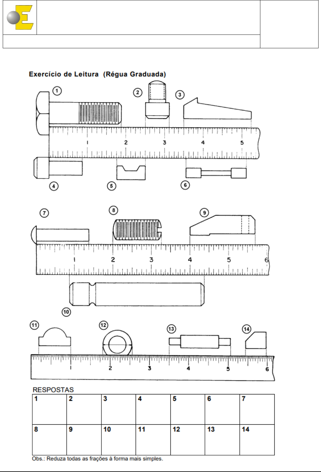 <p>Pág. 1 de 2</p><p>Organização Einstein de Ensino - Técnico em Automação Industrial Nota:</p><p>Disciplina: Mecânica Técnica Prova: Lista 1</p><p>Prof: Joselito Data: 01/03/2023 Turma: N</p><p>Nome: RA:</p><p>1 7''</p><p>8</p><p>5''</p><p>8</p><p>1 3''</p><p>4</p><p>7''</p><p>8</p><p>3''</p><p>4</p><p>1 9''</p><p>16</p><p>1 3''</p><p>8</p><p>1 1''</p><p>4</p><p>1 11''</p><p>16</p><p>3 1''</p><p>2</p><p>13''</p><p>16</p><p>3''</p><p>4</p><p>1 9''</p><p>16</p><p>17''</p><p>32</p><p>_</p><p>_</p><p>_</p><p>_</p><p>_</p><p>_</p><p>_</p><p>_</p><p>_</p><p>_</p><p>_</p><p>_</p><p>_</p><p>_</p><p>Pág. 2 de 2</p><p>3,03cm</p><p>5,03cm</p><p>2,09cm</p><p>3cm</p><p>3,04cm</p><p>4cm</p>