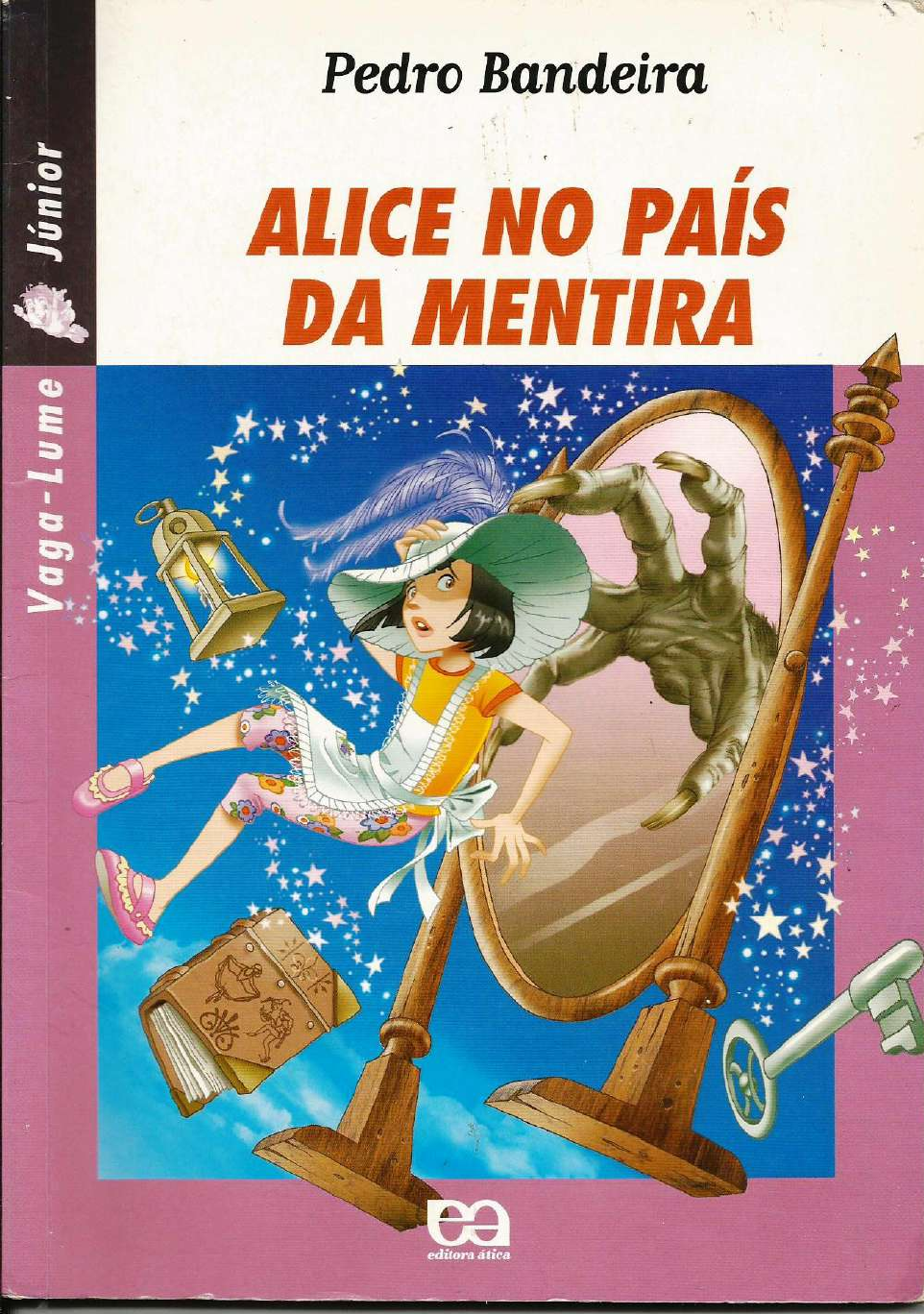 <p>Pedro Bandeira ALICE NO PAÍS DA MENTIRA editora ática</p><p>ALICE NO PAÍS DA MENTIRA Pedro Bandeira Ilustrações Roko editora ática</p><p>Conhecendo Pedro Bandeira Nasceu em Santos em 1942, mu- dou-se para São Paulo em 1961, fez Ciências Sociais, trabalhou em teatro, foi publicitário, jornalista, professor e, desde 1983, tornou-se somente um es- critor de É claro que essas his- tórias que Pedro Bandeira escreve não aconteceram: ele inventou tudo. E, se ele inventou, tudo não passa de mentira, não é? Desde pequeno, ele sempre teve muito jeito pra isso. Pra escre- ver histórias? Não. Pra contar mentira. Quando era criança e vi- nha com suas mentirinhas, acabava levando bronca: "Menino mentiroso! Já de gozado é que, muito mais tarde, quando Pedro começou a contar suas mentiras por escrito, todo mundo passou a dizer: "Mas que criativo!". Pois é... Em mentira escrita todo mundo acredita. E mentira é uma coisa muito feia, não é? Nem sempre. Há mentiras de todo jeito e há verdades também que... Bom, é melhor ler Alice no País da Mentira e descobrir. Depois, se você gostar, é só conhecer as outras mentiras do Pedro. Tem 0 fantás- tico mistério de Feiurinha, A droga da obediência, A marca de uma lágrima, Descanse em paz, meu amor... São tantas men- tiras que, se ele ainda fosse criança, ia ficar de castigo toda hora.</p><p>ASSIS ALICE NO PAÍS D4 MENTIRA Alice... coitada! Está arrasada com a mentira que Lucas inventou sobre ela. Como seu melhor amigo pôde aprontar uma dessas? Atrás de explicações, Alice vai parar num lugar... Sim, eu sei que você já sabe aonde, título já dedou... que você não sabe é como esse lugar pode ser louco, sinistro, perigooooso... Ah, já ia esquecendo... Dê uma olhada na página 82, lá estão umas "Verdades de verdade e mentiras de verdade" que é bom você saber.</p><p>Sumário calúnia calunienta 9 2. Diga a mentira! 15 3. Verdade é uma mentira malcontada 19 4. Mentiras de todo jeito 23 5. A Boa Mentira 29 6. 0 Zoológico das Piores Mentiras 33 7. A Mentira Cabeluda 39 8. Uma Verdade de peso 44 9. Verdade de guarda-chuva 48 10. Tem gente que não gosta de ouvir a Verdade 53 11. 0 ataque da Dúvida 57 12. A cueca do seu avô subiu no telhado 62 13. 0 das Piores Verdades 68 14. A melhor e a pior comida do mundo 72 15. 0 biscoito de chocolate 78 Verdades de verdade e mentiras de verdade 82</p><p>1 A calúnia calunienta Eu queria que você conhecesse a Alice. A Alice, assim nos seus melhores dias, com a corda toda, perguntadeira, cheia de idéias, sem- pre disposta a inventar alguma nova maneira de ser feliz. Não a Alice deste dia, assim tão triste e tão infeliz. Por que ela está assim tão triste e tão infeliz? Porque ela foi caluniada. Pobre Alice... Até aquele dia, ela nem tinha idéia do que sig- nificasse a palavra "calúnia", mas acabou recebendo a calúnia em cheio, bem no rosto, como uma bofetada. "Ai, que calúnia mais calunienta!" 9</p><p>Não foi na escola, foi no incrível quintal da casa da jus- to o lugar onde ela mais gostava de estar, de inventar, de dividir ale- grias com o Lucas, seu melhor amigo, que morava bem ao lado da casa da Qual foi a calúnia? Nem vou contar. Basta você ficar sabendo que o Lucas acusou Alice de ter feito uma coisa bem feia, coisa que ela nunca fez nem nunca faria. Entendeu? Então basta você imaginar agora alguma calúnia bem horrorosa que alguém poderia fazer para você, porque a calúnia do Lucas foi exatamente igual à que você pensou. Pobre Alice! A surpresa dela foi tamanha ao ouvir uma menti- ra tão grande (justo vinda da boca do Lucas!), que ela nem tentou se defender, nem saiu aos berros, chamando o Lucas de mentiroso. Não. que ela fez foi entrar na casa da calada, vermelha como um tomate. Ela queria fugir de tudo. Pra onde fugir? Lugar melhor não poderia haver do que o só- tão da casa da que é "sótão"? Bom, eu nunca estive em nenhum, mas já ouvi falar. É um lugar que quase não existe mais, só em casa de velhi- nhas. É um espaço grande, entre o forro e o telhado, onde as velhinhas deixam suas lembranças ficarem cobertas de poeira. Chegar no sótão era fácil: no andar de cima da casa da no fim do corredor, uma pequena escada dava num alçapão que se abria para o sótão, um lugar mal iluminado, cheio de móveis sem uso, pacotes, caixas, tudo bem empoeirado. Alice sabia há muito tempo da existência do sótão, mas nunca tinha decidido xeretar ali. Dessa vez, porém, ela pensou que aque- le seria um bom lugar pra se ficar só. Não subiu lá para chorar. Ela só queria ficar sozinha um pouco, para pensar na mentira do Lucas. Na calúnia. Não, ela não achava que o Lucas era o culpado pela menti- ra. Aos poucos, ela foi chegando à conclusão de que a mentira do Lucas é que era a culpada. Ah, se eu pudesse, eu esganava essa mentira! 10</p><p>Bom, esganar de verdade acho que ela não esganaria, pois tinha aprendido que esganar significa apertar um pescoço até o dono do pescoço perder a respiração. Isso ela não queria, pois a mentira do Lu- cas não respirava - ela ca-lu-ni-a-va, o que era muito pior. No sótão, no meio dos trastes, lá estava um espelhão refletindo a Alice e boa parte dos trastes espalhados pelo sótão. Quase encos- tado no espelho, havia um grande baú todo cheio de taxões e enfei- tes de metal que teriam sido bem dourados um dia, mas que já es- tavam escurecidos. Devia ter-se passado mesmo um tempão para escurecer tanto dourado. Alice sentou-se no chão, sobre as tábuas empoeiradas. Abraçou as pernas e ficou remoendo a mentira do Lucas, aquela coisa horro- rosa, feia mesmo. "Ah, que mentira cabeluda!" Do outro lado, dava para ver o Sótão do Espelho, igualzinho ao Sótão da Vovó. Só que tudo ao contrário. Na pa- rede do Sótão do Espelho, ela viu um quadrinho pen- durado, onde estava es- crito "Lar doce lar" e, no seu lado, no Sótão da no quadrinho pen- durado estava escrito "Não deveria ser ao contr