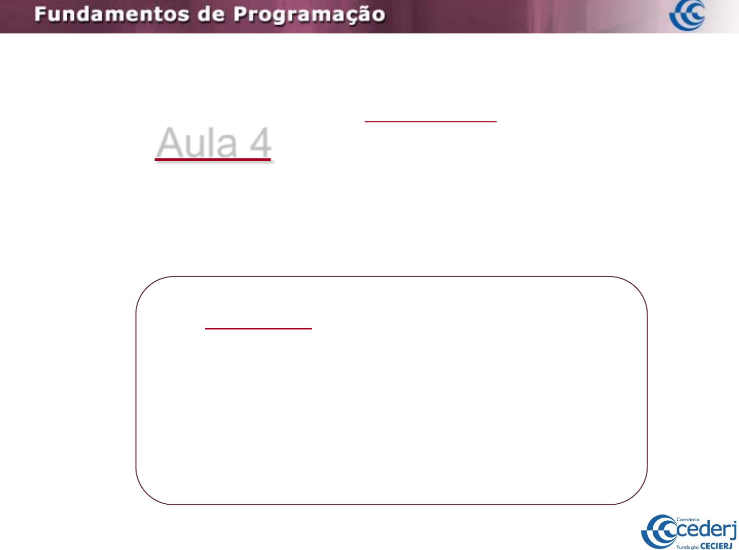 <p>Aula 4</p><p>Conteúdo:</p><p>- Subprogramação:</p><p>- Funções</p><p>- Passagem de Parâmetros</p><p>- Recursividade</p><p>Professores:</p><p>Dante Corbucci Filho</p><p>Leandro A. F. Fernandes</p><p>2</p><p>Subprogramação: Funções</p><p>• A utilização de funções permite que:</p><p>– Diferentes partes do programa possam ser desenvolvidas e</p><p>testadas separadamente;</p><p>– Partes do código possam ser reutilizadas em diferentes</p><p>pontos do programa;</p><p>– Programas complexos possam ser montados a partir de</p><p>unidades menores já desenvolvidas e testadas.</p><p>3</p><p>Subprogramação: Funções</p><p>• A utilização de funções permite que:</p><p>– Diferentes partes do programa possam ser desenvolvidas e</p><p>testadas separadamente;</p><p>– Partes do código possam ser reutilizadas em diferentes</p><p>pontos do programa;</p><p>– Programas complexos possam ser montados a partir de</p><p>unidades menores já desenvolvidas e testadas.</p><p>• Trata-se de um grupo de sentenças (suite), comando(s)</p><p>e/ou estrutura(s) de controle (e funções internas), ao qual</p><p>é atribuído um nome, que após a sua execução retorna</p><p>um valor.</p><p>4</p><p>Subprogramação: Funções</p><p>• A utilização de funções permite que:</p><p>– Diferentes partes do programa possam ser desenvolvidas e</p><p>testadas separadamente;</p><p>– Partes do código possam ser reutilizadas em diferentes</p><p>pontos do programa;</p><p>– Programas complexos possam ser montados a partir de</p><p>unidades menores já desenvolvidas e testadas.</p><p>• Trata-se de um grupo de sentenças (suite), comando(s)</p><p>e/ou estrutura(s) de controle (e funções internas), ao qual</p><p>é atribuído um nome, que após a sua execução retorna</p><p>um valor.</p><p>• Sua ativação se dá através de seu nome ou de</p><p>expressões que o contenha.</p><p>5</p><p>def nomeEscolhido(lista de parâmetros):</p><p>suite do corpo da função</p><p>A lista de parâmetros pode ter zero ou mais parâmetros,</p><p>separados por vírgulas.</p><p>Declaração de Uma Função em Python</p><p>6</p><p>def nomeEscolhido(lista de parâmetros):</p><p>suite do corpo da função</p><p>A suite do corpo da função deve possuir zero ou mais</p><p>retornos de valores, expressos por</p><p>return valor apropriado</p><p>Caso nenhum valor seja retornado, corresponde a</p><p>return ou return None</p><p>A lista de parâmetros pode ter zero ou mais parâmetros,</p><p>separados por vírgulas.</p><p>Declaração de Uma Função em Python</p><p>7</p><p>Sempre que possível, as funções devem ser declaradas antes de</p><p>serem utilizadas. Portanto, devem ficar acima do programa principal ou</p><p>de outras funções que as utilize.</p><p># Subprogramas</p><p>def nomeFun1(<listaParametros1>):</p><p><corpo nomeFun1></p><p>...</p><p>def nomeFunN(<listaParametrosN>):</p><p><corpo nomeFunN></p><p># Programa Completo</p><p>Esboço de Um Programa Contendo Funções</p><p>8</p><p>Sempre que possível, as funções devem ser declaradas antes de</p><p>serem utilizadas. Portanto, devem ficar acima do programa principal ou</p><p>de outras funções que as utilize.</p><p># Subprogramas</p><p>def nomeFun1(<listaParametros1>):</p><p><corpo nomeFun1></p><p>...</p><p>def nomeFunN(<listaParametrosN>):</p><p><corpo nomeFunN></p><p># Programa Principal</p><p>utiliza nomeFun1(...) ou/e nomeFunN(...)</p><p>utiliza nomeFunN(...) ou/e nomeFunN(...)</p><p># Programa Completo</p><p>Esboço de Um Programa Contendo Funções</p><p>9</p><p>Sempre que possível, as funções devem ser declaradas antes de</p><p>serem utilizadas. Portanto, devem ficar acima do programa principal ou</p><p>de outras funções que as utilize.</p><p># Subprogramas</p><p>def nomeFun1(<listaParametros1>):</p><p><corpo nomeFun1></p><p>Portanto, um programa passa a ser composto de um programa</p><p>principal e vários outros subprogramas, definidos em seu início.</p><p>...</p><p>def nomeFunN(<listaParametrosN>):</p><p><corpo nomeFunN></p><p># Programa Principal</p><p>utiliza nomeFun1(...) ou/e nomeFunN(...)</p><p>utiliza nomeFunN(...) ou/e nomeFunN(...)</p><p># Programa Completo</p><p>Esboço de Um Programa Contendo Funções</p><p>10</p><p>Um programa pode conter variáveis globais. No entanto, o uso de</p><p>variáveis globais não é considerada uma boa prática de programação,</p><p>por dificultar a legibilidade e compreensão dos códigos. Desta forma,</p><p>não mais utilizaremos este conceito, após esta aula.</p><p># Subprogramas</p><p>def nomeFun1(<listaParametros1>):</p><p><corpo nomeFun1></p><p>...</p><p>def nomeFunN(<listaParametrosN>):</p><p><corpo nomeFunN></p><p># Programa Principal</p><p>utiliza var1 e/ou varM e/ou nomeFun1(...) e/ou nomeFunN(...)</p><p>utiliza var1 e/ou varM e/ou nomeFun1(...) e/ou nomeFunN(...)</p><p># Programa Completo com Variáveis Globais</p><p>global var1</p><p>...</p><p>global varM</p><p>Programa com Variáveis Globais e Funções</p><p>11</p><p>Veremos dois programas, um utilizando variáveis globais e</p><p>outro utilizando passagem de parâmetros, que acessam</p><p>funções que calculam a multiplicação de dois números através</p><p>de somas sucessivas.</p><p>Variáveis Globais vs. Passagem de Parâmetros</p><p>• A função mult retorna o resultado da multiplicação das</p><p>variáveis x e y, através do cálculo de sucessivas somas.</p><p>• As chamadas mult() ou mult(x, y) representarão, além</p><p>da ativação da função, o valor a ser retornado.</p><p>12</p><p># Programa Completo com Variáveis Globais</p><p>global x</p><p>global y</p><p># Subprogramas</p><p>def mult():</p><p>z = 0</p><p>for u in range(x):</p><p>z = z + y</p><p>return z</p><p># Programa Principal</p><p>x = 20</p><p>y = 200</p><p>w = mult() + 10</p><p># Neste ponto, w vale 4010</p><p>print(w)</p><p>Variáveis Globais (Escopo)</p><p>13</p><p># Programa Completo com Variáveis Globais</p><p>global x</p><p>global y</p><p