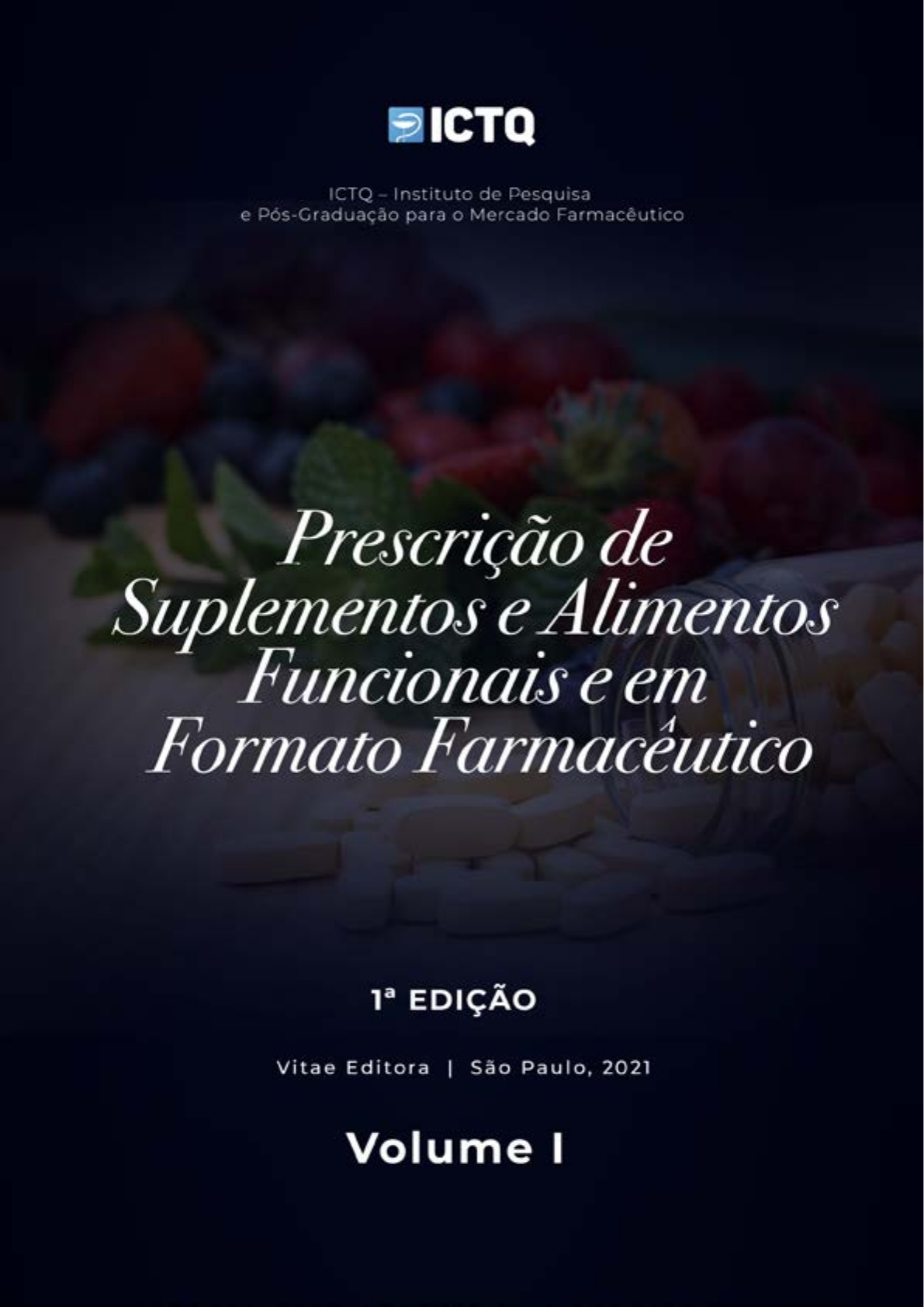 <p>1</p><p>2 3</p><p>ICTQ – Instituto de Pesquisa e Pós-Graduação para o Mercado Farmacêutico</p><p>PRESCRIÇÃO DE SUPLEMENTOS E ALIMENTOS FUNCIONAIS</p><p>EM FORMATO FARMACÊUTICO</p><p>Volume I</p><p>Vitae Editora</p><p>Anápolis (GO), 2022</p><p>E-book transcrito a partir da aula do Professor Daniel Jesus</p><p>Professor no Instituto de Pesquisa e Pós-Graduação para o Mercado Farmacêutico (ICTQ).</p><p>Graduação em Farmácia pela Universidade Federal de Goiás (1999). Especialização em</p><p>Farmacologia também pela UFG-GO (2002) e Mestrado em Gestão, Pesquisa e Desenvolvimento</p><p>em Tecnologia pela Pontifícia Universidade Católica de Goiás (2010). Farmacêutico efetivo da</p><p>Indústria Química do Estado de Goiás, por concurso público desde 2002, em que exerceu</p><p>diversos cargos, entre eles: Gerência de Planejamento e Controle de Produção, Diretoria Industrial</p><p>e Superintendência de Pesquisa e Desenvolvimento e Novos Negócios. Foi professor adjunto no</p><p>Instituto Unificado de Ensino Superior Objetivo por 15 anos e na FACUNICAMPS por 7</p><p>anos. É professor em cursos de pós-graduação em diferentes instituições no Brasil na área</p><p>de Farmacologia Clínica, Tecnologia Farmacêutica e Saúde pública. É conselheiro efetivo do</p><p>Conselho Regional de Farmácia de Goiás (2012/2015 e 2015/2019). Diretor Secretário Geral</p><p>do CRF (2018/2019) e (2020/2022).</p><p>EXPEDIENTE:</p><p>Autor: ICTQ – Instituto de Pesquisa e Pós-Graduação para o Mercado Farmacêutico</p><p>Revisão Técnica: Farmacêutica Me. Juliana Cardoso</p><p>Produção: Vitae Editora</p><p>Edição: Egle Leonardi e Jemima Bispo</p><p>Colaboraram nesta edição: Erika Di Pardi e Janaina Araújo</p><p>Diagramação: Cynara Miralha</p><p>4 5</p><p>PRESCRIÇÃO DE SUPLEMENTOS E ALIMENTOS FUNCIONAIS EM FORMATO</p><p>FARMACÊUTICO</p><p>APRESENTAÇÃO</p><p>O objetivo deste e-book é introduzir os conceitos sobre Alimentos Funcionais e em Formato</p><p>Farmacêutico. O alimento funcional possui uma função no corpo além da nutrição, embora</p><p>todo alimento sirva para nutrir o corpo humano. Ele pode ser adquirido na feira, no mercado</p><p>etc. No entanto, este e-book foca no formato farmacêutico, ou seja, alimentos industrializados</p><p>na forma de pó, cápsulas etc.</p><p>Pretende-se demonstrar a importância da orientação adequada para o uso correto</p><p>de suplementos alimentares e ainda atualizar as informações quanto às recomendações,</p><p>legislações e prescrição farmacêutica para suplementos em formato farmacêutico.</p><p>QUAL É O CENÁRIO ATUAL?</p><p>Na história recente, observa-se que o uso de suplementação alimentar está cada vez</p><p>maior. No Brasil, há mais ou menos 40 anos, uma significativa porcentagem da população</p><p>era subnutrida. Esse cenário foi revertido devido à melhora na produção agrícola, na eficiência</p><p>da produção de alimentos, entre outros fatores, tanto no mundo quanto no Brasil.</p><p>Sendo assim, não há mais uma preocupação com a quantidade de alimentos, mas com</p><p>a qualidade deles. No entanto, isso não significa que a fome deixou de existir no cenário</p><p>brasileiro. Contudo, atenta-se mais para o excesso de alimento, atualmente.</p><p>A preocupação com doenças por superalimentação ou alimentação inadequada, como a</p><p>obesidade, passou a ser um problema de saúde em diversos quesitos. O uso do medicamento,</p><p>apesar de essencial para o aumento da expectativa e qualidade de vida, gerou no ser humano</p><p>uma necessidade de um número maior de medicamentos conforme ele envelhece. Por isso,</p><p>as pessoas buscam diminuir a quantidade de medicamentos, tentando colocar em sua rotina</p><p>dietética argumentos ou suplementos que possam substituir ou diminuir a necessidade de</p><p>medicamentos.</p><p>Conforme o cenário de fome diminui, passa-se a ter uma conjuntura diferente. Observa-se</p><p>que, nos Estados Unidos, a comida rápida (fast-food) é muito barata e, dessa forma, gera-se</p><p>um outro problema: obesidade.</p><p>Atualmente, há um mercado em ascensão no qual se busca o equilíbrio para gerar</p><p>longevidade (aumento da expectativa de vida) e uma vida saudável (aumento da qualidade</p><p>de vida). Por isso, a perspectiva, atualmente, não é mais a de resolver apenas o problema</p><p>da subnutrição, mas fornecer uma nutrição adequada para que se tenha uma expectativa e</p><p>qualidade de vida melhores.</p><p>Os níveis de fome do Brasil se mantêm abaixo de 5% até os dias atuais.</p><p>6 7</p><p>Atualmente, em muitos casos, a alimentação de crianças baseia-se, praticamente, em fast-foods.</p><p>A comida feita em casa, mais balanceada e diversificada ao nível de elementos, passa a ser</p><p>menor. Apesar de se ter uma quantidade maior de alimentos, a qualidade não acompanhou</p><p>esse processo. Embora haja uma população bem nutrida no sentido quantitativo, no âmbito</p><p>qualitativo há uma alimentação muita rica em gorduras e em carboidratos. Dessa forma, a</p><p>população tende à obesidade, que gera vários problemas, desde a infância até a idade adulta.</p><p>Costuma-se pensar que a população de baixa escolaridade possui menos condições financeiras</p><p>para comprar alimentos. Ressalta-se que, quanto mais instruído ou quanto maior o grau de</p><p>escolaridade da população, maior a possibilidade de se alimentar bem. A baixa instrução</p><p>aumenta o risco de obesidade. A educação faz parte da formação do cidadão, a qual fará</p><p>com que ele não se torne obeso.</p><p>O farmacêutico tem um papel fundamental nessa instrução. Às vezes, a preocupação</p><p>gira em torno da compra do medicamento. Contudo, é preciso se atentar para a efetividade</p><p>do medicamento, que dependerá, sobretudo, do bom comportamento do paciente e de seu</p><p>estilo de vida. Na prática, não adianta o indivíduo tom