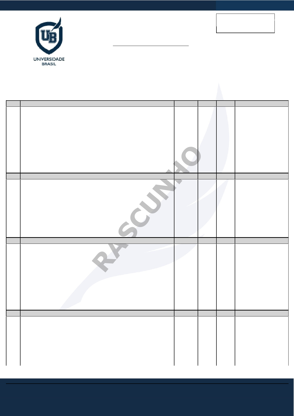 <p>R</p><p>A</p><p>S</p><p>C</p><p>U</p><p>N</p><p>H</p><p>O</p><p>2018 - Estrutura Curricular D.A. 2018</p><p>FARMÁCIA - BACHARELADO</p><p>Edna Flauzine Erlich19231400-3</p><p>Histórico Escolar</p><p>Matrícula: Nome:</p><p>Curso:</p><p>Periodo Letivo:</p><p>Situação:</p><p>Semestre:</p><p>Usuario:</p><p>25/07/2024 15:38Data:</p><p>Página 1 de 3</p><p>Matriz:</p><p>19231400-3</p><p>Sem. Disciplina C.H. Nota SituaçãoAno</p><p>10.008020192BIOLOGIA BÁSICA1 Aprovado</p><p>10.008020192HISTÓRIA E EXERCÍCIO PROFISSIONAL1 Aprovado</p><p>10.008020192HUMANIZAÇÃO EM SAÚDE1 Aprovado</p><p>10.004020192LÍNGUAGEM E INTERPRETAÇÃO DE TEXTO1 Aprovado</p><p>9.008020192MATEMÁTICA BÁSICA1 Aprovado</p><p>A2020192ORIENTAÇÃO À MODALIDADE EAD1 Aprovado</p><p>10.004020192POLÍTICAS PÚBLICAS DE SAÚDE1 Aprovado</p><p>------4020192PROJETO INTEGRADOR DE FARMÁCIA I1 Matriculado</p><p>Sem. Disciplina C.H. Nota SituaçãoAno</p><p>10.008020201ANATOMIA BÁSICA2 Aprovado</p><p>------80------BIOQUÍMICA E BIOFÍSICA2 A cursar</p><p>------40------ESTUDOS SOCIOANTROPOLÓGICOS2 A cursar</p><p>10.004020201ÉTICA, CIDADANIA E INCLUSÃO SOCIAL2 Aprovado</p><p>10.008020201HISTOLOGIA E IMUNOLOGIA2 Aprovado</p><p>10.008020201MICROBIOLOGIA E PARASITOLOGIA2 Aprovado</p><p>------4020201PROJETO INTEGRADOR DE FARMÁCIA II2 Matriculado</p><p>Sem. Disciplina C.H. Nota SituaçãoAno</p><p>8.508020202ANATOMIA DOS SISTEMAS3 Aprovado</p><p>------12020202ESTÁGIO SUPERVISIONADO EM FARMÁCIA I3 Matriculado</p><p>6.008020202FISIOLOGIA BÁSICA3 Aprovado</p><p>6.008020202FITOTERAPIA3 Aprovado</p><p>6.004020202HISTÓRIA E CULTURA AFRO-BRASILEIRA E INDÍGENA3 Aprovado</p><p>6.004020202METODOLOGIA DO TRABALHO ACADÊMICO3 Aprovado</p><p>------4020202PROJETO INTEGRADOR DE FARMÁCIA III3 Matriculado</p><p>6.008020202QUÍMICA ORGÂNICA3 Aprovado</p><p>Sem. Disciplina C.H. Nota SituaçãoAno</p><p>------40------EDUCAÇÃO E NOVAS TECNOLOGIAS4 A cursar</p><p>------80------FARMACOBOTÂNICA E FARMACOGNOSIA4 A cursar</p><p>------40------FARMACOCINÉTICA4 A cursar</p><p>------80------FISIOLOGIA APLICADA4 A cursar</p><p>------40------PROJETO INTEGRADOR DE FARMÁCIA IV4 A cursar</p><p>------80------QUÍMICA GERAL E INORGÂNICA4 A cursar</p><p>www.universidadebrasil.edu.br</p><p>Este documento não é oficial, tem apenas caráter consultivo.</p><p>R</p><p>A</p><p>S</p><p>C</p><p>U</p><p>N</p><p>H</p><p>O</p><p>2018 - Estrutura Curricular D.A. 2018</p><p>FARMÁCIA - BACHARELADO</p><p>Edna Flauzine Erlich19231400-3</p><p>Histórico Escolar</p><p>Matrícula: Nome:</p><p>Curso:</p><p>Periodo Letivo:</p><p>Situação:</p><p>Semestre:</p><p>Usuario:</p><p>25/07/2024 15:38Data:</p><p>Página 2 de 3</p><p>Matriz:</p><p>19231400-3</p><p>Sem. Disciplina C.H. Nota SituaçãoAno</p><p>------80------QUÍMICA ORGÂNICA APLICADA4 A cursar</p><p>Sem. Disciplina C.H. Nota SituaçãoAno</p><p>------120------ESTÁGIO SUPERVISIONADO EM FARMÁCIA II5 A cursar</p><p>------80------FARMACODINÂMICA: SISTEMA NEUROLÓGICO5 A cursar</p><p>------40------FUNDAMENTOS DE ADMINISTRAÇÃO5 A cursar</p><p>------40------MEIO AMBIENTE E SUSTENTABILIDADE5 A cursar</p><p>------80------PARASITOLOGIA CLÍNICA5 A cursar</p><p>------80------PATOLOGIA5 A cursar</p><p>------80------QUÍMICA ANALÍTICA QUALITATIVA5 A cursar</p><p>Sem. Disciplina C.H. Nota SituaçãoAno</p><p>------80------FARMACODINÂMICA: SISTEMAS ORGÂNICOS6 A cursar</p><p>------80------FÍSICO-QUÍMICA6 A cursar</p><p>------40------GESTÃO DE EMPRESA FARMACÊUTICA6 A cursar</p><p>------80------IMUNOLOGIA CLÍNICA6 A cursar</p><p>------40------LINGUAGEM BRASILEIRA DE SINAIS - LIBRAS6 A cursar</p><p>------80------QUÍMICA ANALÍTICA QUANTITATIVA6 A cursar</p><p>Sem. Disciplina C.H. Nota SituaçãoAno</p><p>------80------ATENÇÃO FARMACÊUTICA7 A cursar</p><p>------40------BIOLOGIA MOLECULAR7 A cursar</p><p>------80------BROMATOLOGIA E COMPOSIÇÃO DOS ALIMENTOS7 A cursar</p><p>------100------ESTÁGIO SUPERVISIONADO EM FARMÁCIA III7 A cursar</p><p>------80------FARMACOTÊCNICA: FORMAS FARMACÊUTICA SÓLIDAS E SEMISSÓLIDAS7 A cursar</p><p>------40------PSICOLOGIA APLICADA A SAÚDE7 A cursar</p><p>------80------QUÍMICA FARMACÊUTICA E INOVAÇÃO7 A cursar</p><p>Sem. Disciplina C.H. Nota SituaçãoAno</p><p>------80------CONTROLE DE QUALIDADE EM FARMÁCIA8 A cursar</p><p>------40------EPIDEMIOLOGIA E BIOESTATÍSTICA8 A cursar</p><p>------120------ESTÁGIO SUPERVISIONADO EM FARMÁCIA IV8 A cursar</p><p>------100------ESTÁGIO SUPERVISIONADO EM FARMÁCIA V8 A cursar</p><p>------80------FARMACOTÉCNICA: FORMAS FARMACÊUTICAS LÍQUIDAS E ESTÉREIS8 A cursar</p><p>------40------METODOLOGIA DA PESQUISA CIENTÍFICA8 A cursar</p><p>------80------TECNOLOGIA EM FARMÁCIA HOMEOPÁTICA8 A cursar</p><p>www.universidadebrasil.edu.br</p><p>Este documento não é oficial, tem apenas caráter consultivo.</p><p>R</p><p>A</p><p>S</p><p>C</p><p>U</p><p>N</p><p>H</p><p>O</p><p>2018 - Estrutura Curricular D.A. 2018</p><p>FARMÁCIA - BACHARELADO</p><p>Edna Flauzine Erlich19231400-3</p><p>Histórico Escolar</p><p>Matrícula: Nome:</p><p>Curso:</p><p>Periodo Letivo:</p><p>Situação:</p><p>Semestre:</p><p>Usuario:</p><p>25/07/2024 15:38Data:</p><p>Página 3 de 3</p><p>Matriz:</p><p>19231400-3</p><p>Sem. Disciplina C.H. Nota SituaçãoAno</p><p>------80------TECNOLOGIA FARMACÊUTICA8 A cursar</p><p>Sem. Disciplina C.H. Nota SituaçãoAno</p><p>------40------EMPREENDEDORISMO E RESPONSABILIDADE SOCIAL9 A cursar</p><p>------240------ESTÁGIO SUPERVISIONADO EM FARMÁCIA VI9 A cursar</p><p>------80------FARMÁCIA HOSPITALAR9 A cursar</p><p>------80------MICROBIOLOGIA E CITOLOGIA CLÍNICA9 A cursar</p><p>------40------PROJETO DE CONCLUSÃO DE CURSO9 A cursar</p><p>------40------PROJETO INTEGRADOR DE FARMÁCIA V9 A cursar</p><p>------80------TECNOLOGIA EM COSMETOLOGIA9 A cursar</p><p>------80------TOXICOLOGIA GERAL E ANALÍTICA9 A cursar</p><p>Sem. Disciplina C.H. Nota SituaçãoAno</p><p>------100------ATIVIDADES COMPLEMENTARES10 A cursar</p><p>-