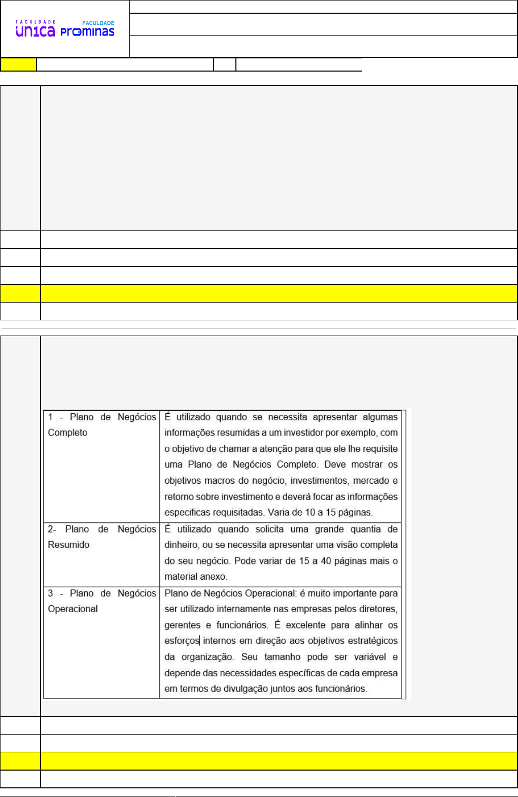 <p>24/03/2024 22:23:55 1/3</p><p>REVISÃO DE SIMULADO</p><p>Nome:</p><p>JOSÉ AUGUSTO SANTIAGO</p><p>Disciplina:</p><p>Análise de Viabilidade de Negócios</p><p>Respostas corretas são marcadas em amarelo X Respostas marcardas por você.</p><p>Questão</p><p>001 O Sumário Executivo é a principal seção do seu Plano de Negócio.</p><p>I - Através do Sumário Executivo é que o leitor decidirá se continuará ou não a ler o seu</p><p>Plano de Negócios. Portanto, deve ser escrito com muita atenção, revisado várias vezes</p><p>e conter uma síntese das principais informações que constam em seu Plano de</p><p>Negócios.</p><p>II – No sumário executivo deve-se explicitar qual o objetivo do Plano de Negócios e se o</p><p>projeto é viável ou não.</p><p>III - O Sumário Executivo deve ser a última seção a ser escrita, pois depende de todas</p><p>as outras seções do plano para ser feita.</p><p>É correto o que se afirma em:</p><p>A) I e II, apenas.</p><p>B) II e III, apenas</p><p>C) I, apenas.</p><p>X D) I, II, III.</p><p>E) II, apenas.</p><p>Questão</p><p>002 Independentemente do tamanho e segmento da empresa a estrutura apresentada para</p><p>se montar o Plano de Negócios é praticamente a mesma, sendo necessário algumas</p><p>adaptações, o importante é você saber como e onde quer chegar. Um plano de</p><p>negócios pode ser feito de forma resumida, completa ou operacional. Associe a primeira</p><p>coluna de acordo com a segunda:</p><p>A sequência correta será:</p><p>A) 3, 2, 1.</p><p>B) 1, 3, 2.</p><p>X C) 2, 1, 3.</p><p>D) 3, 1, 2.</p><p>24/03/2024 22:23:55 2/3</p><p>E) 1, 2, 3.</p><p>Questão</p><p>003 Na elaboração das vantagens competitivas, o plano de negócios deverá responder as</p><p>seguintes questões:</p><p>I - Por que os seus clientes escolherão o seu produto em relação a outros disponíveis no</p><p>mercado.</p><p>II - Seu produto beneficiará seus clientes mais do que aqueles atualmente utilizados por</p><p>eles?</p><p>III - Caso conclua que a superioridade está nos produtos dos concorrentes, cite as</p><p>modificações que serão feitas para reverter este quadro.</p><p>É correto o que se afirma em:</p><p>A) I e II, apenas.</p><p>X B) I, II e III.</p><p>C) II, apenas.</p><p>D) III, apenas.</p><p>E) I, apenas.</p><p>Questão</p><p>004 A respeito do sumário executivo do plano de negócios, marque V ou F nas alternativas a</p><p>seguir:</p><p>( ) O sumário executivo é a principal seção do plano de negócios, pois fará o leitor</p><p>decidir se continuará ou não a ler o documento.</p><p>( ) Deve ser escrito com muita atenção e revisado várias vezes, além de conter uma</p><p>síntese das principais informações que constam do plano de negócios.</p><p>( )O sumário executivo deverá vir ao final do plano de negócios junto com o parecer</p><p>final.</p><p>( ) Se ele estiver mal redigido ou não tiver os objetivos do plano de negócios claramente</p><p>definidos, desmotivará o leitor a prosseguir na leitura.</p><p>( ) O sumário executivo deve mencionar: montante do capital investido, faturamento</p><p>mensal, quanto tempo o capital investido irá retornar, análise da concorrência, um</p><p>resumo da análise SWOT e do planejamento estratégico.</p><p>A sequência correta será:</p><p>A) V, F, V, F, V.</p><p>B) F, V, V, F, V.</p><p>X C) V, V, F, V, F.</p><p>D) F, V, F, F, V.</p><p>E) V, V, V, F, F.</p><p>Questão</p><p>005 Um plano de negócio pode ser usado para se conseguir novos sócios e investidores,</p><p>para estabelecer parcerias com fornecedores e clientes ou mesmo para ser</p><p>apresentado a bancos para a solicitação de financiamentos. O plano de negócio do</p><p>empreendimento deve seguir cinco etapas em sua elaboração. A sequência correta</p><p>seria</p><p>A) Sumário Executivo, Plano de Marketing, Análise de mercado Plano Operacional e Plano</p><p>Financeiro.</p><p>B) Análise de mercado, Plano de Marketing, Plano Operacional e Plano Financeiro.</p><p>X C) Plano de Marketing, Análise de mercado, Plano Operacional e Plano Financeiro, Sumário</p><p>Executivo.</p><p>D) Plano Operacional e Plano Financeiro, Análise de mercado, Plano de Marketing, Sumário</p><p>Executivo.</p><p>24/03/2024 22:23:55 3/3</p><p>E) Sumário Executivo, Análise de mercado, Plano de Marketing, Plano Operacional e Plano</p><p>Financeiro, Sumário Executivo.</p><p>Questão</p><p>006 Hashimoto e Borges (2020), fazem algumas considerações sobre a política de preços:</p><p>I - O volume de vendas pode aumentar ou diminuir dependendo da política de preços,</p><p>consequentemente a receita total e a lucratividade também.</p><p>II - A participação no mercado varia em função das vendas e, portanto, também pode</p><p>ser influenciada pelo preço.</p><p>III - Baixo poder de barganha com clientes e fornecedores restringe a margem de</p><p>manobra de preços, o que leva à perda de competitividade.</p><p>É correto o que se afirma em:</p><p>A) I, apenas.</p><p>B) II, apenas.</p><p>X C) I, II e III.</p><p>D) III, apenas.</p><p>E) I e II, apenas.</p>