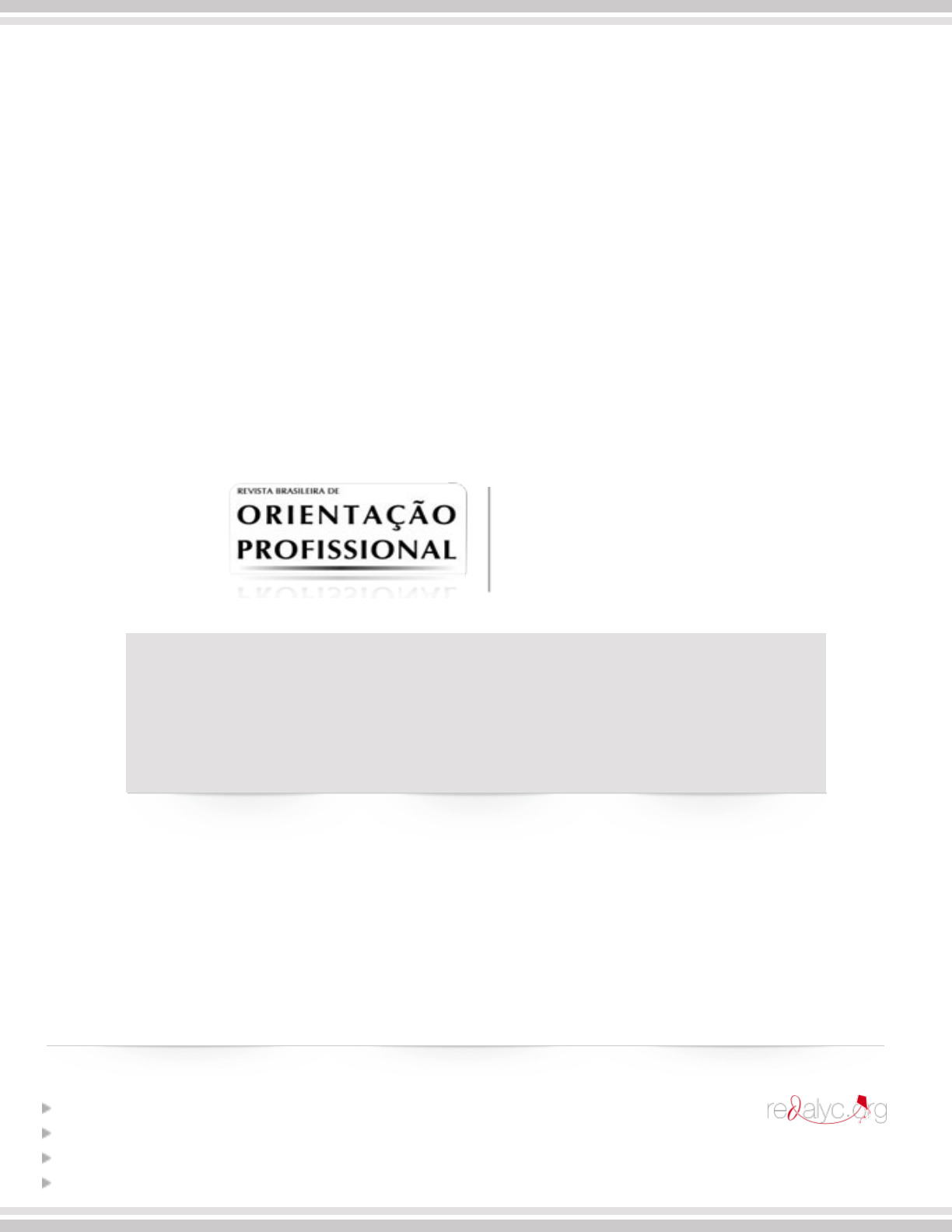 <p>Revista Brasileira de Orientação Profissional</p><p>ISSN: 1679-3390</p><p>lucileal@ffclrp.usp.br</p><p>Associação Brasileira de Orientação</p><p>Profissional</p><p>Brasil</p><p>Cardoso de Oliveira, Marina; Leal Melo-Silva, Lucy; Ferreira Dela Coleta, Marília</p><p>Pressupostos teóricos de Super: Datados ou aplicáveis à Psicologia Vocacional contemporânea?</p><p>Revista Brasileira de Orientação Profissional, vol. 13, núm. 2, julio-diciembre, 2012, pp. 223-234</p><p>Associação Brasileira de Orientação Profissional</p><p>São Paulo, Brasil</p><p>Disponível em: http://www.redalyc.org/articulo.oa?id=203024746009</p><p>Como citar este artigo</p><p>Número completo</p><p>Mais artigos</p><p>Home da revista no Redalyc</p><p>Sistema de Informação Científica</p><p>Rede de Revistas Científicas da América Latina, Caribe , Espanha e Portugal</p><p>Projeto acadêmico sem fins lucrativos desenvolvido no âmbito da iniciativa Acesso Aberto</p><p>http://www.redalyc.org/revista.oa?id=2030</p><p>http://www.redalyc.org/articulo.oa?id=203024746009</p><p>http://www.redalyc.org/comocitar.oa?id=203024746009</p><p>http://www.redalyc.org/fasciculo.oa?id=2030&numero=24746</p><p>http://www.redalyc.org/articulo.oa?id=203024746009</p><p>http://www.redalyc.org/revista.oa?id=2030</p><p>http://www.redalyc.org</p><p>223</p><p>Pressupostos teóricos de Super: Datados ou</p><p>aplicáveis à Psicologia Vocacional contemporânea?</p><p>Artigo</p><p>Disponível em http://pepsic.bvsalud.org/scielo.php?script=sci_issues&pid=1679-3390&lng=pt&nrm=iso</p><p>Marina Cardoso de Oliveira1</p><p>Universidade Federal de Mato Grosso do Sul, Paranaíba- MS, Brasil</p><p>Lucy Leal Melo-Silva</p><p>Universidade de São Paulo, Ribeirão Preto-SP, Brasil</p><p>Marília Ferreira Dela Coleta</p><p>Universidade Federal de Uberlândia, Uberlândia-MG, Brasil</p><p>Revista Brasileira de Orientação Profi ssional</p><p>jul.-dez. 2012, Vol. 13, No. 2, 223-234</p><p>Resumo</p><p>A Psicologia Vocacional desenvolveu-se com a contribuição de muitos pesquisadores, sendo Donald Super uma de</p><p>suas maiores referências. Há consenso sobre a relevância de suas contribuições, porém, há também questionamentos</p><p>sobre a aplicabilidade da sua teoria na atualidade. Este estudo objetiva descrever os principais pressupostos da</p><p>teoria de Super, por meio dos modelos do Arco-Íris da Vida e Carreira e do Arco Normando, a fi m de refl etir sobre a</p><p>aplicabilidade de seus conceitos para a Psicologia Vocacional contemporânea. Observa-se que os seus pressupostos</p><p>continuam relevantes para a atuação do orientador profi ssional, como também servem de base para a consolidação de</p><p>novos paradigmas da Psicologia Vocacional. Mais pesquisas precisam, no entanto, ser conduzidas buscando ampliar</p><p>as evidências da sua aplicabilidade.</p><p>Palavras-chave: espaço de vida e de carreira, arco-íris de carreira, arco normando, adaptabilidade de carreira,</p><p>maturidade para a carreira.</p><p>Abstract: Super’s theoretical assumptions: outdated or applicable in today’s Vocational Psychology?</p><p>Vocational Psychology was developed with contributions from many researchers, among which Donald Super</p><p>is a reference. Researchers agree on the relevance of his contributions, but there are also queries about current</p><p>applicability of his theory. This study aims to describe the main assumptions of Super’s theory through the Life</p><p>Career Rainbow model and the Archway model, in order to refl ect on the applicability of his concepts in today’s</p><p>Vocational Psychology. It is observed that his assumptions remain relevant for the performance of career counselors</p><p>and also serve as a basis for the consolidation of new paradigms in Vocational Psychology. However, further research</p><p>should be conducted in order to strengthen evidence for its applicability in current times.</p><p>Keywords: life-span, life career rainbow, archway, career adaptability, vocational maturity</p><p>Resumen: Presupuestos teóricos de Super: ¿Antiguos o aplicables a la psicología vocacional contemporánea?</p><p>La Psicología Vocacional se desarrolló con la contribución de muchos investigadores, siendo Donald Super una de sus</p><p>mayores referencias. Hay consenso sobre la relevancia de sus contribuciones, pero también cuestionamientos sobre</p><p>la aplicabilidad de su teoría en la actualidad. Este estudio tiene el objeto de describir los principales presupuestos de</p><p>la teoría de Super por medio de los modelos Arco-Iris de la Vida y Carrera, y Arco Normando, a fi n de refl exionar</p><p>sobre la aplicabilidad de sus conceptos a la Psicología Vocacional contemporánea. Se observa que sus presupuestos</p><p>continúan relevantes para la actuación del orientador profesional, como también sirven de base para la consolidación</p><p>de nuevos paradigmas de la Psicología Vocacional. Sin embargo, es necesario realizar más investigaciones buscando</p><p>ampliar las evidencias de su aplicabilidad.</p><p>Palabras clave: espacio de vida y de carrera, arco iris de carrera, arco normando, adaptabilidad de carrera, madurez</p><p>para la carrera</p><p>1 Endereço para correspondência: Av. Pedro Pedrossian, 725, 79500-000, Bairro Universitário, Paranaíba-MS. Fone: 16 36023789.</p><p>E-mail: marina.ufms@gmail.com</p><p>224</p><p>Revista Brasileira de Orientação Profi ssional, 13(2), 223-234</p><p>No âmbito dos novos paradigmas emergentes na</p><p>Psicologia Vocacional e também face às velozes mudan-</p><p>ças no mundo globalizado e multicultural é pertinente</p><p>refl etir sobre a teoria de desenvolvimento da carreira de</p><p>Super, que é considerada uma das principais infl uências</p><p>deste domínio quer quanto aos conceitos quer quanto às</p><p>referências que fundamentam a prática.</p><p>Vivemos em uma sociedade de risco e a capacidade</p><p>de prever o futuro com precisão não é mais p