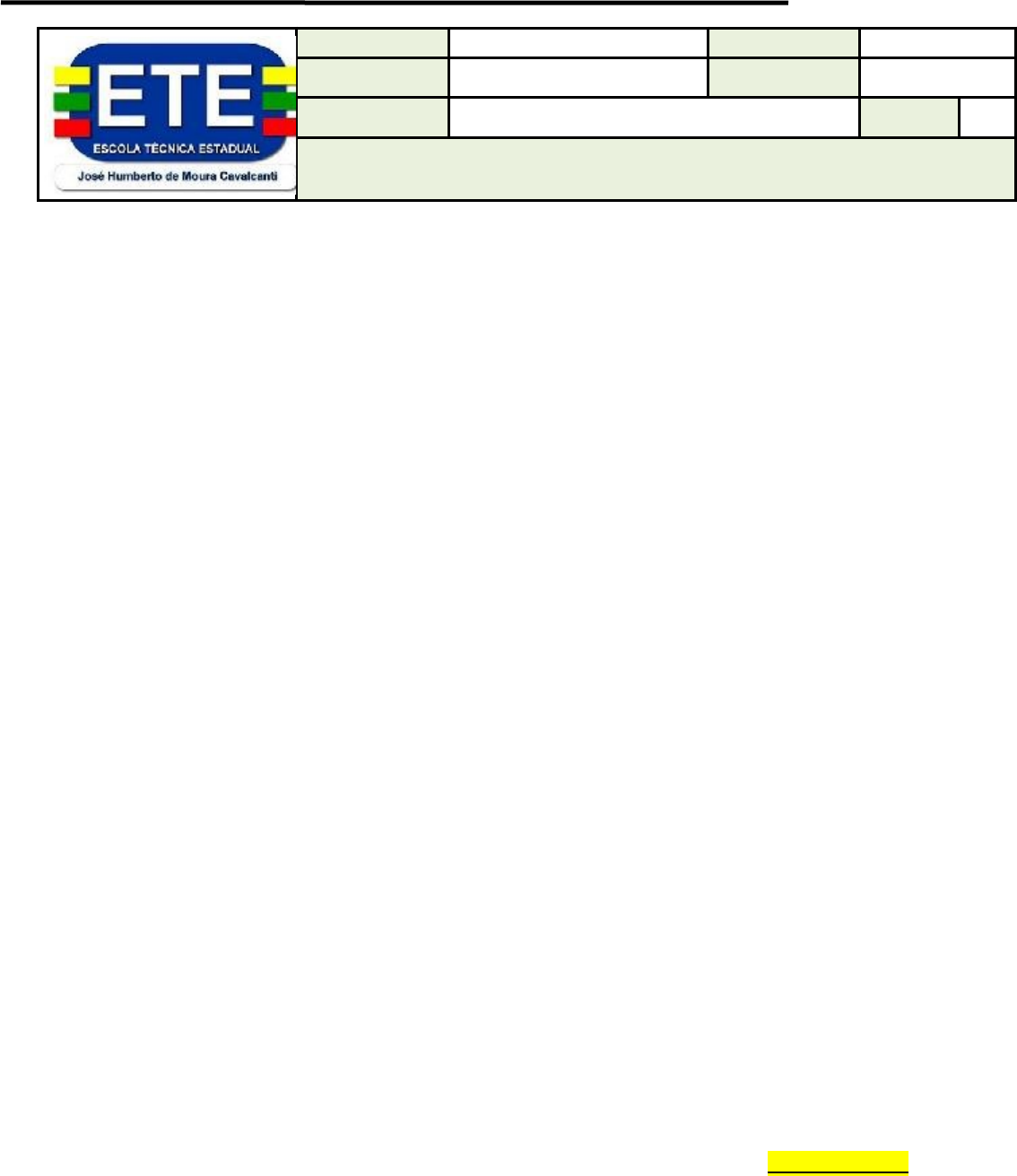 <p>Escola Técnica Estadual José Humberto de Moura Cavalcanti</p><p>2A</p><p>DATA:</p><p>____/______/2024</p><p>DISCIPLINA/TURMA</p><p>INTRODUÇÃO À TÉCNICA E DIETÉTICA</p><p>PROFESSOR</p><p>Lídia Silva</p><p>ALUNO (A):</p><p>AVALIAÇÃO</p><p>INSTRUÇÕES:</p><p>1. COLOQUE SEU NOME COMPLETO NO ESPAÇO INDICADO</p><p>3. RESPONDA DE CANETA AZUL OU PRETA</p><p>2. LEIA COM ATENÇÃO AS QUESTÕES ANTES DE RESPONDER</p><p>4. NÃO RASURE AS QUESTÕES OBJETIVAS</p><p>Exercícios - Fator de correção</p><p>Fórmulas e Conceitos:</p><p>FC=PB÷PL</p><p>PB=PL X FC</p><p>Per capita: quantidade de alimento limpo e cru por pessoa</p><p>1) Fui ao mercado e comprei 4 kg de chuchu, após descascá-lo me restaram apenas 3,5 kg, qual é o fator de correção para esse produto?</p><p>2) O abacaxi é uma das frutas servida como sobremesa de uma Unidade Produtora de Refeições, com per capita (peso líquido para 1 pessoa) de 50 g, fator de correção de 1,33 e custo de R$ 3,99 o quilo. Qual a quantidade de abacaxi necessária para 120 pessoas, qual o custo final desse abacaxi ?</p><p>3) Calcule o fator de correção dos seguintes alimentos:</p><p>a) Tomate: PB = 15,00 kg e PL = 13,67 kg</p><p>b) Berinjela: PB = 4,50 kg e PL = 3,56 kg</p><p>c) Cebola: PB = 5,64 kg e PL = 4,57kg</p><p>d) Nabo: PB = 10,57kg e PL = 9,86kg</p><p>e) Mandioca: PB = 5,32kg e PL = 3,33kg</p><p>4) Em uma determinada Unidade Produtora de Refeições, consomem-se diariamente cerca de 60 kg de tomate na preparação da salada. Considerando que o fator de correção deste alimento é de 1,25, quantos quilos de tomate devem ser adquiridos para o consumo de dois dias?</p><p>5) O fator de correção da alface lisa é de 1,2 e seu per capita (peso líquido para 1 pessoa)é de 10g. Qual a quantidade necessária em kg para atender à demanda de consumo de 1800 comensais?</p><p>Ouça conselhos e aceite instruções,</p><p>e acabará sendo sábio. Provérbios 19:20</p><p>image1.jpeg</p>