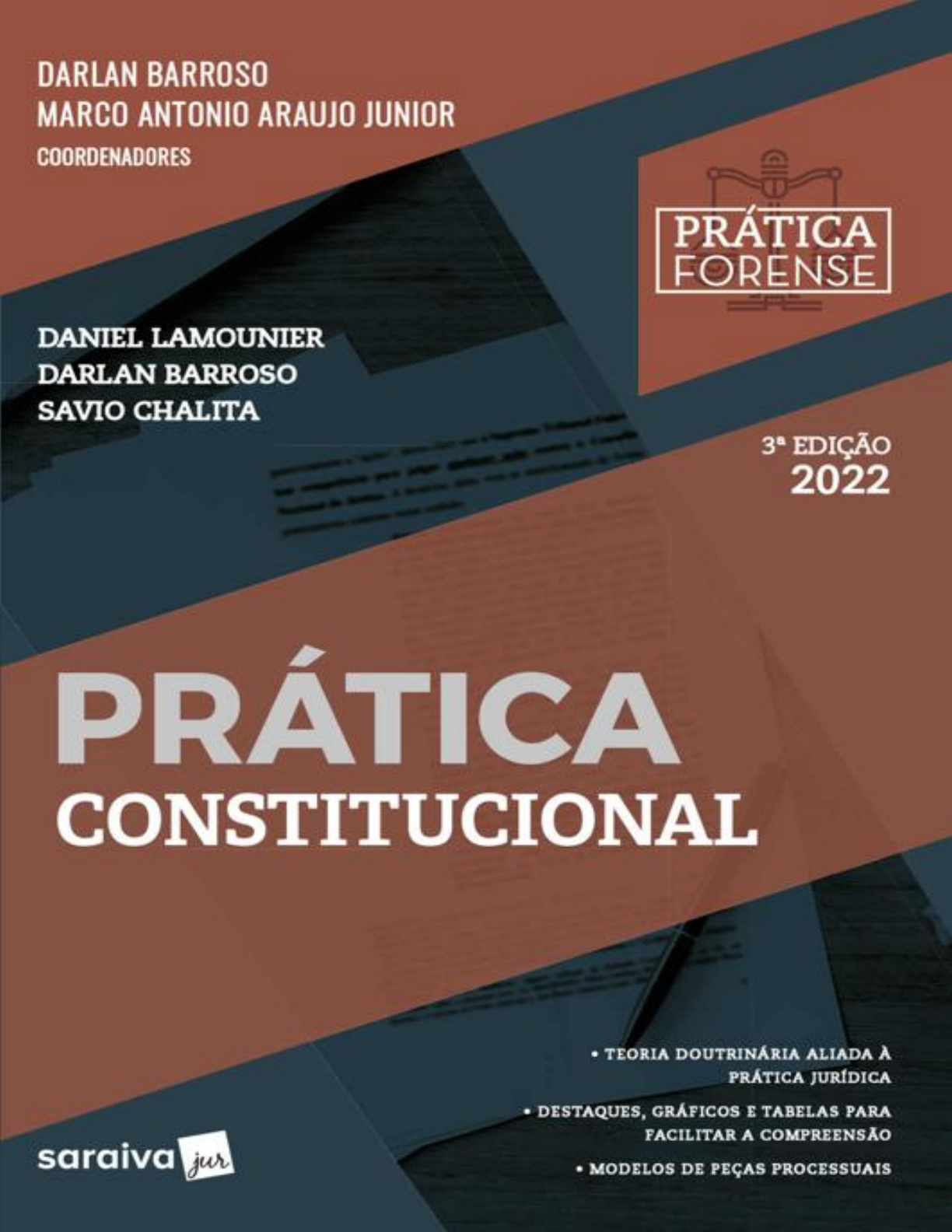 <p>Av. Paulista, 901, 3º andar</p><p>Bela Vista – São Paulo – SP – CEP: 01311-100</p><p>SAC sac.sets@saraivaeducacao.com.br</p><p>Direção executiva Flávia Alves Bravin</p><p>Direção editorial Ana Paula Santos Matos</p><p>Gerência editorial e de projetos Fernando Penteado</p><p>Novos projetos Dalila Costa de Oliveira</p><p>Gerência editorial Isabella Sánchez de Souza</p><p>Edição Daniel Pavani Naveira</p><p>Produção editorial Daniele Debora de Souza (coord.)</p><p>Cintia Aparecida dos Santos</p><p>Paula Brito</p><p>Arte e digital Mônica Landi (coord.)</p><p>Camilla Felix Cianelli Chaves</p><p>Claudirene de Moura Santos Silva</p><p>Deborah Mattos</p><p>Guilherme H. M. Salvador</p><p>Tiago Dela Rosa</p><p>Projetos e serviços editoriais Daniela Maria Chaves Carvalho</p><p>Kelli Priscila Pinto</p><p>Marília Cordeiro</p><p>Nicoly Wasconcelos Razuk</p><p>Diagramação Luciano Assis</p><p>Revisão Diego Carrera</p><p>Capa Tiago Dela Rosa</p><p>mailto:sac.sets@saraivaeducacao.com.br</p><p>Produção do E-pub Guilherme Henrique Martins Salvador</p><p>ISBN 9786555596724</p><p>DADOS INTERNACIONAIS DE CATALOGAÇÃO NA PUBLICAÇÃO (CIP)</p><p>VAGNER RODOLFO DA SILVA – CRB-8/9410</p><p>L236p Lamounier, Daniel</p><p>Prática Constitucional / Daniel Lamounier, Darlan Barroso, Savio Chalita ; coord. Darlan</p><p>Barroso, Marco Antonio Araujo Junior. – 3. ed. – São Paulo : SaraivaJur, 2022. (Coleção</p><p>Prática Forense).</p><p>EPUB 296 p.</p><p>ISBN 978-65-5559-677-9 (impresso)</p><p>1. Direito. 2. Direito Constitucional. 3. Prática Constitucional. 4. OAB. I. Barroso, Darlan.</p><p>II. Chalita, Savio. III. Barroso, Darlan. IV. Araujo Junior, Marco Antonio. V. Título. VI. Série.</p><p>2021-4400 CDD 342</p><p>CDU 342</p><p>Índices para catálogo sistemático:</p><p>1. Direito Constitucional 342</p><p>2. Direito Constitucional 342</p><p>Nenhuma parte desta publicação poderá ser reproduzida por qualquer meio ou forma sem a prévia</p><p>autorização da Saraiva Educação. A violação dos direitos autorais é crime estabelecido na Lei n.</p><p>9.610/98 e punido pelo art. 184 do Código Penal.</p><p>Data de fechamento da edição: 6-12-2021</p><p>Sumário</p><p>Sobre os Coordenadores - Apresentação da Coleção Prática</p><p>Forense</p><p>1 - Petição Inicial</p><p>1.1. Como identificar que a peça é uma petição inicial</p><p>1.2. Qual nome deve constar no preâmbulo da petição</p><p>inicial para indicar a ação?</p><p>1.3. Requisitos da petição inicial</p><p>1.3.1. Endereçamento (art. 319, I, do CPC)</p><p>1.3.2. Qualificação (art. 319, II, do CPC)</p><p>1.3.3. Fatos e fundamentos jurídicos (art. 319,</p><p>III, do CPC)</p><p>1.3.4. Fundamentos jurídicos (Do Direito)</p><p>1.3.5. Pedido (art. 319, IV, do CPC)</p><p>1.3.6. Requerimentos</p><p>1.3.7. Valor da causa</p><p>1.3.8. Encerramento da peça</p><p>1.4. Para marcar</p><p>2 - Habeas Corpus</p><p>2.1. Previsão legal</p><p>2.2. Cabimento</p><p>2.3. Legitimidade</p><p>2.3.1. Legitimidade ativa</p><p>2.3.2. Legitimidade passiva</p><p>2.4. Liminar</p><p>2.5. Competência</p><p>2.6. Pedidos</p><p>2.7. Tese</p><p>2.8. Modelo</p><p>2.9. Exercício</p><p>2.9.1. Perguntas para identificação</p><p>2.9.2. Dica de identificação</p><p>2.9.3. Elaborando o esqueleto da peça processual</p><p>2.9.3.1. Endereçamento</p><p>2.9.3.2. Partes</p><p>2.9.3.3. Cabimento</p><p>2.9.3.4. Fatos</p><p>2.9.3.5. Direito</p><p>2.9.3.6. Pedidos</p><p>2.9.3.7. Valor da causa</p><p>2.9.3.8. Fechamento</p><p>2.10. Para marcar</p><p>2.10.1. Artigos</p><p>2.10.2. Súmula</p><p>3 - Habeas Data</p><p>3.1. Previsão legal</p><p>3.2. Cabimento</p><p>3.3. Não cabimento</p><p>3.4. Requisitos fundamentais</p><p>3.5. Legitimidade</p><p>3.5.1. Legitimidade ativa</p><p>3.5.2. Legitimidade passiva</p><p>3.6. Liminar</p><p>3.7. Competência</p><p>3.8. Pedidos</p><p>3.9. Recursos contra a decisão que veda o acesso,</p><p>retificação ou anotação</p><p>3.10. Principais teses</p><p>3.10.1. Direitos de acesso à informação pessoal</p><p>negada por suposto sigilo</p><p>3.11. Modelo de peça</p><p>3.12. Exercício</p><p>3.12.1. Perguntas para identificação</p><p>3.12.2. Dica de identificação</p><p>3.12.3. Elaborando o esqueleto processual</p><p>3.13. Para marcar</p><p>3.13.1. Artigos</p><p>3.13.2. Súmula</p><p>4 - Mandado de Injunção</p><p>4.1. Previsão legal</p><p>4.2. Cabimento</p><p>4.3. Legitimidade</p><p>4.3.1. Legitimidade ativa</p><p>4.3.2. Legitimidade passiva</p><p>4.4. Efeitos da decisão</p><p>4.5. Competência</p><p>4.6. Pedidos</p><p>4.7. Principais teses</p><p>4.7.1. Ausência de norma que regulamente</p><p>adicional noturno de servidores estaduais</p><p>4.7.2. Ausência de norma que regulamente o</p><p>acesso a cargos públicos por estrangeiros</p><p>4.7.3. Ausência de norma que regulamente</p><p>adicional por atividade penosa de servidores</p><p>públicos</p><p>4.8. Modelo de peça</p><p>4.9. Exercício</p><p>4.9.1. Perguntas para identificação</p><p>4.9.2. Dica de identificação</p><p>4.9.3. Elaborando o esqueleto processual</p><p>4.10. Para marcar</p><p>4.10.1. Artigos</p><p>4.10.2. Súmula</p><p>5 - Mandado de Injunção Coletivo</p><p>5.1. Previsão legal</p><p>5.2. Cabimento</p><p>5.3. Legitimidade</p><p>5.3.1. Legitimidade ativa</p><p>5.3.2. Legitimidade passiva</p><p>5.4. Efeitos da decisão</p><p>5.5. Competência</p><p>5.6. Pedidos</p><p>5.7. Principais teses</p><p>5.7.1. Ausência de norma que regulamente</p><p>adicional noturno de servidores estaduais</p><p>5.7.2. Ausência de norma que regulamente o</p><p>acesso a cargos públicos por estrangeiros</p><p>5.7.3. Ausência de norma que regulamente</p><p>adicional por atividade penosa de servidores</p><p>públicos</p><p>5.8. Modelo de peça</p><p>5.9. Exercício</p><p>5.9.1. Perguntas para identificação</p><p>5.9.2. Dica de identificação</p><p>5.9.3. Elaborando o esqueleto processual</p><p>5.10. Para marcar</p><p>5.10.1. Artigos</p><p>5.10.2. Súmula<