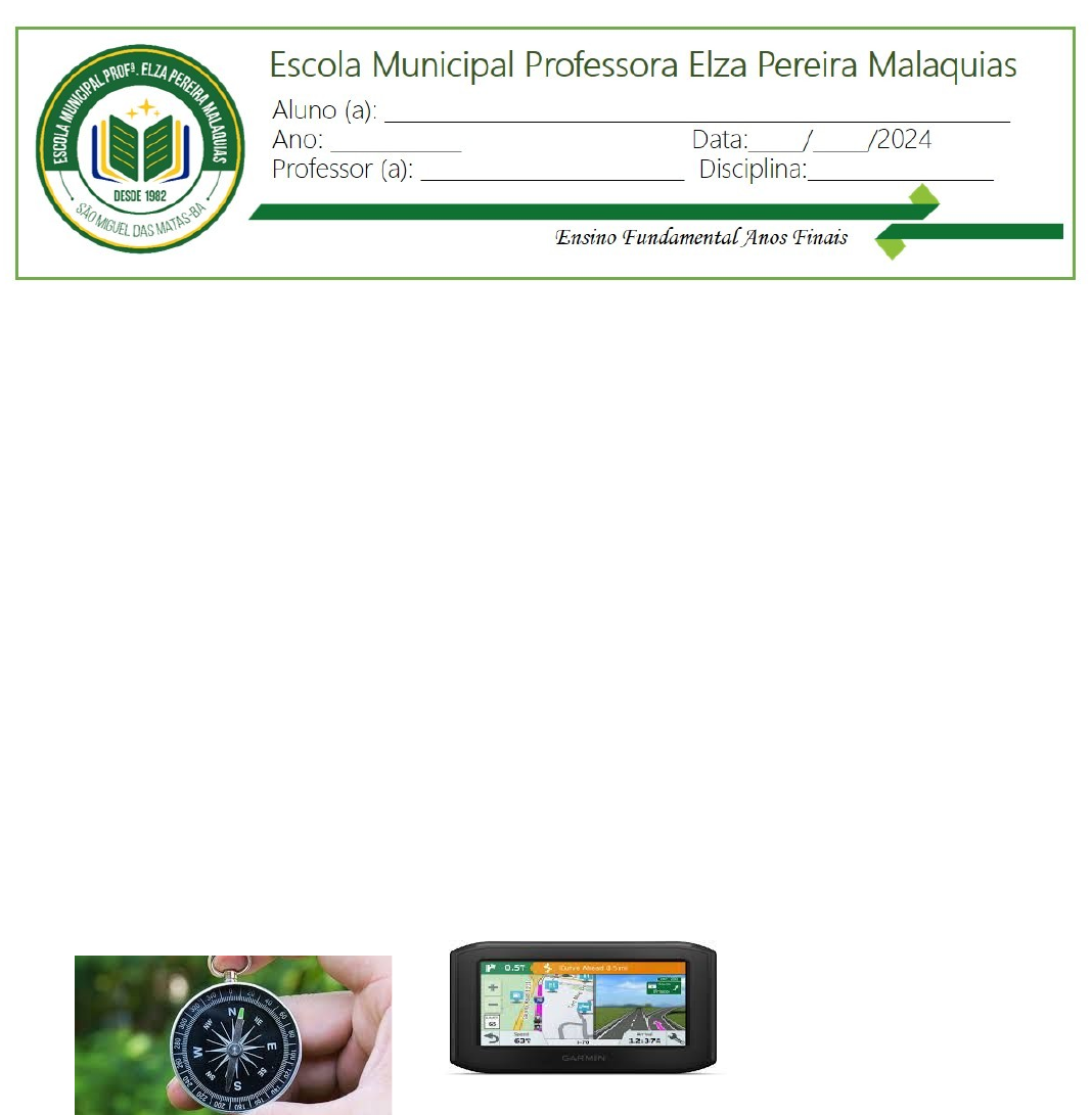<p>ORIENTAÇÃO NO ESPAÇO GEOGRÁFICO 6º ANO</p><p>Quando conhecemos um lugar, temos certo domínio sobre o espaço, conhecemos alguns pontos de referência e sabemos que direção tomar para chegar a um local. Em lugares desconhecidos, porém, é mais difícil nos orientarmos, e o risco de nos perdermos é maior. Se isso acontece onde há muitos pontos de referência, como nas grandes cidades, imagine o que pode acontecer se você estiver numa floresta, num deserto ou em alto mar.</p><p>Desde os tempos remotos, o ser humano descobriu que não era fácil deslocar-se em lugares com poucos pontos de referência. Esse desafio começou a ser vencido quando se percebeu que era possível orientar-se pelos astros. Observando o céu, as pessoas perceberam que o Sol aparece todas as manhãs aproximadamente na mesma direção do horizonte e se põe ao entardecer na direção oposta; que a Lua tem um percurso semelhante ao do Sol; e que mesmo estrelas e constelações como a do Cruzeiro do Sul, são capazes de indicar o rumo a ser seguido.</p><p>Entretanto, a eficácia desse tipo de orientação depende das condições do tempo e do lugar em que se encontra o viajante, o que deixou de ser um problema com o desenvolvimento de um instrumento mais preciso como a bússola, muito usada durante o período das Grandes Navegações.</p><p>A bússola é um instrumento de orientação que se parece com um relógio. Inventada pelos chineses há muito tempo, ela possui uma agulha imantada, que gira sobre um eixo, e um mostrador, no qual está desenhada a rosa dos ventos.</p><p>Hoje existem modernos e sofisticados instrumentos, como radares, rádios e o sistema GPS, para uma orientação mais precisa de um objeto em qualquer lugar da superfície da Terra. Conectado a uma rede de satélites artificiais situados a mais de 20 mil Km de altitude, esse aparelho é muito usado nas navegações marítima e aérea, nas forças armadas, no monitoramento de caminhões e automóveis.</p><p>Os pontos cardeais e a rosa dos ventos</p><p>Tomando como referência o nascer e o pôr do Sol, foram criados os chamados pontos cardeais (leste, oeste, norte e sul). A direção do Sol ao nascer ficou determinada como leste (L) ou este (E) e a direção onde o Sol se põe ficou determinado como oeste (O ou W).</p><p>Com base nos pontos cardeais, foram determinadas direções intermediárias, conhecidas como pontos colaterais: nordeste (NE), noroeste (NO), sudeste (SE) e sudoeste (SO). Existem também os pontos subcolaterais que estudaremos mais a frente.</p><p>Atividade</p><p>1) Associe:</p><p>(A) Bússola (B) GPS (C ) Sol</p><p>( ) os pontos de orientação, chamados pontos cardeais, foram determinados com base na observação deste meio de orientação.</p><p>( ) instrumento de orientação semelhante a um relógio. Possui uma agulha imantada que sempre aponta para o norte.</p><p>( ) meio moderno de orientação, que permite localizar com precisão um objeto em qualquer lugar da superfície da Terra.</p><p>2) Suponha que você esteja viajando para algum lugar e, de repente, se pergunta: “ Onde estou? Para onde vou? Estou perdido!”</p><p>· Escreva dois meios que você poderia utilizar para se localizar:</p><p>A) Por meio de elementosda natureza:</p><p>B) Por meio de instrumentos criados pelo ser humano:</p><p>3) Considerando a ESCOLA como ponto de referência, localize os pontos indicados, utilizando os pontos cardeais (não pode repetir os pontos)</p><p>O teatro localiza-se a</p><p>__________ da escola.</p><p>O estádio de futebol localiza-se a _________________Escola.</p><p>A lanchonete localiza-se a___________da escola.</p><p>A igreja localiza-se a _____________da escola.</p><p>4) Faça a ilustração abaixo em seu caderno de desenho. Siga a legenda.</p><p>image6.jpeg</p><p>image1.jpg</p><p>image2.jpeg</p><p>image3.jpeg</p><p>image4.jpeg</p><p>image5.jpeg</p>