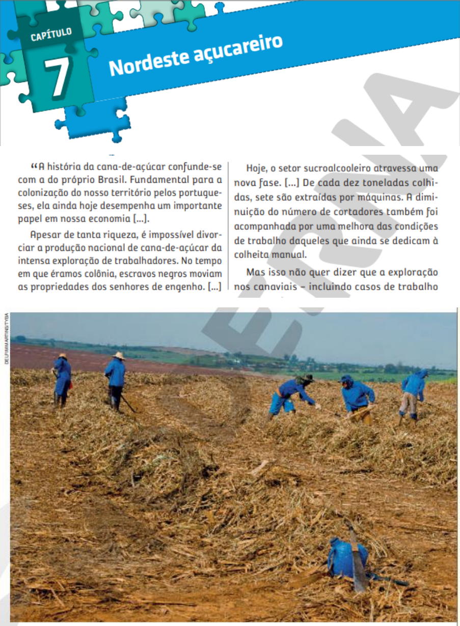 <p>CAPÍTULO 7 Nordeste acucareiro "A da cana-de-acúcar confunde-se Hoje, setor sucroalcooleiro atravessa uma com a do próprio Brasil. Fundamental para a nova fase. [...] De cada dez toneladas colhi- colonização do nosso território pelos portugue- das, sete são extraídas por máquinas. A dimi- ses, ela ainda hoje desempenha um importante nuição do número de cortadores também foi papel em nossa economia [...]. acompanhada por uma melhora das condições Apesar de tanta riqueza, é impossível divor- de trabalho daqueles que ainda se dedicam à ciar a produção nacional de cana-de-acúcar da manual. exploração de trabalhadores. No tempo em que éramos colônia, escravos negros moviam Mas isso não quer dizer que a exploração as propriedades dos senhores de engenho. [...] nos canaviais - incluindo casos de trabalho</p><p>escravo sejo página virada história do Brasil. Ainda existem milhares de cortadores manuais de cana, muitos submetidos a sérias violações trabalhistas. Há registros de operadores de má- quinas colhedoras que trabalharam em turnos de até 27 horas seguidas. Sinal de que muito precisa ser feito para limpar gosto azedo do trabalho nas lavouras de cana." As condições de trabalho no setor sucroalcooleiro. Reporter Brasil, Disponível em: <https:// Trabalhadores rurais separando palhada em canavial no município Acesso em: 6 ago. 2018. de Piracicaba São Foto Açúcar: o melhor investimento Na década de 1520, Portugal passava por dificuldades econômi- cas. Os lucros do comércio de especiarias com o Oriente tinham diminuído consideravelmente devido à concorrência de outros países. Além disso, as terras na América que Portugal considerava suas eram constantemente ameaçadas por invasões estrangeiras e, até aquele momento, eles ainda não haviam encontrado ouro ou pedras preciosas em terras americanas. rei de Portugal precisava encontrar soluções para proteger o litoral da colônia e iniciar a exploração de um produto que garantisse lucros para a Coroa. Diante dessa situação, o governo de Portugal optou pelo cultivo de voltado à exportação. Naquela época, o açúcar era um produto muito valorizado no comércio internacional, e os portugueses dominavam as técnicas de produção, pois já produ- ziam açúcar nos arquipélagos da Madeira, dos Açores e de Cabo Verde. Na América portuguesa, as primeiras mudas de cana foram plantadas na capitania de São Vicente (atual estado de São Paulo). Mas foi na zona litorânea do Nordeste que a produção açucareira teve grande desenvolvimento, principalmente nas capitanias de Per- nambuco e da Bahia, que se tornaram as principais áreas produtoras da América portuguesa. A costa dessas duas capitanias apresentava clima quente e úmido e solo fértil, condições ideais para o cultivo de cana. A Coroa não teve dificuldade em encontrar investidores estrangeiros para financiar a construção de engenhos. Italianos e flamengos foram os que fizeram os maiores investimentos iniciais, sendo mais tarde superados pelos holandeses. Em alguns casos, os próprios colonos portugueses custea- ram as primeiras despesas com a montagem dos engenhos.</p><p>da atual Bélgica e um dos principais centros mercantis europeus no século XVI. Ruínas do Engenho de São Jorge dos Erasmos, em Santos, São Paulo. Foto de 2013. Construído em 1534, o engenho é a mais antiga evidência física preservada da colonização portuguesa em território brasileiro e, por isso, foi tombado como Patrimônio Histórico Nacional pelo Iphan. sucesso da produção açucareira Ao implantar na América o sistema de capitanias hereditárias, em 1534, o gover- no português autorizou os donatários a conceder terras (sesmarias) aos colonos dispostos a investir no cultivo de cana- Após a criação do governo-geral, em 1548, a concessão de terras ficou a car- go do governador-geral. A produção de açúcar tornou-se a principal atividade econômica da América portuguesa, que, ao final do século XVI, já era a maior for- necedora desse produto para o Ocidente. A facilidade de crédito e os incentivos da Coroa foram essenciais para o sucesso do empreendimento. Gravura holandesa do Livro Leia que Ambrósio Fernandes Brandão, proprietário de engenho de viagem reino brasileiro representando o cultivo no Brasil no século XVII, escreveu sobre a produção açucareira. de e de mandioca em um engenho açúcar é a principal coisa com que todo este Brasil se enobrece em Pernambuco, e faz rico. Os cada um na capitania de sua jurisdição, Biblioteca John Carter Brown, repartem as terras com os moradores, dando a cada um deles uma Providence, Estados Unidos. extensão segundo suas forças e possibilidades. As pessoas a quem se dão semelhantes terras, tendo cabedal para fabricarem engenhos de fazer açúcares, os fabricam. [...] No Brasil, em três capitanias que são a de Pernambuco, a de Itamaracá e a de Paraíba lavram e tiram os portugueses das entranhas delas, à custa de seu trabalho, tanto açúcar que basta para carregar, todos os anos, cento e trinta, cento e naus. Majestade não gasta de sua Fazenda, para a fabricação e sus- Cabedal: patrimônio ou capital (recursos tentação de tudo isto, um só vintém." financeiros). Fazenda: neste caso, Ambrósio Diálogos das grandezas do tesouro do Estado Brasil [1618]. de documentos históricos para o a séries. São Paulo: SE/Cenp, 1980. p. 18. português.</p><p>A organização do engenho e a produção de açúcar A palavra engenho, equipamento utilizado para moer cana, passou a designar no período colonial "a fazenda produtora de açúcar em seu conjunto, com seus canaviais, lavoura de subsistência, instalações para a produção de açúcar, casa-grande, senzala e outras dependências" (veja a imagem desta dupla de páginas). o engenho tornou-se, assim, sinônimo da grande propriedade açucareira. A casa do engenho reunia os equipamentos necessários à fabricação do Na moenda se ext