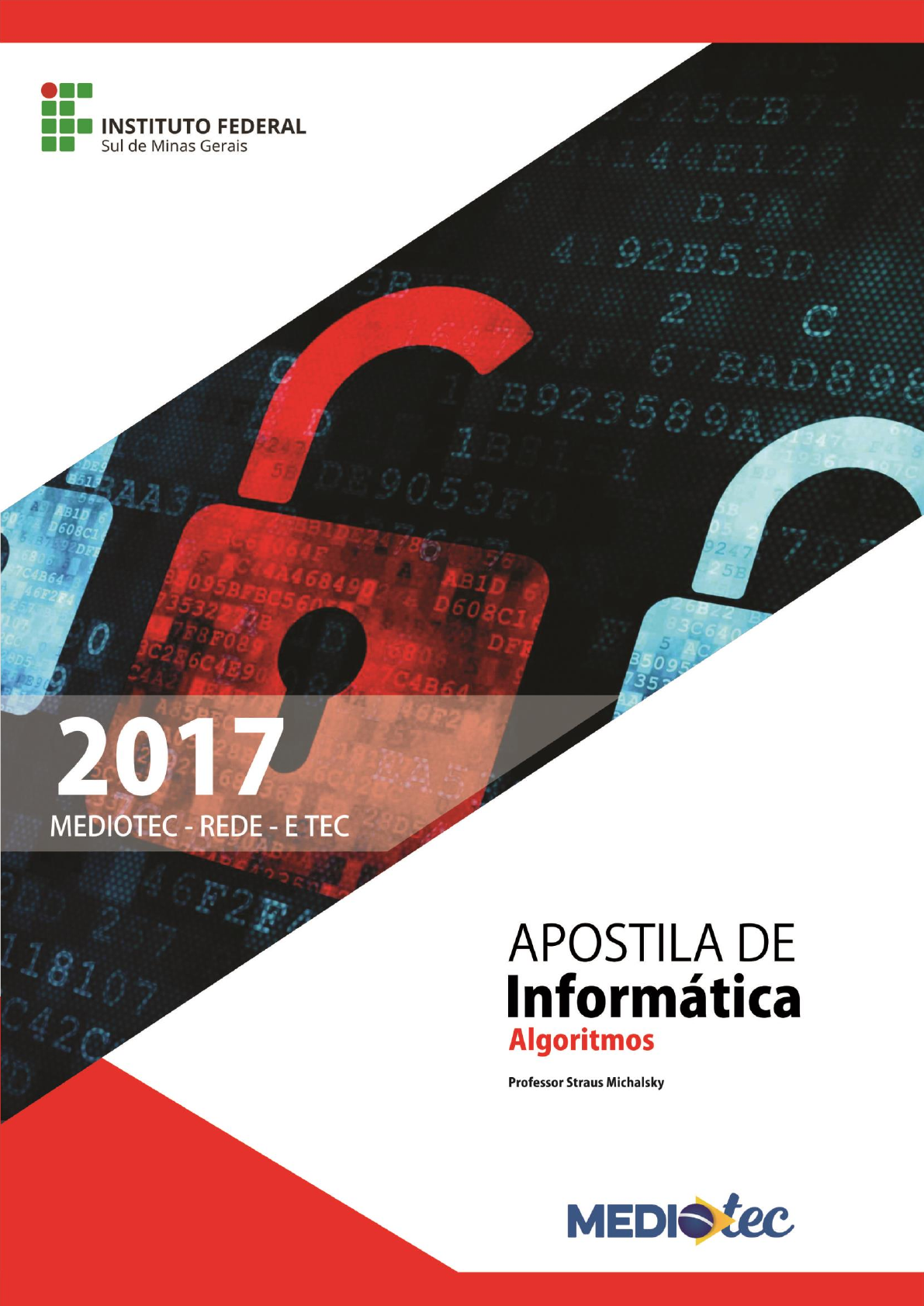 <p>Sumário</p><p>Apresentação da disciplina 32</p><p>Introdução 4</p><p>Exercícios Resolvidos 5</p><p>Exercícios Propostos 7</p><p>Lógica de Programação 7</p><p>Proposição 10</p><p>Lógica Booleana 11</p><p>Exercícios Resolvidos 14</p><p>Exercícios Propostos 14</p><p>Diagrama de Bloco 15</p><p>Exercícios Resolvidos 18</p><p>Exercícios Propostos 20</p><p>Expressões Algorítmicas 21</p><p>Constantes e Variáveis 22</p><p>Comando de Atribuição 24</p><p>Estrutura Condicional 26</p><p>Exercícios Resolvidos 29</p><p>Exercícios Propostos 31</p><p>Estrutura de Repetição 32</p><p>Exercícios Resolvidos 37</p><p>Exercícios Propostos 40</p><p>Anexo I 42</p><p>Scratch 42</p><p>Criar Conta na Plataforma 43</p><p>Criar e Compartilhar Produções 46</p><p>Apresentação da disciplina</p><p>Esta disciplina tem como objetivo ensinar a lógica utilizada na construção de</p><p>programas de computadores. Esses programas de computadores são construídos</p><p>por meio de algoritmos, que são o foco da disciplina. O conteúdo ministrado será</p><p>dividido em 3 partes:</p><p>1 Introdução: nesta primeira parte será discutido o conceito de algoritmo, lógica de</p><p>programação e um pouco sobre a lógica booleana. Nela você irá escrever seus</p><p>primeiros algoritmos.</p><p>2 Diagrama de bloco: nesta parte você vai aprender uma forma mais estruturada</p><p>para representar um algoritmo. Essa forma utiliza alguns símbolos que facilitam a</p><p>leitura dos algoritmo.</p><p>3 Expressões algorítmicas: aqui será onde você conhecerá estruturas mais</p><p>complexas para criação de algoritmos, essas estruturas podem ser representadas</p><p>nos diagramas de blocos ou em uma outra representação de algoritmo, que é o</p><p>pseudocódigo.</p><p>Bons estudos!</p><p>Introdução</p><p>A palavra algoritmo pode até</p><p>não ser muito conhecida, mas,</p><p>provavelmente você já executou um</p><p>algoritmo. Este termo, apesar de não</p><p>ser muito utilizado no dia a dia,</p><p>refere-se a algo muito corriqueiro em</p><p>nossas vidas. Todo programa de</p><p>computador é composto de um</p><p>conjunto de algoritmos. Mesmo</p><p>ações como cozinhar um prato</p><p>seguindo uma receita culinária ou</p><p>resolver um problema do seu</p><p>computador utilizando um tutorial</p><p>são exemplos de situações em que</p><p>você utiliza algoritmos.</p><p>De acordo com o dicionário</p><p>Michaelis1</p><p><http://michaelis.uol.com.br/moderno</p><p>-portugues/busca/portugues-</p><p>brasileiro/algoritmo/> um algoritmo é</p><p>um conjunto de regras e operações e procedimentos, definidos e ordenados, usados</p><p>na solução de um problema, ou de classe de problemas, em um número finito de</p><p>etapas. Uma das primeiras formalizações do conceito de algoritmo aconteceu em</p><p>1936, pela Máquina de Turing, de Alan Turing.</p><p>A definição formal de algoritmo que utilizaremos nesta disciplina é a seguinte:</p><p>Uma sequência finita de instruções, que devem ser executadas em um</p><p>intervalo de tempo finito para alcançarem um objetivo.</p><p>Embora muitos algoritmos sejam mais complexos que uma receita culinária, o</p><p>conceito de algoritmo pode ser ilustrado por esse exemplo. Eles podem repetir</p><p>passos ou necessitar de decisões até que a tarefa seja completada. Mesmo que um</p><p>algoritmo seja corretamente executado, ele pode não resolver um problema se for</p><p>feito incorretamente ou se não for apropriado ao problema.</p><p>Algoritmo não é sinônimo de um programa de computador, ele, na verdade,</p><p>representa os passos necessários para realizar uma tarefa. Sua implementação</p><p>pode ser feita por um computador, por outro tipo de máquina ou mesmo por um ser</p><p>humano. Dois algoritmos diferentes podem realizar a mesma tarefa usando um</p><p>conjunto diferente de instruções em mais ou menos tempo.</p><p>Abaixo vemos um exemplo de uma receita de bolo de liquidificador. Repare</p><p>como este exemplo segue as definições de um algoritmo.</p><p>Receita de bolo de liquidificador</p><p>1. Coloque 3 ovos no liquidificador;</p><p>2. Adicione 2 colheres de margarina no liquidificador;</p><p>3. Adicione 1 copo de açúcar no liquidificador;</p><p>4. Bata os ovos, o açúcar e a margarina no liquidificador por 1 minuto;</p><p>5. Adicione 2 xícaras de farinha de trigo;</p><p>6. Adicione 1 e 1/2 xícara de leite;</p><p>7. Adicione 1 colher de fermento em pó;</p><p>8. Bata a farinha, o leite e o fermento em pó com o restante da massa por</p><p>mais 1 minuto no liquidificador;</p><p>9. Unte a forma;</p><p>10. Despeje a massa na forma untada;</p><p>11. Preaqueça o forno por 5 minutos;</p><p>12. Asse em forno médio (180° C) por 20 minutos.</p><p>Ainda sobre a receita de bolo de liquidificador, podemos afirmar:</p><p>● que ela possui 12 instruções, que é uma sequência finita de</p><p>instruções;</p><p>● que ela pode ser executada em um intervalo de tempo finito;</p><p>● se executada corretamente, alcança o objetivo de se fazer um bolo.</p><p>Exercício Resolvido</p><p>1 – Escreva, na forma de um algoritmo, os passos que você utiliza para tomar</p><p>banho.</p><p>Entrar no banheiro;</p><p>Despir;</p><p>Ligar o chuveiro;</p><p>Passar xampu;</p><p>Esfregar o cabelo</p><p>Enxaguar xampu;</p><p>Ensaboar;</p><p>Enxaguar;</p><p>Pegar toalha;</p><p>Secar;</p><p>Vestir roupa limpa;</p><p>Exercícios Propostos</p><p>1. Escreva, na forma de um algoritmo, os passos para trocar uma lâmpada.</p><p>2. Escreva, na forma de um algoritmo, os passos para trocar um pneu furado.</p><p>3. Escreva, na forma de um algoritmo, os passos para calcular a média de dois</p><p>números.</p><p>4. Escreva, na forma de um algoritmo, a receita de seu prato favorito.</p><p>Lógica de programação</p><p>A Lógica de Programação é a técnica de desenvolver algoritmos para atingir</p><p>determinados objetivos. Sendo assim, se você resolveu os exercícios propostos