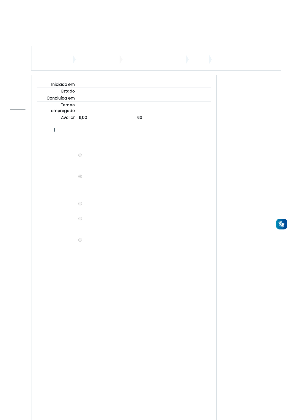 <p>Impresso por Daniel Aguiar de Oliveira, E-mail danieloliwork1997@gmail.com para uso pessoal e privado. Este material pode ser</p><p>protegido por direitos autorais e não pode ser reproduzido ou repassado para terceiros. 11/06/2024, 17:47:20</p><p>Página inicial Minhas disciplinas 2023/2 - Anatomia Humana EXAME Prova de Exame</p><p>Questão</p><p>Correto</p><p>Atingiu 1,00 de</p><p>1,00</p><p>quarta, 26 jul 2023, 18:15</p><p>Finalizada</p><p>quarta, 26 jul 2023, 18:30</p><p>15 minutos 19 segundos</p><p>de um máximo de 10,00( %)</p><p>Depois de uma torção na articulação do cotovelo, José sentiu</p><p>dores na região afetada e imobilizou a articulação. Pode-se</p><p>afirmar que:</p><p>a. A lesão comprometeu a articulação sinovial do subtipo</p><p>plana, o paciente não realizará movimento de</p><p>deslizamento.</p><p>b. O tipo e subtipo da articulação afetada são</p><p>denominados sinovial/gínglimo, por ser considerado</p><p>móvel o paciente terá perda da mobilidade do</p><p>cotovelo temporariamente.</p><p></p><p>c. A lesão comprometeu a articulação sinovial do subtipo</p><p>esferoide, o paciente não realizará flexão e extensão.</p><p>d. A lesão ocorreu em uma articulação cartilagínea,</p><p>afetando a mobilidade da estrutura das articulações e</p><p>seus anexos.</p><p>e. A torção comprometeu a articulação fibrosa, conhecida</p><p>como membrana interóssea rádio-ulnar ou do antebraço.</p><p>A resposta correta é: O tipo e subtipo da articulação afetada</p><p>são denominados sinovial/gínglimo, por ser considerado móvel</p><p>o paciente terá perda da mobilidade do cotovelo</p><p>temporariamente.</p><p></p><p></p><p></p><p></p><p></p><p></p><p></p><p></p><p></p><p></p><p></p><p>Impresso por Daniel Aguiar de Oliveira, E-mail danieloliwork1997@gmail.com para uso pessoal e privado. Este material pode ser</p><p>protegido por direitos autorais e não pode ser reproduzido ou repassado para terceiros. 11/06/2024, 17:47:20</p><p>Questão</p><p>Incorreto</p><p>Atingiu 0,00</p><p>de 1,00</p><p>Considere as características anatômicas e funcionais dos</p><p>músculos estriados esqueléticos e assinale a alternativa</p><p>correta.</p><p>a. Entre as propriedades da fibra muscular estão: a</p><p>contratilidade, o relaxamento e o envelhecimento.</p><p>b. O ventre muscular é responsável pela contração</p><p>muscular. Esta região microscópica é formada por fibras</p><p>musculares inervadas pela ramificação terminal de um</p><p>neurônio motor.</p><p>c. Os músculos esternocleidomastóide e bíceps braquial,</p><p>estes músculos foram nomeados pelo critério de</p><p>nomenclatura: número de cabeças e localização.</p><p>d. Forma e localização são critérios usados na</p><p>nomenclatura dos músculos Orbicular do olho e Reto</p><p>femoral.</p><p>e. Na corrida ou caminhada (contração isométrica) as</p><p>conexões terminais dos músculos servem como</p><p>alavanca. Essas conexões são denominadas como</p><p>origem e inserção.</p><p></p><p>A resposta correta é: Forma e localização são critérios usados</p><p>na nomenclatura dos músculos Orbicular do olho e Reto</p><p>femoral.</p><p></p><p></p><p></p><p></p><p></p><p></p><p></p><p></p><p></p><p></p><p></p><p>Impresso por Daniel Aguiar de Oliveira, E-mail danieloliwork1997@gmail.com para uso pessoal e privado. Este material pode ser</p><p>protegido por direitos autorais e não pode ser reproduzido ou repassado para terceiros. 11/06/2024, 17:47:20</p><p>Questão</p><p>Correto</p><p>Atingiu 1,00 de</p><p>1,00</p><p>Questão</p><p>Incorreto</p><p>Atingiu 0,00</p><p>de 1,00</p><p>Considere o estudo do aparelho locomotor e analise as</p><p>afirmativas.</p><p>I. Ílio, costelas e esterno são exemplos de ossos que apresentam</p><p>medula óssea vermelha.</p><p>II. O crânio feminino é maior e mais pesado quando comparado</p><p>ao crânio masculino. Apresenta acidentes ósseos mais</p><p>proeminentes e mandíbula ovoide.</p><p>III. Articulações representam o componente ativo do aparelho</p><p>locomotor e são classificadas de acordo com a amplitude do</p><p>movimento.</p><p>IV. O arcabouço ósseo que protege o coração e os pulmões é</p><p>denominado caixa torácica. Os ossos que compõem esse</p><p>arcabouço são classificados como plano (esterno) e alongado</p><p>(costelas).</p><p>V. Quando o indivíduo mantém a postura contra a ação da</p><p>gravidade, a contração neste caso é isométrica. E quando o</p><p>indivíduo se locomove, mastiga ou fala, a contração muscular é</p><p>isotônica.</p><p>Assinale a alternativa que apresenta a sequência correta.</p><p>a. As afirmativas I e IV estão corretas; porém as afirmativas</p><p>II e V estão incorretas.</p><p>b. As afirmativas II, IV e V estão corretas.</p><p>c. As afirmativas I, IV e V estão corretas; porém as</p><p>afirmativas II e III estão incorretas.</p><p></p><p>d. As afirmativas III, IV e V estão corretas; porém as</p><p>afirmativas I e II estão incorretas.</p><p>e. As afirmativas I, II e III estão corretas.</p><p>A resposta correta é: As afirmativas I, IV e V estão corretas;</p><p>porém as afirmativas II e III estão incorretas.</p><p>Assinale a alternativa correspondente ao segmento do SNC que</p><p>apresenta uma série de sulcos e fissuras que o subdividem em</p><p>regiões denominadas de folhas, lóbulos e lobos.</p><p>a. Cerebelo</p><p>b. Telencéfalo </p><p>c. Diencéfalo</p><p>d. Bulbo</p><p>e. Ponte</p><p>A resposta correta é: Cerebelo</p><p></p><p></p><p></p><p></p><p></p><p></p><p></p><p></p><p></p><p></p><p></p><p>Impresso por Daniel Aguiar de Oliveira, E-mail danieloliwork1997@gmail.com para uso pessoal e privado. Este material pode ser</p><p>protegido por direitos autorais e não pode ser reproduzido ou repassado para terceiros. 11/06/2024, 17:47:20</p><p>Questão</p><p>Incorreto</p><p>Atingiu 0,00</p><p>de 1,00</p><p>O cérebro representa a maior parte do encéfalo, analise as</p><p>afirmativas co