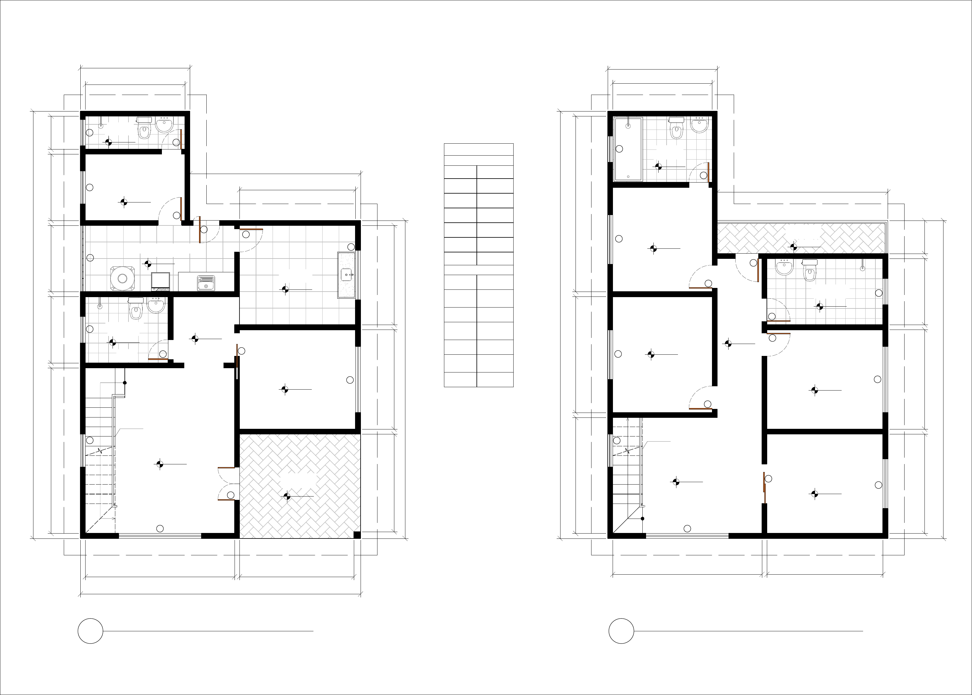 <p>ÁREA DE SERVIÇO</p><p>Area = 9.00m²</p><p>QUARTO DE</p><p>SERVIÇO</p><p>Area = 6.00m²</p><p>BANHO</p><p>Area = 3.00m²</p><p>COZINHA</p><p>Area = 10.50m²</p><p>ESCRITÓRIO</p><p>Area = 10.50m²</p><p>TERRAÇO</p><p>Area = 11.46m²</p><p>SALA</p><p>Area = 22.50m²</p><p>BANHEIRO</p><p>Area = 5.00m²</p><p>HALL</p><p>Area = 3.70m²</p><p>+ 0.13</p><p>+ 0.15</p><p>+ 0.15</p><p>+ 0.13</p><p>+ 0.13</p><p>+ 0.15</p><p>+ 0.13</p><p>+ 0.13</p><p>0102</p><p>03</p><p>04</p><p>05</p><p>06</p><p>07</p><p>08</p><p>09</p><p>10</p><p>11</p><p>12</p><p>13</p><p>14</p><p>15</p><p>1</p><p>,</p><p>0</p><p>0</p><p>2</p><p>,</p><p>0</p><p>0</p><p>2</p><p>,</p><p>0</p><p>0</p><p>2</p><p>,</p><p>0</p><p>0</p><p>5</p><p>,</p><p>0</p><p>0</p><p>3,00</p><p>3,30</p><p>5,15</p><p>3,50</p><p>9</p><p>,</p><p>6</p><p>0</p><p>2</p><p>,</p><p>9</p><p>5</p><p>3</p><p>,</p><p>0</p><p>0</p><p>3</p><p>,</p><p>0</p><p>0</p><p>2,50</p><p>1,20</p><p>0</p><p>,</p><p>9</p><p>0</p><p>0</p><p>,</p><p>9</p><p>0</p><p>E=0.18</p><p>P=0.29</p><p>1</p><p>2</p><p>,</p><p>9</p><p>0</p><p>4,50 3,45</p><p>8,45</p><p>PLANTA BAIXA - PAV. TÉRREO</p><p>ESC: 1/50</p><p>01</p><p>+ 0.15</p><p>PROJEÇÃO DA COBERTA PROJEÇÃO DA COBERTA</p><p>QUARTO</p><p>Area = 10.50m²</p><p>+ 3.05</p><p>BIBLIOTECA</p><p>Area = 10.50m²</p><p>+ 3.05</p><p>BANHEIRO</p><p>Area = 7.00m²</p><p>+ 3.03</p><p>VARANDA</p><p>Area = 5.15m²</p><p>+ 3.03</p><p>SUÍTE</p><p>Area = 9.45m²</p><p>+ 3.05</p><p>BANHO</p><p>Area = 6.00m²</p><p>+ 3.03</p><p>QUARTO</p><p>Area = 10.50m²</p><p>+ 3.05</p><p>SALA</p><p>Area = 15.75m²</p><p>+ 3.05</p><p>CIRC.</p><p>Area = 6.48m²</p><p>+ 3.05</p><p>PLANTA BAIXA - PAV. SUPERIOR</p><p>ESC: 1/50</p><p>02</p><p>14</p><p>0</p><p>,</p><p>9</p><p>0</p><p>15</p><p>E=0.18</p><p>P=0.29</p><p>D</p><p>e</p><p>s</p><p>c</p><p>e</p><p>S</p><p>o</p><p>b</p><p>e</p><p>5</p><p>,</p><p>3</p><p>0</p><p>3</p><p>,</p><p>5</p><p>0</p><p>3</p><p>,</p><p>5</p><p>0</p><p>4,50 3,50</p><p>3</p><p>,</p><p>0</p><p>0</p><p>3</p><p>,</p><p>0</p><p>0</p><p>2</p><p>,</p><p>0</p><p>0</p><p>1</p><p>,</p><p>0</p><p>0</p><p>5,15</p><p>3,00</p><p>3,30</p><p>1</p><p>2</p><p>,</p><p>9</p><p>0</p><p>9</p><p>,</p><p>6</p><p>0</p><p>ITEM</p><p>MEDIDAS</p><p>P1</p><p>P2</p><p>1.00 x 2.10</p><p>PORTAS</p><p>JANELAS</p><p>J1</p><p>J2</p><p>ITEM MEDIDAS</p><p>2.50 x 1.50/ 0.60</p><p>0.70 x 2.10</p><p>1.00x 1.00/ 1.10</p><p>P3</p><p>0.60 x 2.10</p><p>J3</p><p>J4</p><p>2.00 x 1.50/ 0.60</p><p>0.80 x 0.60/ 1.50</p><p>QUADRO DE ESQUADRIAS</p><p>P1</p><p>P2</p><p>P3</p><p>P4</p><p>P5</p><p>P4</p><p>P3</p><p>P4</p><p>0.70 x 2.10</p><p>P5</p><p>0.80 x 2.10</p><p>J1</p><p>J2</p><p>J4</p><p>J3</p><p>J5</p><p>J6</p><p>J2</p><p>J4</p><p>J5</p><p>J6</p><p>1.50 x 1.00/ 1.10</p><p>2.00 x 1.00/ 1.10</p><p>J1</p><p>J2</p><p>J5</p><p>J3</p><p>J4</p><p>J4</p><p>J5</p><p>J5</p><p>P6</p><p>1.20 x 2.10</p><p>P6</p><p>P4</p><p>P4</p><p>P4</p><p>P4</p><p>P4</p><p>P3</p><p>Sheets and Views</p><p>FOLHA A2</p>