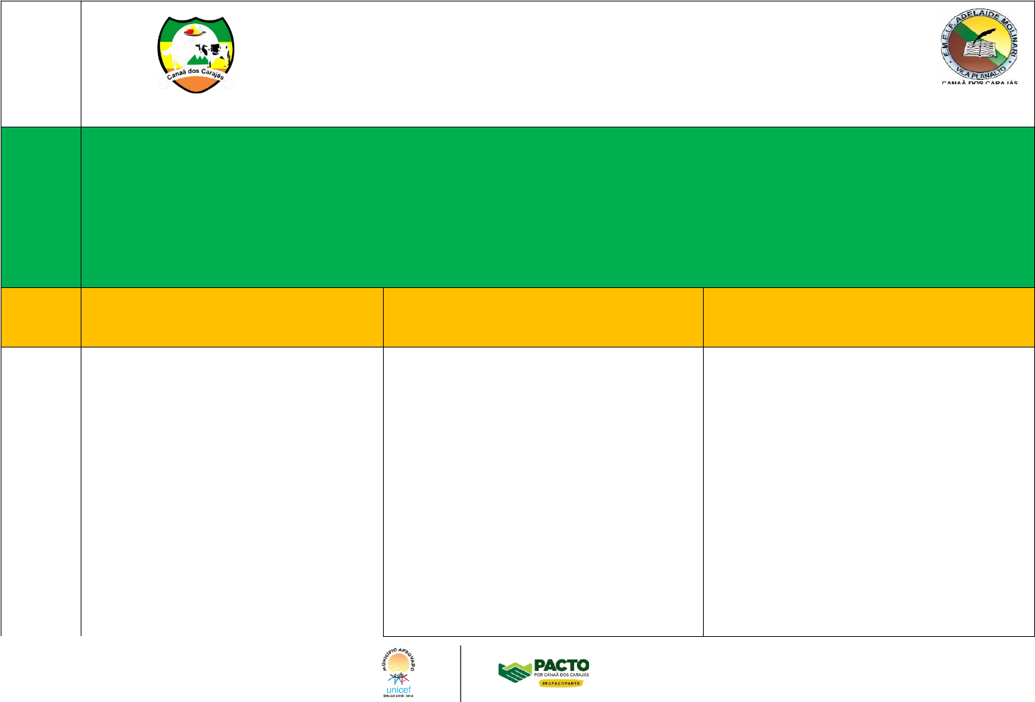 <p>PREFEITURA MUNICIPAL DE CANAÃ DOS CARAJÁS SECRETARIA MUNICIPAL DE EDUCAÇÃO – SEMED</p><p>EMEIF. ADELAIDE MOLINARI</p><p>ENSINO FUNDAMENTAL: 3º ao 5 ano</p><p>Tema: Semana da pátria</p><p>Título : AS CORES DO POVO BRASILEIRO</p><p>Coordenador(a): Rannyelle Aguiar</p><p>Professoras: _______________________________________________________________________________________</p><p>Município: Canaã dos Carajás Estado: PA</p><p>ATIVIDADES</p><p>SUGESTÕES</p><p>OBJETIVOS</p><p>1ºAula</p><p>Semana da pátria</p><p>Explique de forma simples o que é miscigenação,fale sobre a mistura de diferentes etinias e culturas que formam o povo brasileiro.</p><p>· Leitura e Discussão:Escolha um livro infantil que aborde a diversidade cultural do Brasil e faça uma leitura em sala de aula.</p><p>· Apresentar o conceito de miscigenação e sua importância na formação da identidade brasileira.</p><p>02/09</p><p>2° aula</p><p>03/09</p><p>Roda de Conversa:Faça uma roda de conversa onde os alunos compartilham o que aprenderam sobre a miscigenação e como ela influencia a vida no Brasil.</p><p>· Livros Infantis: “O Jeitinho Brasileiro” de Jorge Amado, “O Pequeno Príncipe Brasileiro” de Pedro Bandeira.</p><p>· https://youtu.be/X8FWkOXr-zo?si=JJ-ipCE0yV7igeo8</p><p>·</p><p>· Materiais Artísticos: Papel, tintas, revistas para colagem, tesoura e cola.</p><p>· Explorar a miscigenação através de atividades práticas e interativas.</p><p>3° aula</p><p>04/09</p><p>- Roda de conversa. Explique o que é a Semana da Pátria e sua importância. Pergunte aos alunos o que eles já sabem sobre a Independência do Brasil.</p><p>Apresentação Mostre um vídeo curto sobre a história da Independência e a Semana da Pátria.</p><p>https://youtu.be/cpX2qJKJkes?si=VZgFpFxg5Cc9BM2H</p><p>· Leitura e Discussão: Leia um texto adaptado sobre o Dia da Independência e a figura de Dom Pedro I. Discuta o contexto histórico e a importância do evento.</p><p>Linha do Tempo:Faça uma linha do tempo com eventos importantes relacionados à independência. Os alunos podem desenhar e colar imagens representativas.</p><p>· Compreender o significado da Semana da Pátria e a importância da Independência do Brasil.</p><p>4ª Aula 05/09</p><p>Divida a turma em grupos e peça para pesquisarem sobre símbolos nacionais (bandeira, hino, brasão, etc.). Cada grupo apresenta suas descobertas para a turma.(Se necessário oferecer textos com imagens para suporte de pesquisa).</p><p>· Atividade Artística:Os alunos criam cartazes ou maquetes com os símbolos nacionais.</p><p>· Desenvolver o sentimento de pertencimento e respeito pelo país.</p><p>5ª Aula 06/09</p><p>Peça aos alunos que escrevam uma pequena redação ou façam um desenho sobre o que aprenderam e o que a Semana da Pátria significa para eles.</p><p>Ensine o Hino Nacional e a importância de cantá-lo com respeito. Pratique o canto com a turma.</p><p>Leitura de Textos:Leiam textos sobre o papel do cidadão e como podemos contribuir para a nossa nação.</p><p>· Organize uma pequena exposição com os trabalhos realizados durante a semana e convide outras turmas ou pais para visitar.</p><p>· Proporcionar uma experiência educativa que permitam as crianças entenderem a importancia do 7 de Setembro.</p><p>ANEXOS A SEGUIR.</p><p>Aula 1</p><p>Aula 2 https://youtu.be/X8FWkOXr-zo?si=JJ-ipCE0yV7igeo8</p><p>image5.png</p><p>image6.jpeg</p><p>image7.jpeg</p><p>image8.jpeg</p><p>image9.jpeg</p><p>image1.jpg</p><p>image2.png</p><p>image3.png</p><p>image4.png</p>