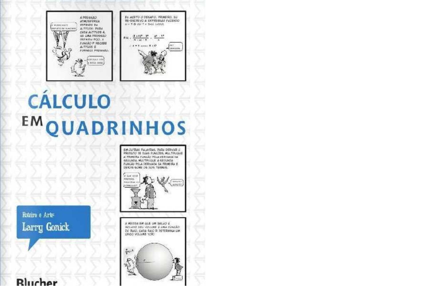 <p>A BL a A PARA CADA LIMA N FUNGÃO P CÁLCULO EM QUADRINHOS DERIVAR TIPLIQUE A GRAUNDA PELA 06 Roteiro E Larry Gonick EM GLE # DO VOLUME</p><p>The Cartoon Guide to Calculus 2012 by Larry Gonick com a da Harper Publishers 2014 Edgard Blicher Ltda. 0 EM QUADRINHOS Blucher Ficha Larry Paulo - SP - Cálculo Gonick tradução Tel.: de Marcelo - São Blucher, 2014 Segundo conforme original The Guide to ed do de Academia de de 2000 1. 2 a reprodução total ou quaisquer autorização da 14-0326 CDD Larry Gonick Todos reservados Editora para</p><p>CONTEÚDO AGRADECIMENTOS 6 CONDIÇÕES INICIAIS 8 CAPITULO - 1 9 VELOCIDADE ESCALAR, VELOCIDADE, CAPITULO 0 19 APRESENTANDO AS FUNÇÕES AGRADECIMENTOS CAPÍTULO 1 61 DEPARTAMENTO DE EM OUTRA A CABECA DO AUTOR COM LIMITES ESTE JOHN MEU PROFESSOR DE CALCULO LYNN SHLOMO DAVID MUMFORD BARKY MAZUR, ANDREW GLEASON, LAKS E GEORGE 2 85 FILHO A DE WHOLE FOODS, FONTE DE MUITO CHOCOLATE QUE A DERIVADA ME DURANTE A ESCRITA DESTE INDO PARA o MIT, VICTOR GUILLEMIN ORIENTOU A FINALIZADA RAO DO INSTITUTO TATA EM ME CAPITULO 3 109 A APRECIAR A ANALISE NO SEM MUITA MAIS CONTUNTO CADEA, CADEIA DE PESSOAS NE AJIDCU A PENSAR NOVAMENTE A RESPEITO DO JAMES MAGEE CAPITULO 4 125 COM os PRIMEIROS E FEZ QUE VE AO CURRICULO ALGUMAS COM DAVID MUMFORD ESCLARECERAM SOBRE RIGOR E USANDO PARTE 1 TAXAS RELACIONADAS BENHAM, ANDREW MOSS € MARK WHEELIS DISCURSOS SOBRE 5 133 EDOS PARALGLOS ASSUNTOS AGRADEÇO A USANDO PARTE 2 OTIMIZAÇÃO FONTOGRAPHER ESTE SOFTWARE QUE TORNOU POSSIVEL A DO TEXTO MATEMATICO DE CAPITULO 6 153 ATUANDO LOCALMENTE 7 163 0 TEOREMA DO VALOR MÉDIO 169 APRESENTANDO A INTEGRAL CAPITULO 9 177 10 185 A INTEGRAL DEFINDA CAPITULO 11 195 FUNDAMENTALMENTE 12 203 INTEGRAIS QUE MUDAM DE FORMA CAPITULO 13 213 USANDO INTEGRAIS 14 237 QUE VEM DEPOIS? INDICE 241</p><p>CONDIÇÕES INICIAIS ASRA AS MESMAS PAGINAS CHEIAS LIVROS DE o MESMO E VOCE VERA ALGO PRNCIA ESTRANHO TODOS MEGMO ELES SÃO 1 PARECIDOS!! PARA DAVID MUMFORD, MENTOR, BENEMÉRITO E AMIGO OUTRO LADO, QUERO USAR MINIA CANETA PARA EXPLICAR PENSAMENTO TODAS ESTAS BRILHANTE E ELEGANTE FOR TRAS DE TODAS ESSAS EM ALGUMAS BELAS MAS A CONTA VEM NAS ESTE ESTA CHEIO DELAS... f ENTRE OUTRAS AQU E AGORA EU OFEREÇO UMA GARANTIA ELE NÃO PESA ESTE LIVRO DE CALCULO ALÉM DISSO, DIFERENTE! PARA TIPO DE LETRA!</p><p>CAPÍTULO - 1 PENSE BEM SOBRE AS E VOCE PODERA CHEGAR A ALGUMAS UM POUCO POR EXEMPLO, NA DE ELELA PENSOU A RESPEITO DA VELOCIDADE ESCALAR, VELOCIDADE, MUDANÇA SE CONVENCEU QUE MOVIMENTO E SEU RACIOCINO ERA MAIS ou MENOS ESTE: MUDANÇA MOVMENTO UMA 1 DE POSIÇÃO LONGO DC A ESTA CRESCEM IMPERCEPTIVELMENTE DUTRAS CABELO CRESCE LENTAMENTE E CORTADO TEMPERATURAS SOBEM 6 DESCEM. A FUMACA FORMA ROLOS NO AR... INSTANTE PLANETAS NO E TEMPO, 0 TEMPO NUNCA PARA NÃO DE POSIÇÃO NÃO PODE MOVIMENTO MAS o TEMPO NUM DADO UMA DE MOVIMENTO NUNCA COMO EU AQUI?</p><p>NO FINAL ANOS 1600 MAIS MENOS 2000 ANOS MESMO o DE DOIS OUTROS SUJEITOS TIMERAM UMA SE MOVIMENTA APRESENTANDO AS FUNÇÕES ISSO TIROU AS PALAVRAS DA No QUAL ALGO RELACIONAMENTOS EU TIVE A DEIA E VOCE COMECAMOS COM UMA DAS BELAS E A FUNÇÃO. TUDO NESTE D QUE UMA ISAAC NEWTON GOTTFRIED D PROBLEMA DESTA AINDA QUE UMA DE EM MOVIMENTO VA HUM... SERA QUE EU QUE VOCE A LUGAR ALGUM EM SOU UMA? FECUNDA DETERMINADO E AINDA ALGO QUE ALGO A VOCE PODE DIZER TODO CARREGA CONSIGO INDICADOR QUE MOSTRA A E A DE EM AH AGORA EU A EM OUTRAS PODEMOS TODAS AS COISAS POSSUEM UMA ESPÉCIE DE TAL COMO AQUELE DOS CARROS (EXCETO PELO FATO DE ESSE TAMBÉM INDICAR A</p><p>EXEMPLO, A POSÇÃO DE UM CARRO UMA DO TEMPO t. VOCE PODE PENSAR EM UMA FUNÇÃO É UMA ESPÉCIE DE CAIXA-PRETA COM ENTRADA E SAIDA ou UM 5 COMO LENDO o TEMPO ENGOLINDO ESTE COMO ENTRADA) DE UMA E AFONTANDO PROCESSADOR DE FUNÇÃO A E EXPELE PARA A DO CARRO NUMA PISTA. PARA CADA ENGOLIDO EXPELE UM PRONUNCIADO DE XIS" CCMO UMA REGRA QUE TRANSFORMA EM ENTRA SAI t Não SE QUE É É LIMPO E ABSTRATO... s(t) MAIS EXEMPLOS A PRESSÃO À QUE UM ESFÉRICO 0 MUNDO ESTA DEPENDE DA ALTITUDE PARA É SEU VOLUME É FUNÇÃO CHEIO DE CADA ALTITUDE A, EXISTE UMA DO RAO. CADA RAIO r DETERMINA PRESSÃO DEFINDA P(A). A UM VOLUME P ENGOLE ALTITUDE EXPELE NÃO FALE 4 COM A BOCA 3 SE VOCE NÃO GOSTA QUE EXPELIDO VAGANDO PELO AR COMO GAS DO PENSE NOS COMO SE ELES DISPOSTOS NUMA NESTE CASO, VOCE IMAGINAR UMA FUNÇÃO f UMA LINHA E MEKAMENTE APONTANDO MARA OS VALORES CORRESPONDENTES DE SAIDA NUMA OUTRA UM MENOS NUMA TRILHA RETA DE A ALTITUDE FUNÇÃO AO LONGO DA CADA POSIÇÃO x CORRESPONDE A UMA ALTITUDE A(x) f(x)</p><p>FOR A RAZÃO VEM DA DELA AGRADA-ME VE-LA LIMITES NEWTON LEISNIZ A DA UMA GRANDE A RESPEITO DE COISAS PEQUENAS DE FUNÇÕES FOR ASSIM DIZER. DADO PONTO SEGUMOS A SETA ATÉ o LOCAL DE A IDELA DELES ERA ESTA: SE s(t) ( A POSIÇÃO INSTANTE t, E UM MOMENTO NO QUANDO t A a, A NO INSTANTE a É f(a) AO DE Dit) = ME DA A t-a MAIOR DE UMA FUNÇÃO DE t NÃO DEFINIDA EM = a, MAS DEFINDA QUANDO PRÓXIMO DE a A v(a) AGORA APRESENTA UMA NOVA NÃO APENAS DE UMA FUNÇÃO NO MEDIDA QUE t SE APROXIMA DE PONTO MAS COMO f(x) SE NAS MAS MUITO PRÓXIMO MESMO, ESPERAMOS SE DE DE FATO, ESTAR PONTOS x M MESMO QUE A DA VELOCIDADE EM a. FUNÇÃO SEJA DEFINIDA NO PONTO QUERER ESCREVER a + 0,000001 MAS POR QUE? E DIZEMOS QUE a(a) o LIMITE DE QUANDO t TENDE A MISEROS MAS CERTAMENTE a TINHA</p><p>POR EXEMPLO, ACONTECE NUMA EM ANGULO LIGEIRAMENTE SUPERIOR A 11,77 EM PARTINDO DO EM = DESCERA CONFORME A FORMULA A DERIVADA t2 METROS VELOCIDADE AGORA AO CORACIO DC CÁLCULO A TAXA DE VARIAÇÃO DE LIMA POR (SE VOCE COM EXEMPLO, A - QUE UM CARRO DESCENDO UMA UNIDADES, A A PONTO NO t 3 INSTANTE a, TODOS = 2,9 -0,59 5,9 PRONTOS? -0,1 2.99 -0,01 5,99 VAMOS SUPOR a = o QUE ACONTECE COM 2,999 -0,001 -0,009999 9,999 t A a 3,001 0,001 A DE PELO MENCS DUAS 0,01 6.01 3,1 0,61 6,1 1. ADMITE ENTRADAS DE UMA LINHA DO 2. = s(t), NESTE CASO e APONTA FAKA A DO y t2 UMA CARRO NA TODA A IMPRESSÃO DE ATINGIR LIMITE A 6 MEDIDA QUE t - 3 t 6,01 s(6)) 3,01 AFINAL ESTA DRIGINDO? 3 5.99 2,99 