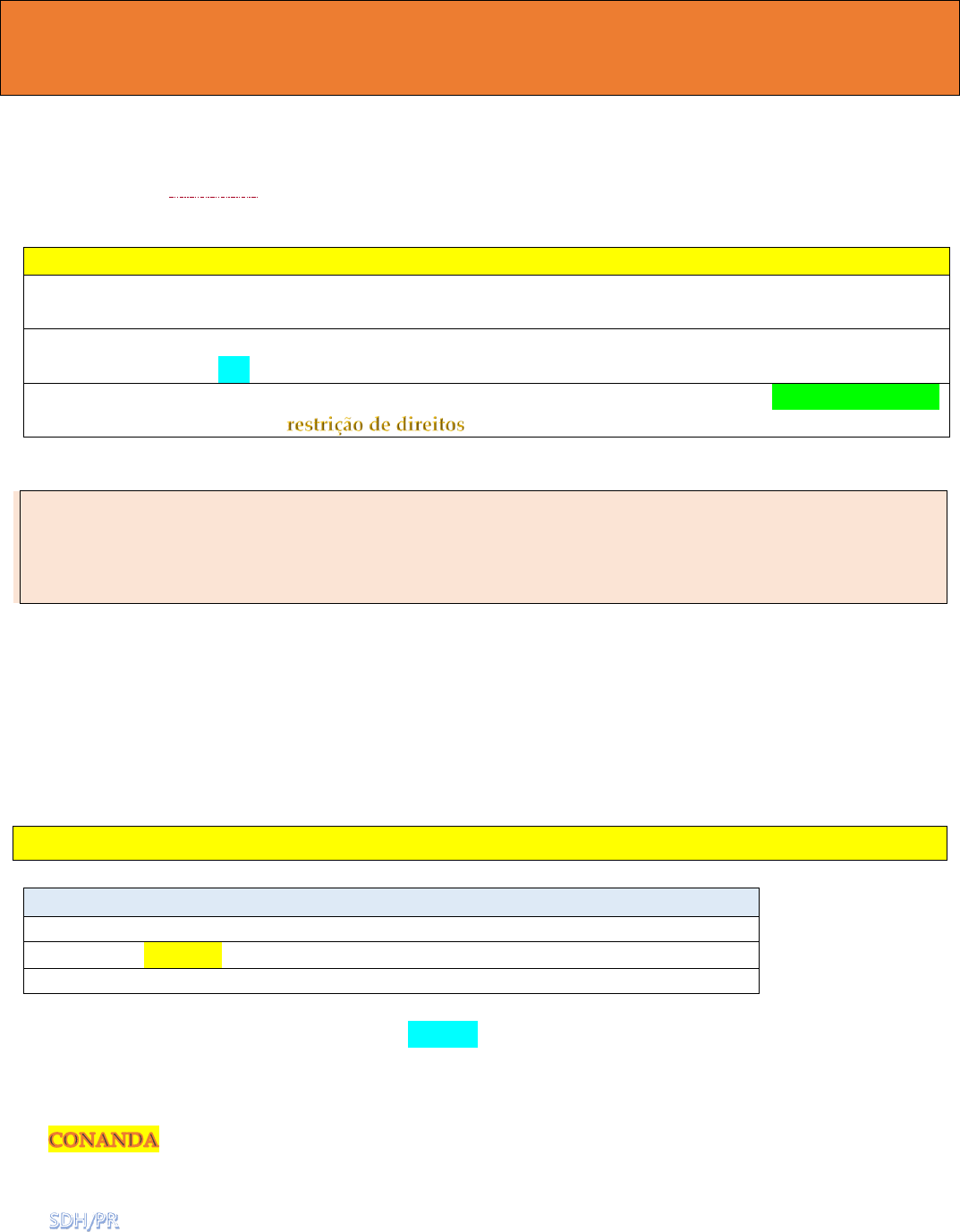 |Leis Esquematizadas por Bruno Câmara| Promotor de Justiça do Estado do Pará LEI DO SINASE Lei 12.594/2012 ►O que é o SINASE? [Conjunto ordenado de princípios, regras e critérios que envolvem a execução de medidas socioeducativas, incluindo-se nele, por adesão, os sistemas E, DF e M, bem como todos os planos, políticas e programas específicos de atendimento a adolescente em conflito com a lei.] ► Objetivos das Medidas Socioeducativas: ▪ Responsabilização do adolescente quanto às consequências lesivas do ato infracional, sempre que possível incentivando a sua reparação; ▪ Integração social do adolescente e a garantia de seus direitos individuais e sociais, por meio do cumprimento de seu PIA; e ▪ Desaprovação da conduta infracional, efetivando as disposições da sentença como parâmetro máximo de privação de liberdade ou , observados os limites previstos em lei. Comentário1: Caráter híbrido das MS - sanção socioeducativa E finalidade pedagógica. Comentário2: As medidas de proteção, assim como as medidas socioeducativas, podem ser aplicadas isolada ou cumulativamente, bem como substituídas a qualquer tempo. ► Conceitos: ✘ Programa de atendimento: organização e funcionamento, por unidade, das condições necessárias para o cumprim. das MS. ✘ Unidade: base física necessária para a organização e o funcionamento de PA. ✘ Entidade de atendimento: PJ de direito público ou privado que instala e mantém a unidade e os recursos humanos e materiais necessários ao desenvolvimento de programas de atendimento. ► Coordenação do Sinase: União, integrado pelos sistemas estaduais, distrital e municipais. COMPETÊNCIAS ► União: ✔ prestar assistência técnica e suplementação financeira aos E, DF e M; ✔ estabelecer diretrizes relacionadas à internação e semiliberdade; ✔ financiar, com os demais entes federados, a execução de programas e serviços do Sinase. Vedado à União ⇓ Desenvolvimento/oferta de programas próprios de atendimento. ➩ ➾ Funções normativa, deliberativa, de avaliação e de fiscalização do Sinase. [NORMATIZA, DELIBERA, AVALIA e FISCALIZA o SINASE). ➩ ➾ funções executiva e de gestão do Sinase. |Leis Esquematizadas por Bruno Câmara| Promotor de Justiça do Estado do Pará ► Estados: ✔ criar/desenvolver/manter programas para a execução de semiliberdade e internação; ✔ editar normas complementares p/ organiz./funcion. do seu sistema de atendimento e dos sistemas municipais; ✔ estabelecer com os Municípios formas de colaboração para o atendimento socioeducativo em meio aberto; ✔ prestar assessoria técnica/suplementação financeira aos Municípios p/ a oferta de programas de meio aberto; ✔ garantir pleno funcionamento do plantão interinstitucional; ✔ garantir do adolescente a quem se atribua prática de ato infracional; ✔ cadastrar-se no Sistema Nacional de Informações sobre o Atendimento Socioeducativo e fornecer regularmente os dados necessários ao povoamento e à atualização do Sistema; e ✔ cofinanciar, c/ demais entes, a execução de programas/ações destinados ao atendimento inicial de adolescente apreendido p/ apuração de ato infracional, bem como aqueles destinados a adolescente a quem foi aplicada medida socioeducativa privativa de liberdade. ➩ CEDCA: funções deliberativas e de controle do Sistema Estadual de Atendimento Socioeducativo. ► Municípios: ✔ criar/manter programas de atendimento para a execução das MS em meio aberto [liberdade assistida, prestação de serviços à comunidade, reparação do dano e advertência] ✔ editar normas complementares para a organiz./ funcion. dos programas; ✔ cadastrar-se no Sistema Nacional de Informações sobre o Atendimento Socioeducativo e fornecer regularmente os dados necessários ao povoamento e à atualização do Sistema; e ✔ cofinanciar, c/ demais entes, a execução de programas/ações destinados ao atendimento inicial de adolescente apreendido para apuração de ato infracional, bem como aqueles destinados a adolescente a quem foi aplicada medida socioeducativa em meio aberto. ➩ Para garantir a oferta de programa de meio aberto, Municípios podem instituir os consórcios públicos ou qualquer outro instrumento jurídico adequado, como forma de compartilhar responsabilidades. ➩ CMDCA: funções deliberativas e de controle do Sistema Municipal de Atendimento Socioeducativo. ► DF: cumulativamente, competências dos Estados e dos Municípios. ⌗ Ponto de destaque: ⌚ De quem é a competência para criar e manter os programas para a execução das MS? Estados: semiliberdade e internação Municípios: prestação de serviços à comunidade e liberdade assistida (meio aberto) ► Planos de Atendimento Socioeducativo deverão, obrigatoriamente, prever ações articuladas nas áreas de educação, saúde, assistência social, cultura, capacitação para o trabalho e esporte, para os adolescentes atendidos. PROGRAMAS DE ATENDIMENTO Disposições Gerais ► Estados e DF inscreverão seus programas de atendimento: CEDCA. ► Municípios inscreverão seus programas e alterações, bem como as entidades de atendimento executoras: CMDCA. |Leis Esquematizadas por Bruno Câmara| Promotor de Justiça do Estado do Pará ► Além da especificação do regime, são requisitos obrigatórios para a inscrição de PA: ▪ exposição das linhas gerais dos métodos e técnicas pedagógicas, com a especificação das atividades de natureza coletiva; ▪ indicação da estrutura material, dos recursos humanos e das estratégias de segurança compatíveis com as necessidades da respectiva unidade; ▪ regimento interno que regule o funcionamento da entidade, no qual deverá constar, no mínimo: a) o detalhamento das atribuições e responsabilidades do dirigente, de seus prepostos, dos membros da equipe técnica e dos demais educadores; b) a previsão das condições do exercício da disciplina e conce
