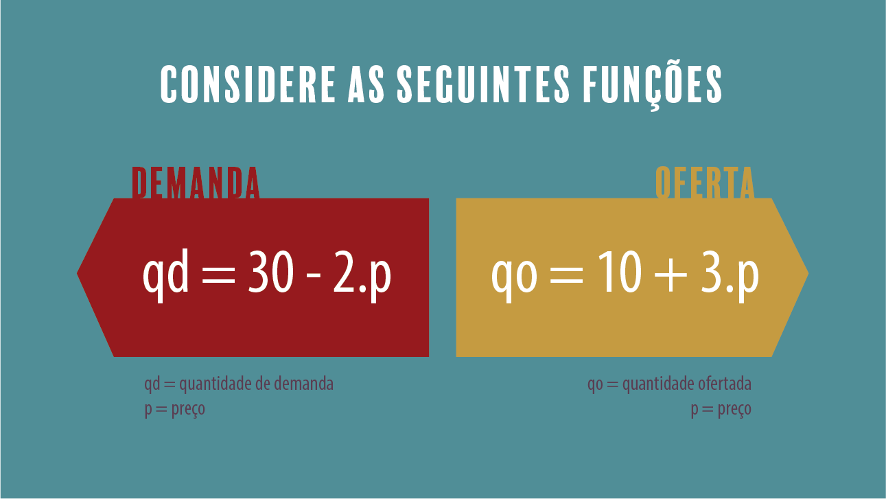 <p>CONSIDERE AS SEGUINTES FUNÇÕES DEMANDA qd = 30 - 2.p 10 + 3.p qd = quantidade de demanda qo = quantidade ofertada p = preço p = preço</p>