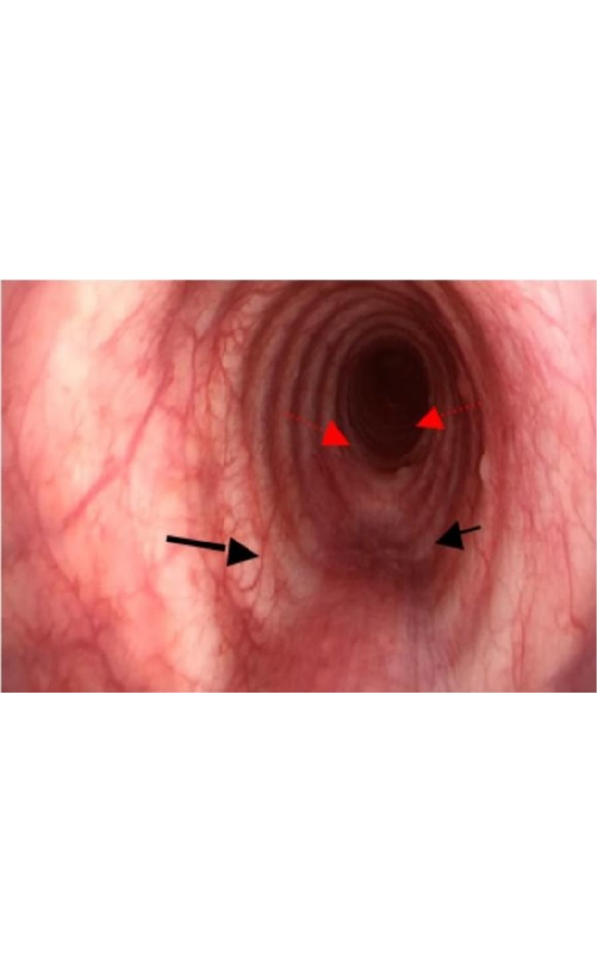 <p>A estenose traqueal congênita é uma malformação rara e potencialmente letal, que inclui uma variedade de entidades patogenicamente distintas, mas associadas com a redução do calibre da via aérea.</p><p>DEFINIÇAO:</p><p>É definida como um estreitamento intrínseco do lúmen traqueal, devido à presença de anéis cartilagíneos traqueais completos.</p><p>Anéis cartilagíneos traqueias completas é uma alteração congênita onde os anéis ao invés de serem parte cartilaginosos e parte musculares são formados exclusivamente por cartilagem e tem o diâmetro menor do que deveria.</p><p>Anéis traqueais completos. Os primeiros quatro anéis são normais (setas pretas), mas também se observam anéis traqueais completos (setas vermelhas).</p><p>SINTOMAS:</p><p>O diagnóstico é difícil porque os sinais e sintomas iniciais, principalmente aqueles respiratórios, podem se apresentar com um grande espectro de gravidade-desde um leve estridor, cianose, retração torácica até um quadro grave de insuficiência respiratória. Na maioria das vezes, os sintomas ocorrem nos primeiros meses de vida, após uma infecção bacteriana ou uma intubação, quando a redução do fluxo aéreo gera uma descompensação do frágil aparelho respiratório desses pacientes.</p><p>DIAGNOSTICO:</p><p>O diagnóstico é frequentemente atrasado pela raridade e diversidade de manifestações da doença. Além disso, outras malformações, muitas vezes, desviam a atenção da equipe assistente. A experiência e a suspeita clínica são essenciais para o estabelecimento de um diagnóstico acurado e precoce. Infelizmente, o diagnóstico pré-natal ainda não é possível, pois a acurácia dos exames intrauterinos ainda é insuficiente. A Tomografia computorizada desempenha um papel importante no diagnóstico desta entidade, bem como na determinação da extensão da estenose e do calibre luminal, elementos fundamentais para a decisão terapêutica e aumento da sobrevida. Os achados típicos na imagem são um estreitamento circunferencial da traqueia e fusão dos anéis traqueais cartilaginosos posteriormente, dando uma aparência em traqueia em forma de O em corte axial.</p><p>TRATAMENTO:</p><p>Não há procedimento padrão para o tratamento da estenose traqueal congênita, e não há estudos controlados comparando os diferentes métodos descritos (o que seria muito difícil devido à raridade da doença e à gravidade das suas diferentes manifestações e afecções associadas). A conduta conservadora é uma opção preconizada para os casos em que a estenose não é longa, e o segmento estenótico tem diâmetro superior a 60% do diâmetro traqueal normal. A morbidade e a mortalidade associadas ao tratamento cirúrgico da estenose traqueal congênita são altas, e apesar da crescente experiência mundial, as últimas publicações mostram uma taxa de mortalidade de 18% em pacientes submetidos à traqueoplastia com enxerto de pericárdio e de 24% nos submetidos à traqueoplastia em bisel. Outra forma de tratamento é a colocação de uma órtese para dilatar o diâmetro da traqueia</p><p>image1.jpeg</p><p>image2.png</p><p>image3.gif</p><p>image4.jpeg</p>
